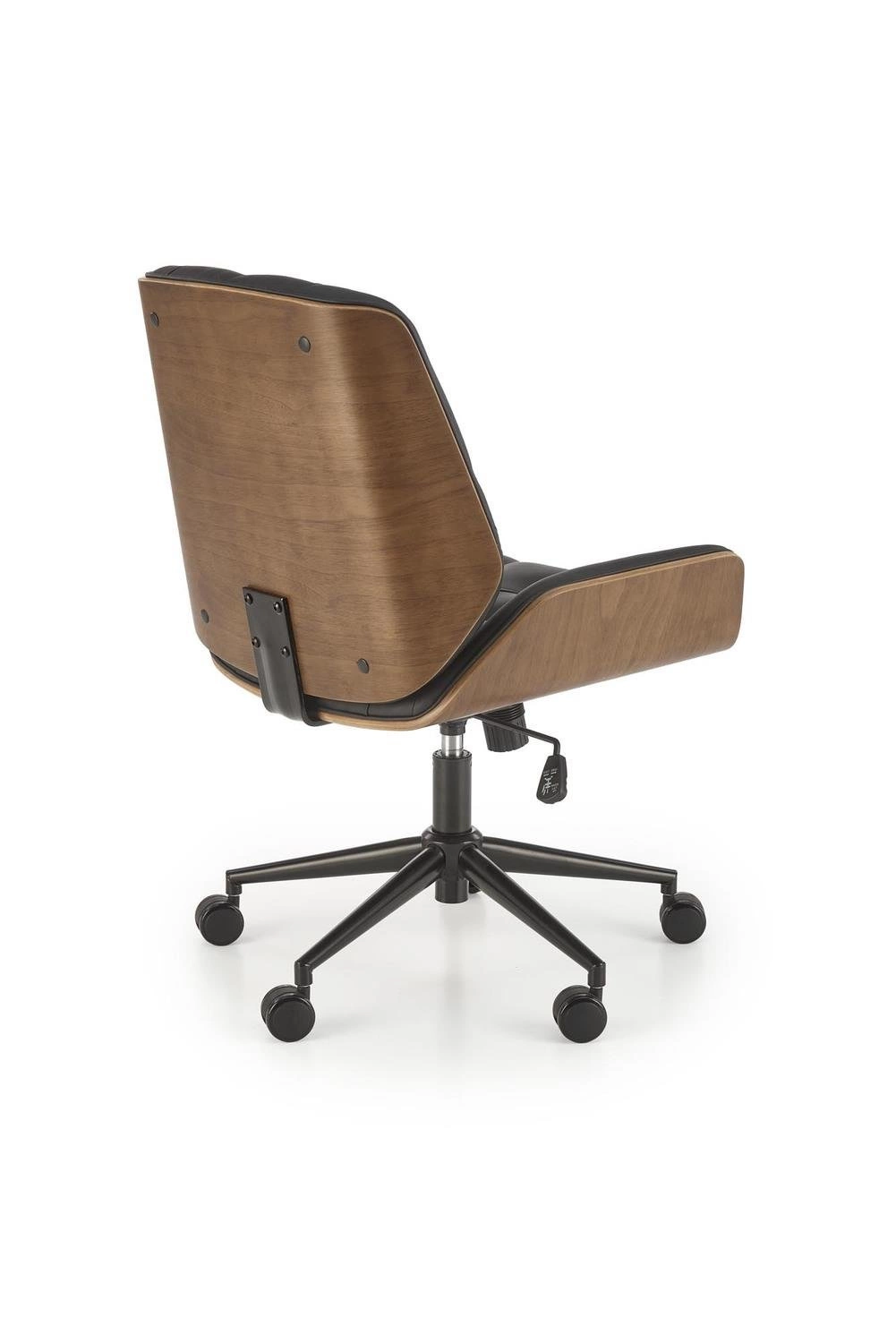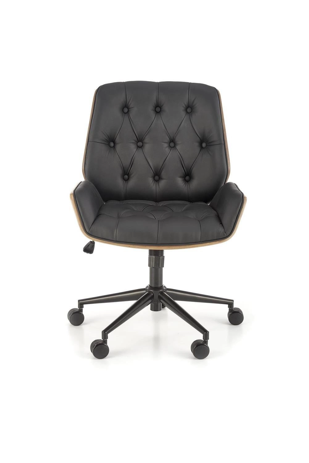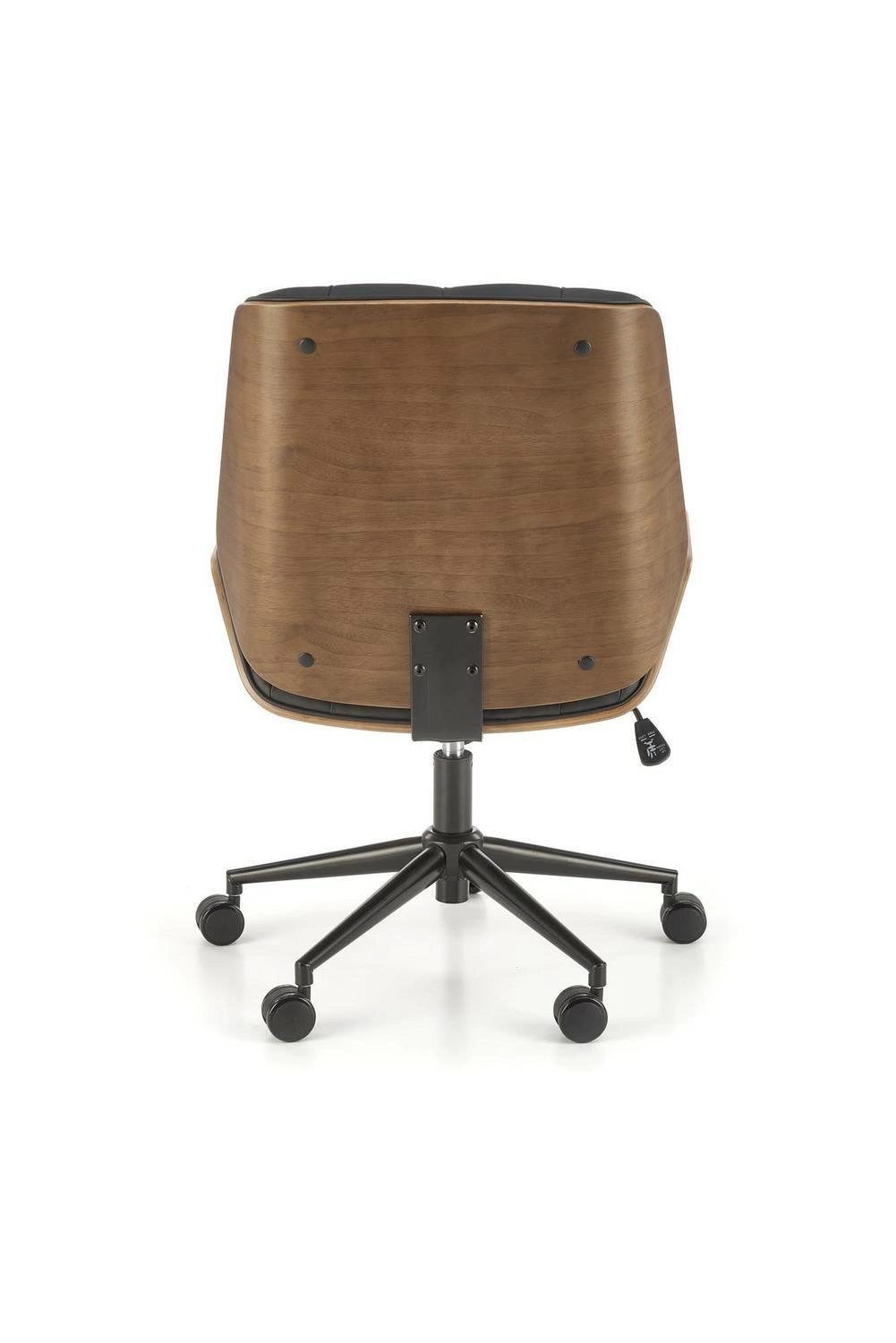 Ergonomická kancelářská židle Vinger Intesi je spojením nadčasové elegance a funkčnosti, které perfektně zapadnou do moderní kanceláře nebo stylové pracovny. Tvarované sedadlo z ohýbaného ořechového dřeva potažené černou ekologickou kůží zajišťuje pohodlí i při dlouhých hodinách práce. Stabilní kovová základna na kolečkách a plynulé nastavení výšky poskytují volnost pohybu a individuální přizpůsobení ke stolu.