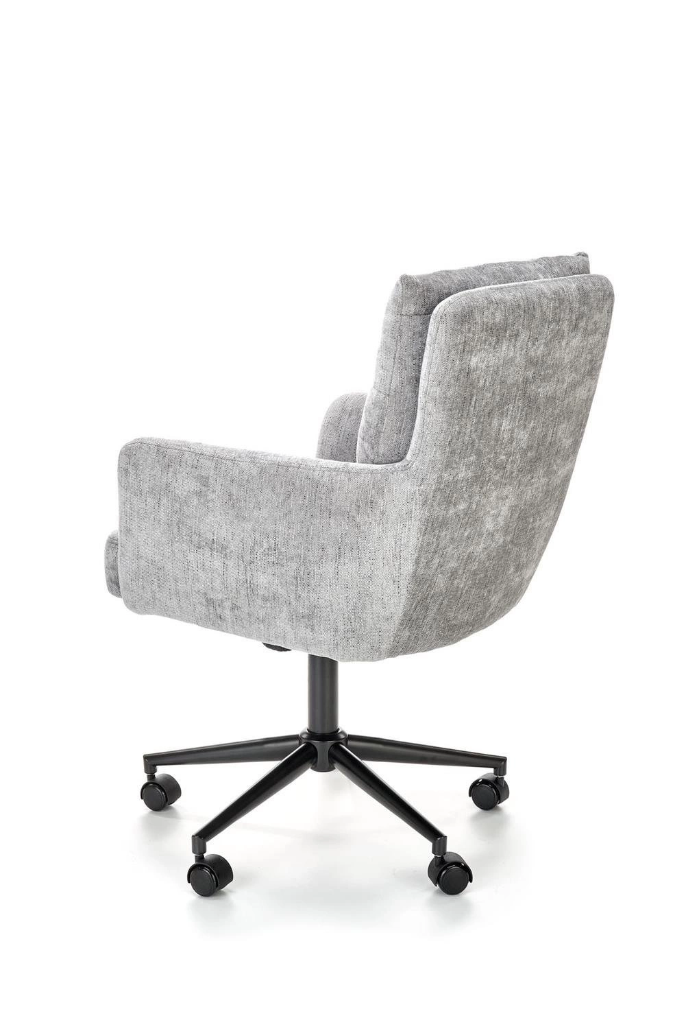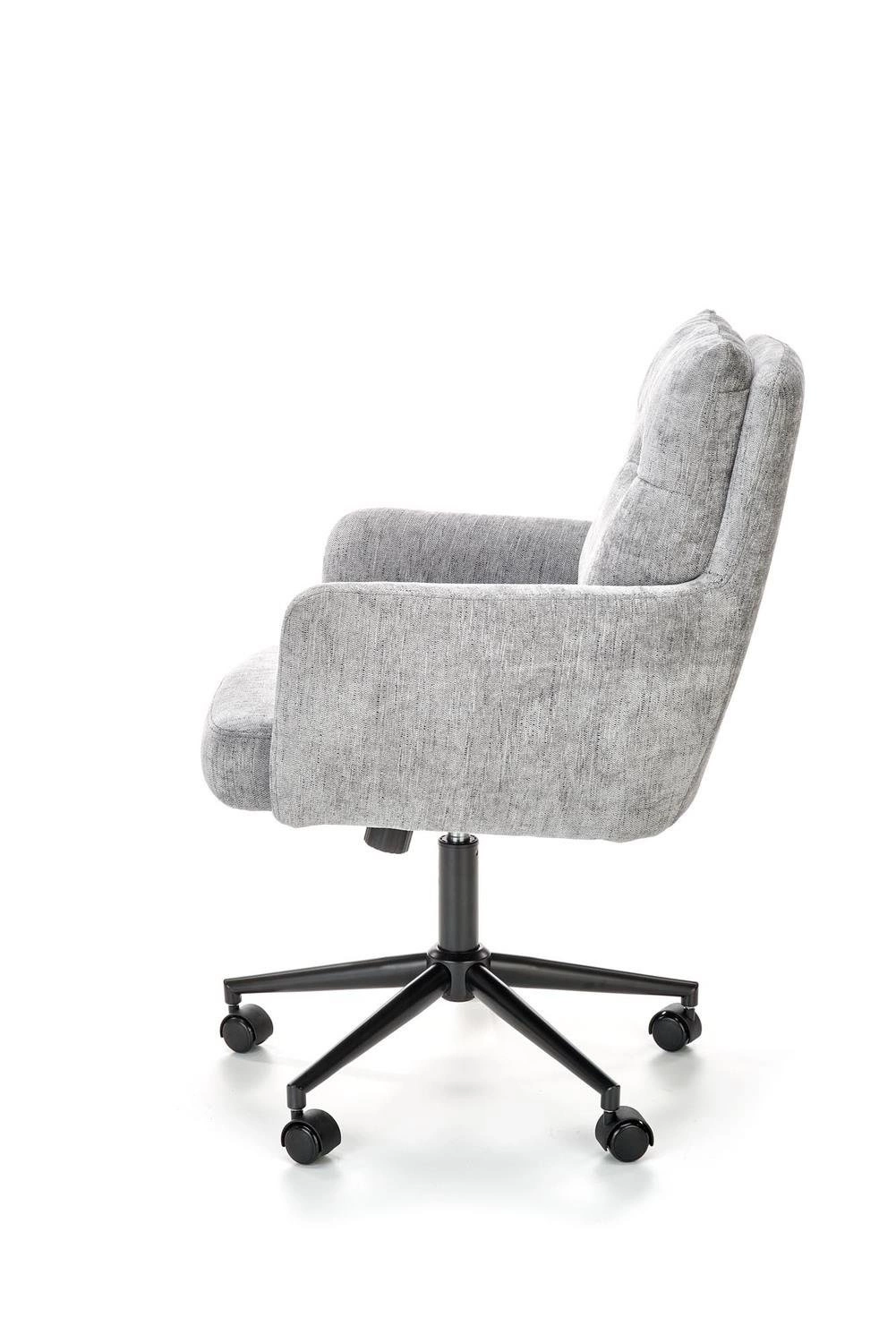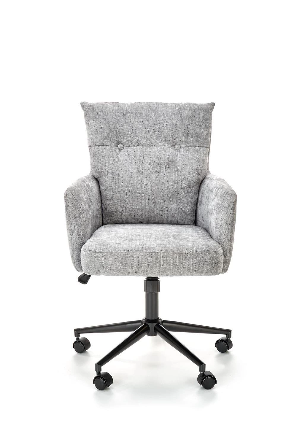 Otočná kancelářská židle Resof od značky Intesi je moderní kus nábytku navržený s důrazem na pohodlí a funkčnost při práci u stolu. Šedé čalounění z příjemné látky na dotek, pevná kovová základna v černé barvě a možnost nastavení výšky zajišťují, že židle perfektně splňuje nároky moderní kanceláře i domácí pracovny. Šířka 59 cm a hloubka 70 cm zaručují komfort i při dlouhodobém sezení.