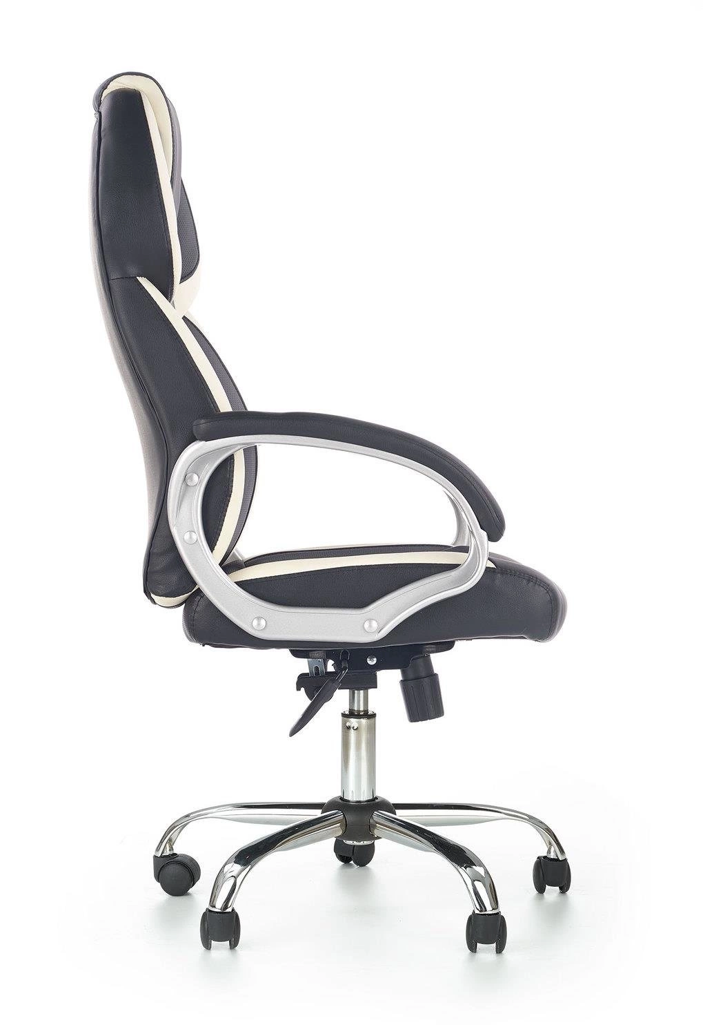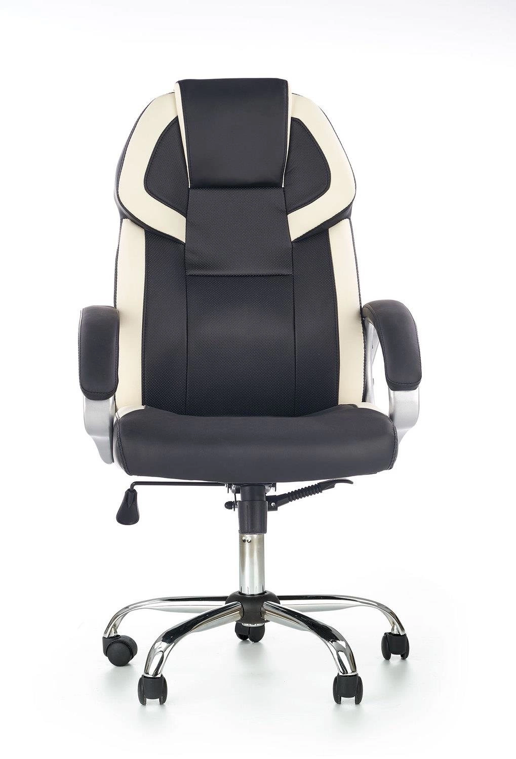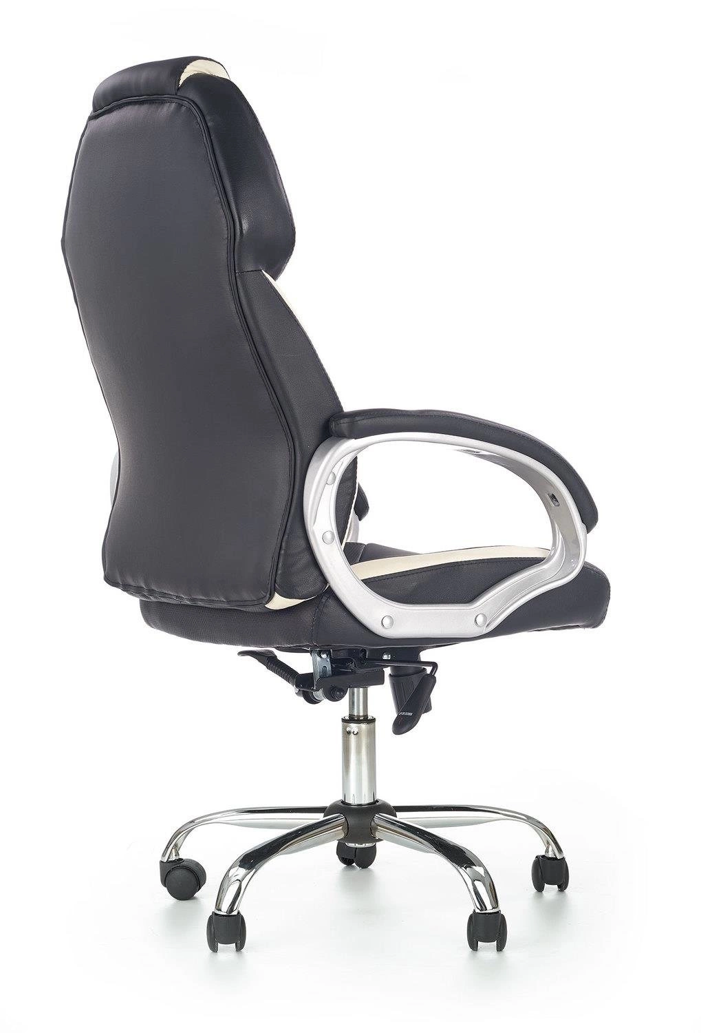 Ergonomická kancelářská židle Tobart od značky Intesi je moderní otočná židle, navržená pro maximální pohodlí při práci v kanceláři, pracovně nebo u domácího stolu. Potah z elegantní ekokůže v klasické kombinaci černé a bílé, stabilní chromovaná základna – to vše dělá z tohoto modelu nejen stylový, ale i vysoce funkční kancelářský nábytek: židle disponuje nastavitelnou výškou sedáku, možností naklápění opěradla a pohodlnými područkami. Rozměry židle (výška 123 cm, šířka 64 cm, hloubka 68 cm) zajišťují komfort i při dlouhodobém sezení.