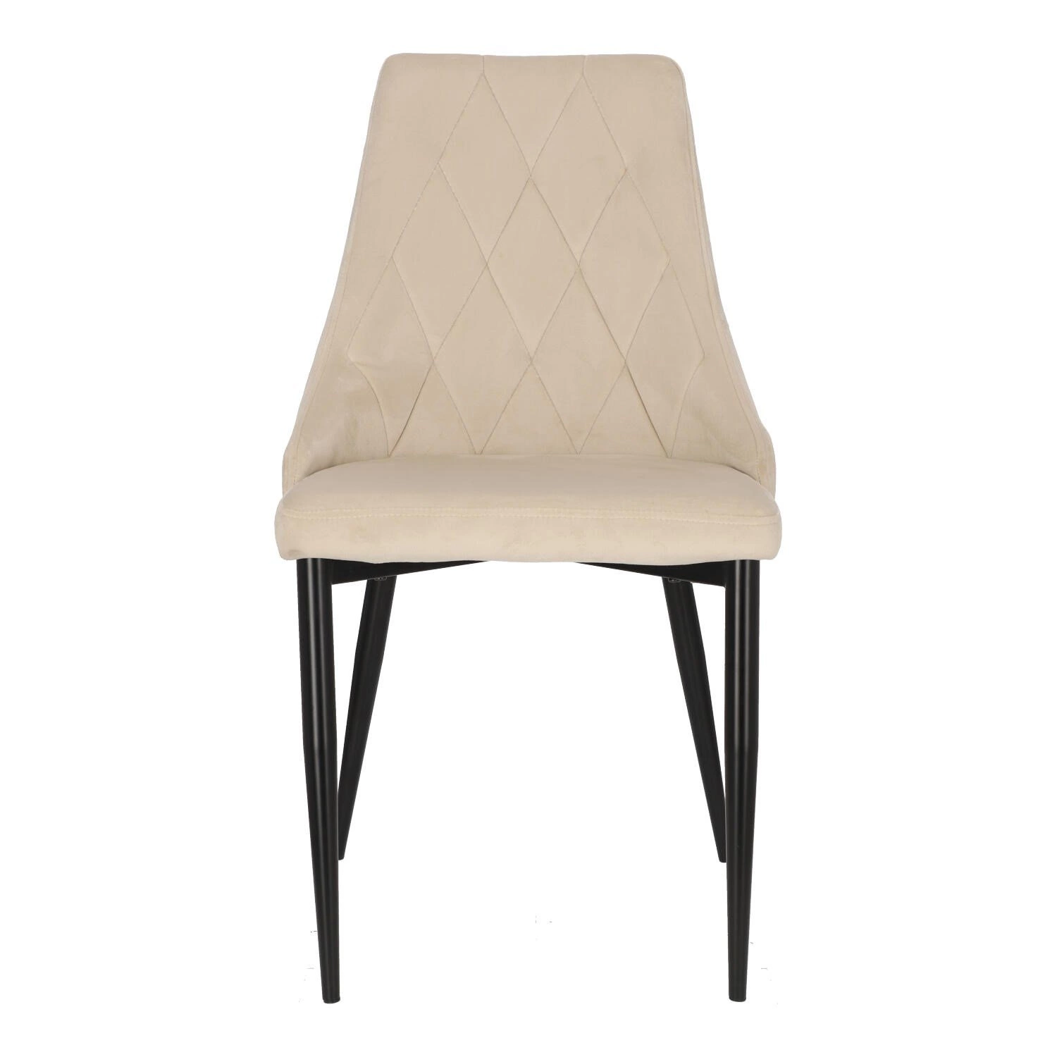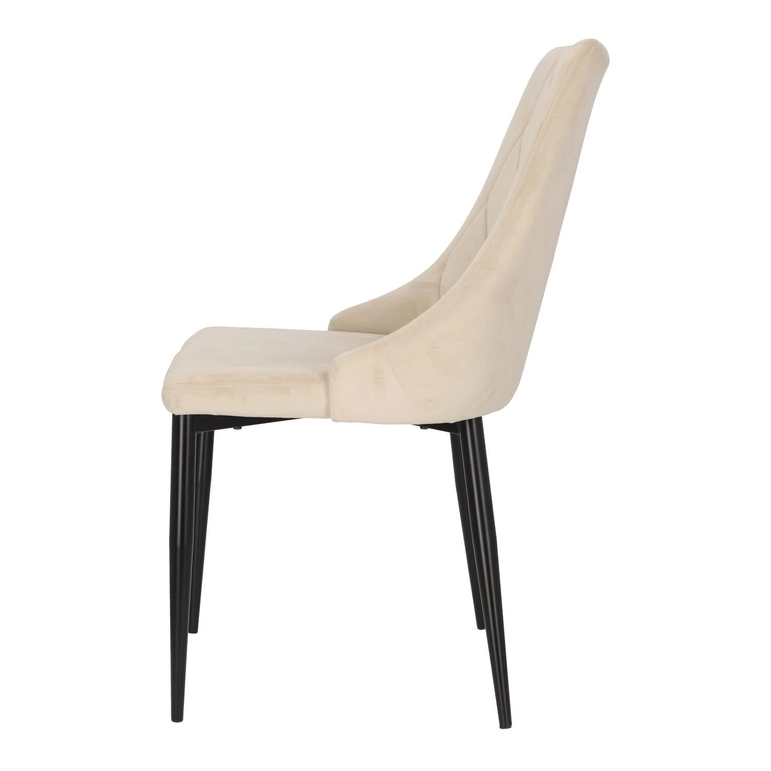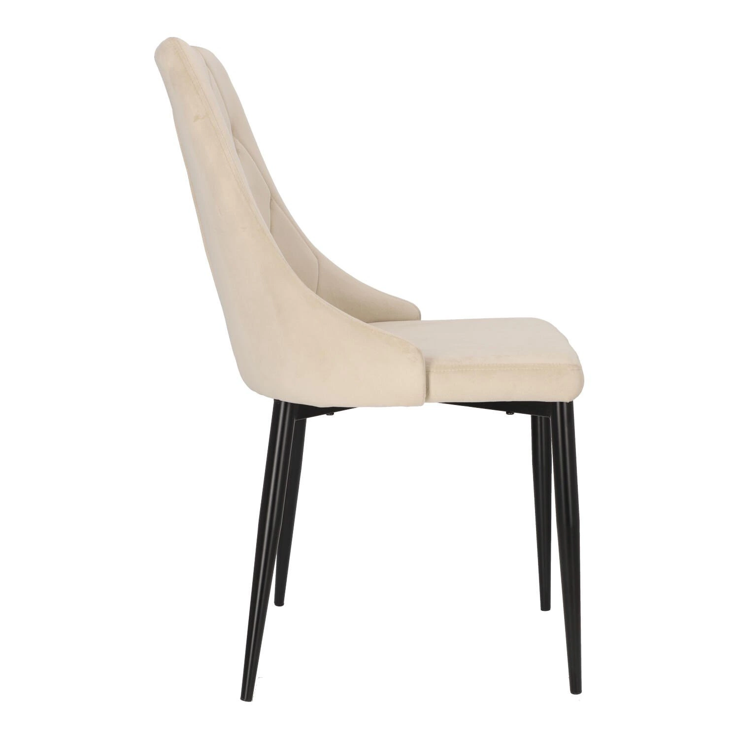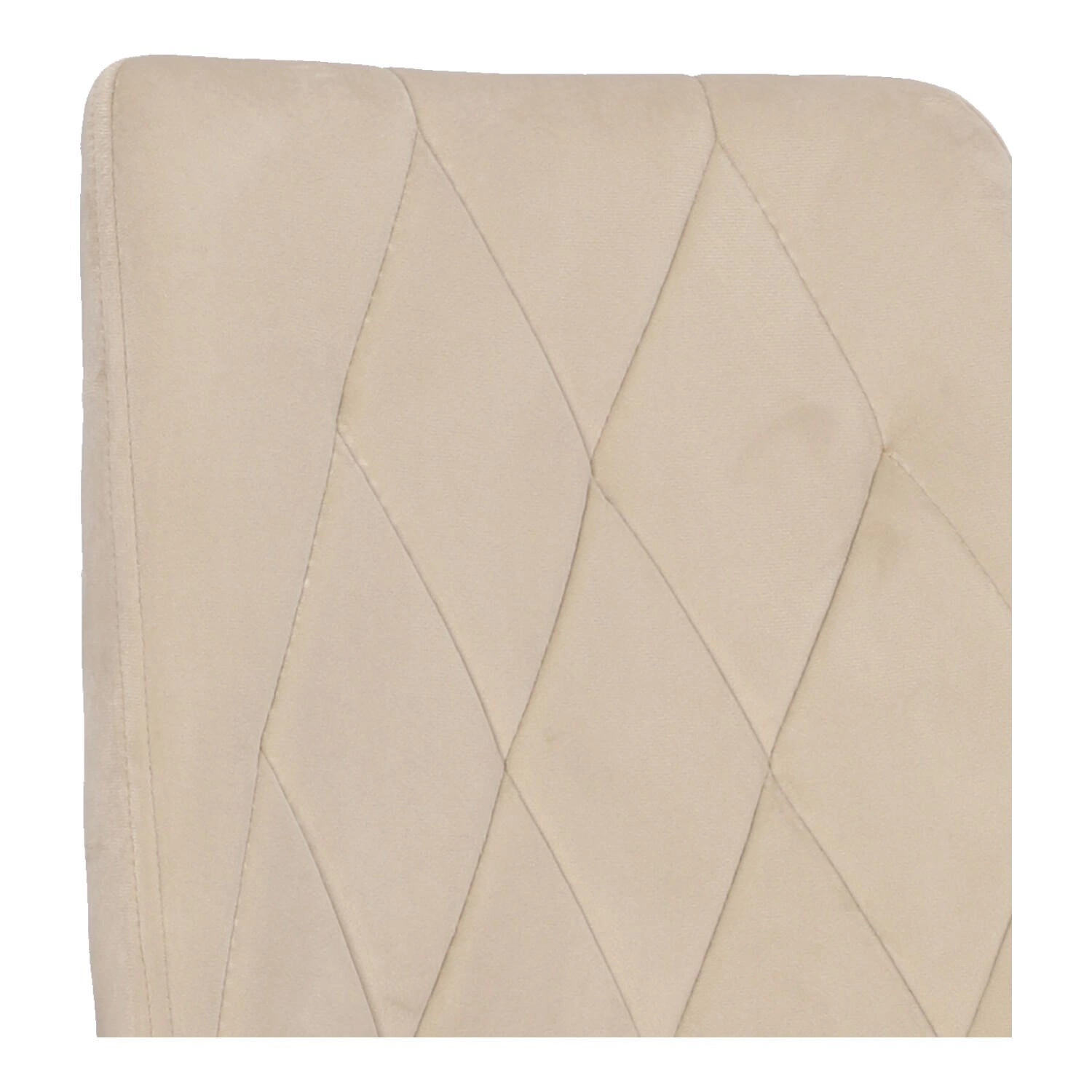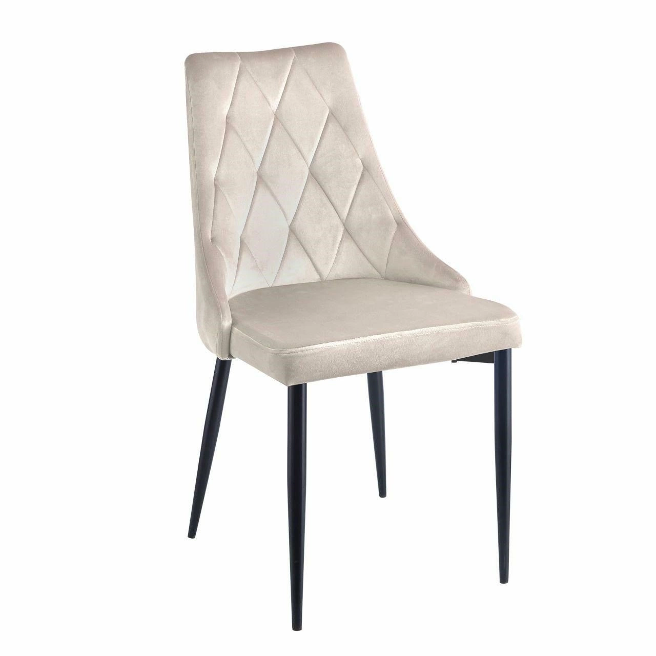 Měkké, na dotek příjemné čalounění velvet v teplém béžovém tónu obepíná sedák i opěradlo a poskytuje komfort na nejvyšší úrovni. Jemně tvarované opěradlo podporuje správné držení těla a umožňuje pohodlně se opřít i při delším posezení u stolu. Sametová látka nejen zaujme svým vzhledem, ale také činí židli Loretta stylovým a komfortním prvkem každé moderní jídelny či obývacího pokoje.