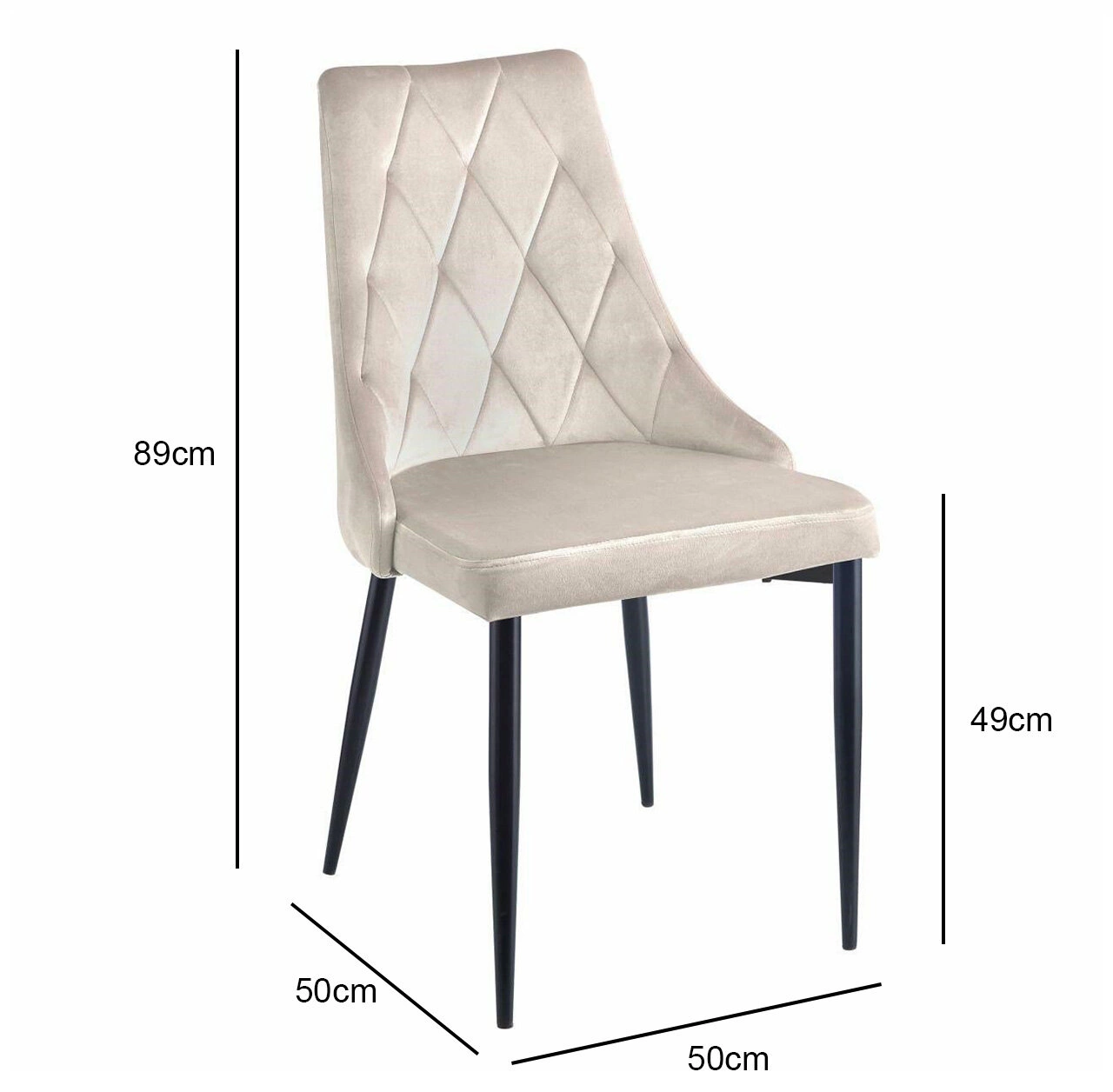 Čalouněná židle Loretta velvet béžová od značky Intesi je moderní kus nábytku, který spojuje eleganci sametové látky s praktičností černých kovových nohou. Díky kompaktním rozměrům (výška 89 cm, šířka i hloubka 50 cm) a jemnému, béžovému odstínu se skvěle hodí jako jídelní židle nebo židle do obývacího pokoje. Loretta zaručuje pohodlí při každodenním stolování i setkáních, a její maximální nosnost do 120 kg zajišťuje dlouhou životnost.