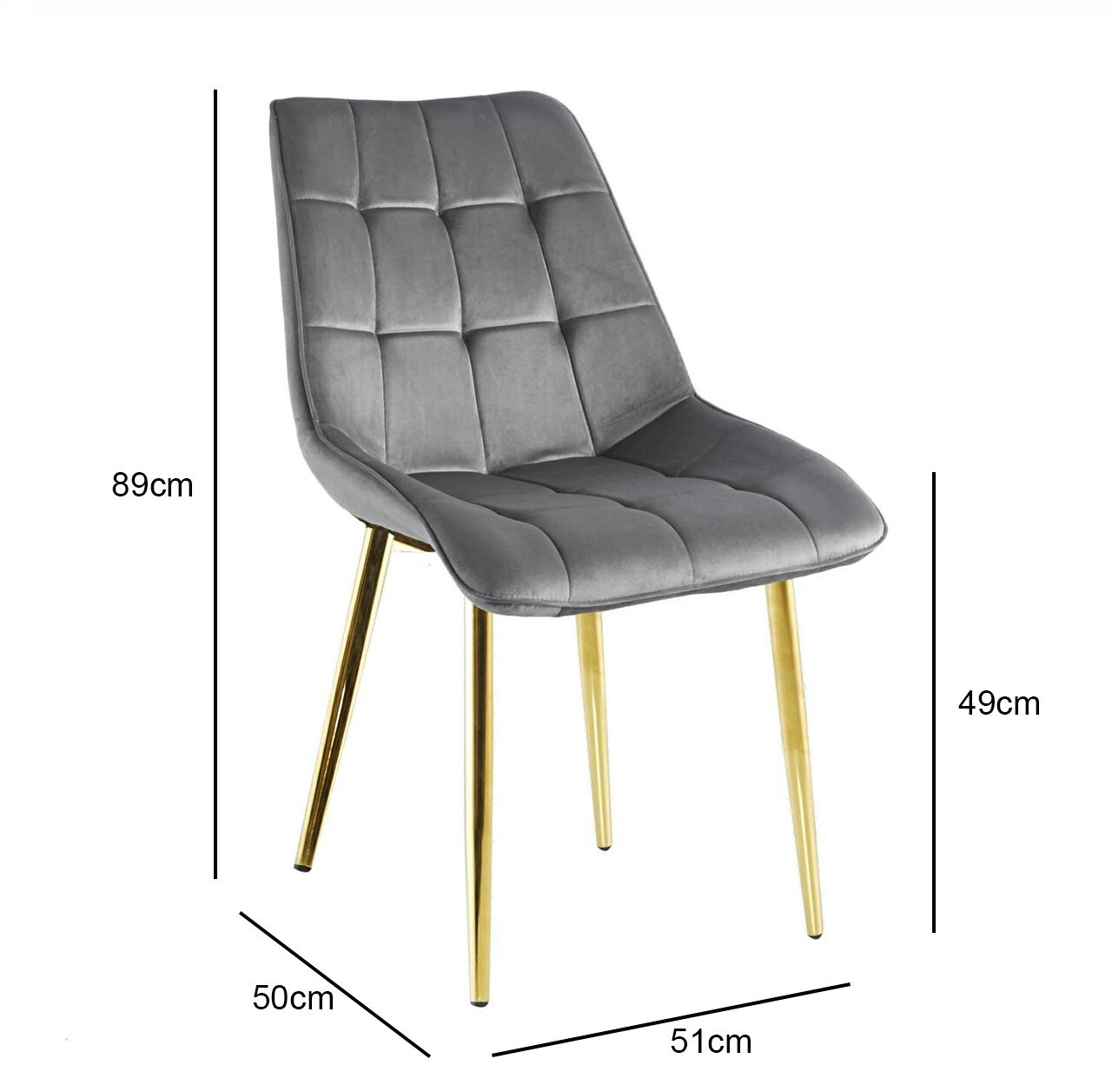 Poly je skvělou volbou pro ty, kteří oceňují stylové interiéry a maximální komfort. Světle šedý samet krásně odráží světlo a zlaté nohy dodávají místnosti nádech luxusu. Židle nejen skvěle vypadá – její tvarované opěradlo a měkký sedák zajišťují pohodlí i při dlouhých chvílích u stolu. Díky univerzálním rozměrům (šířka 51 cm, hloubka 50 cm, celková výška 89 cm, výška sedáku 49 cm) Poly perfektně zapadne i do menších jídelen nebo kuchyní.