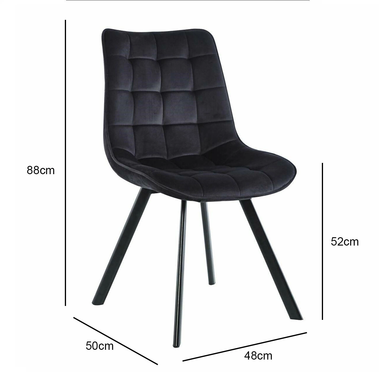 Jídelní židle Moly od značky Intesi představuje spojení moderního designu a vysokého komfortu. Je čalouněná měkkým, černým velurem a stojí na štíhlých kovových nohách, které podtrhují její elegantní a současný vzhled. Díky promyšleným rozměrům (šířka 48 cm, hloubka 50 cm, výška 88 cm, výška sedáku 52 cm) se tento model perfektně hodí do jídelen, kuchyní, obývacích pokojů i moderních komerčních prostor, jako jsou restaurace či kavárny.