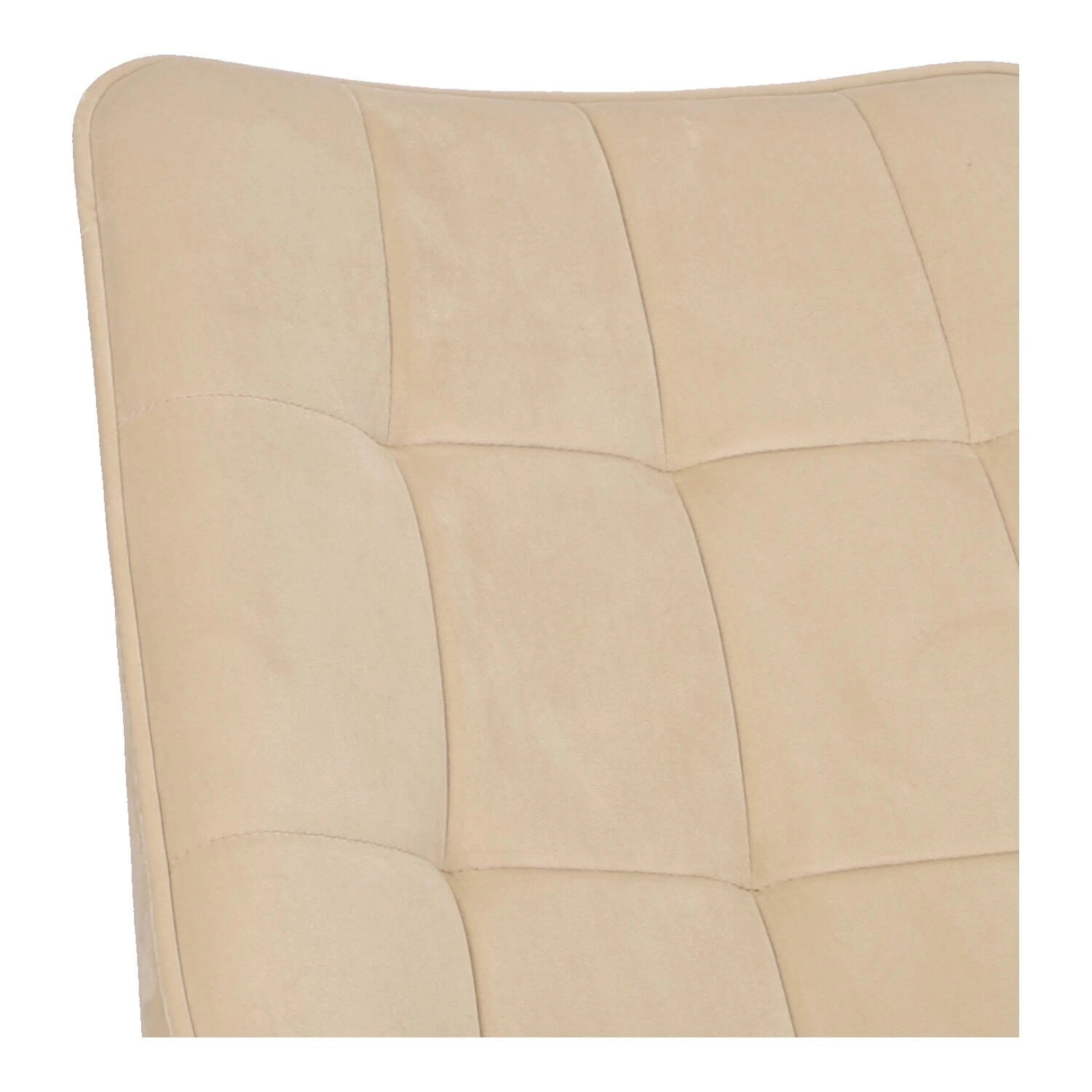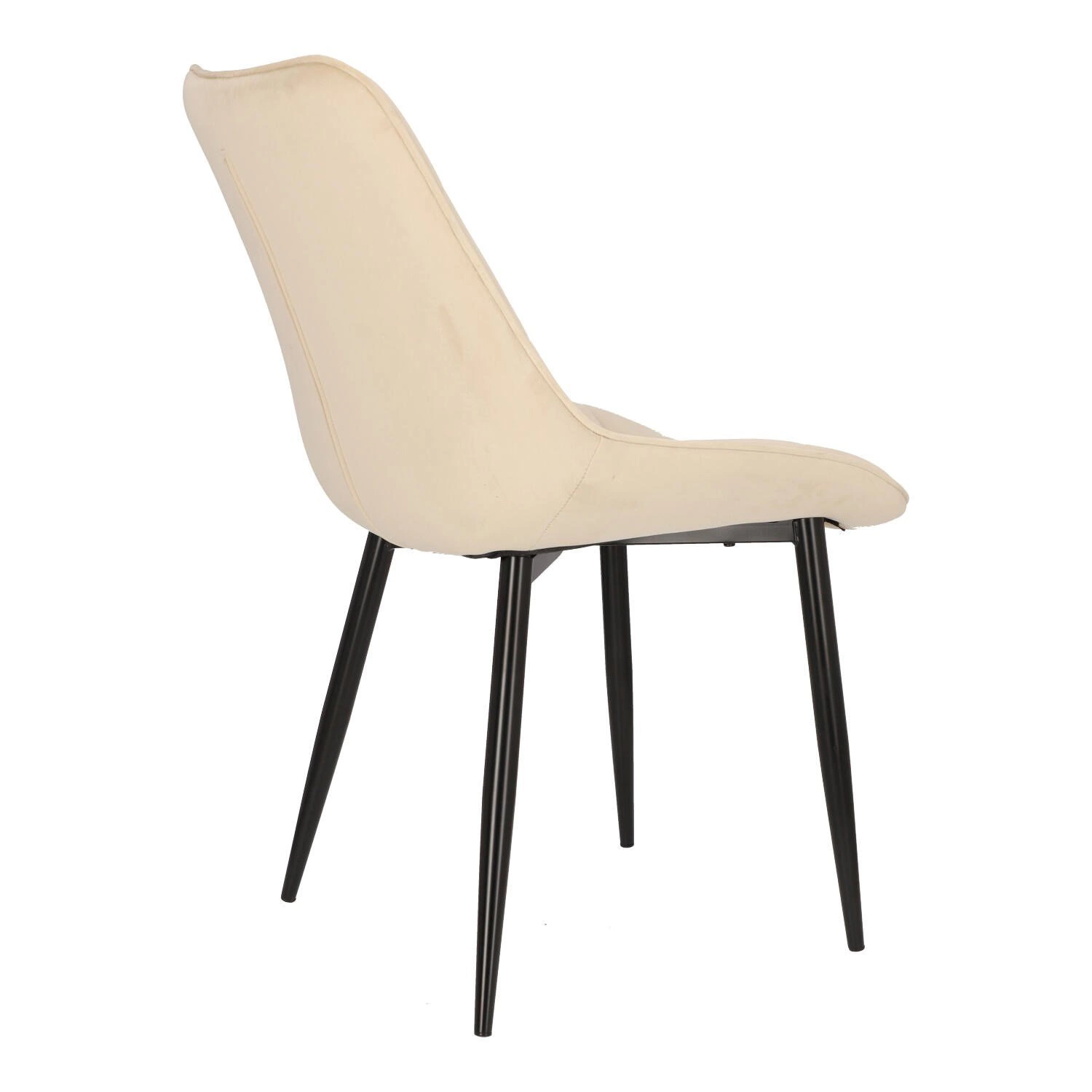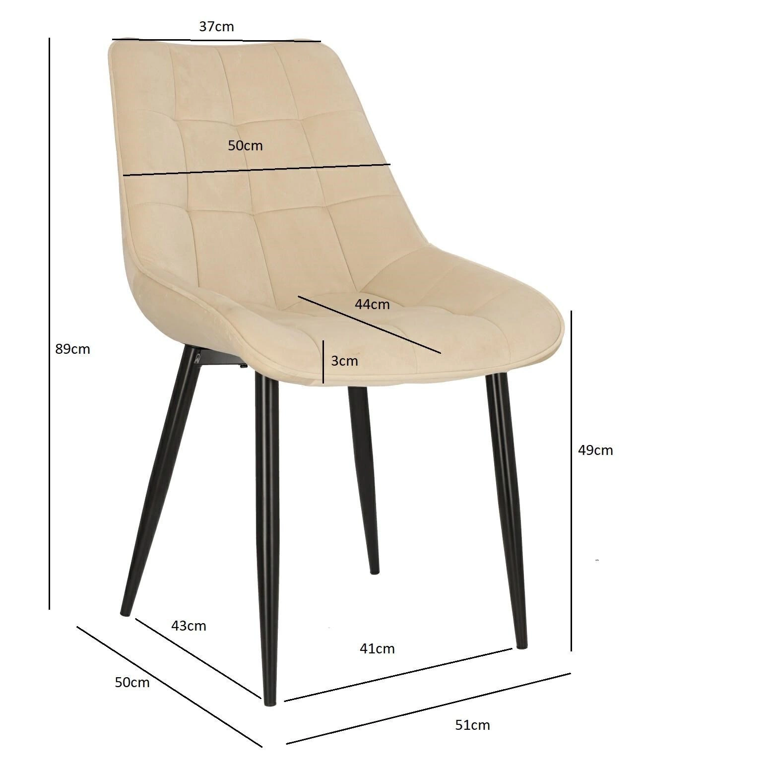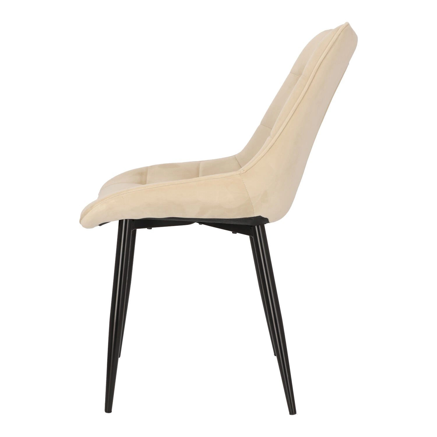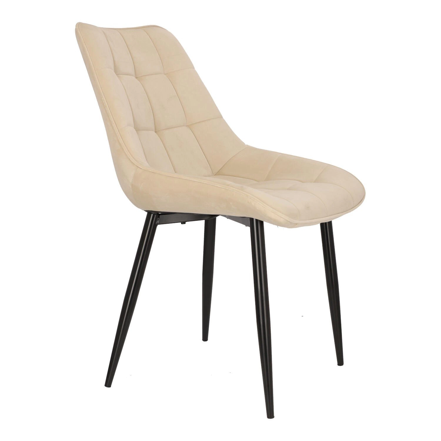 Exkluzivní čalounění z velurové látky v světle béžovém odstínu přináší do interiéru nádech luxusu a útulné atmosféry. Materiál je mimořádně příjemný na dotek, takže každé posezení u stolu se promění v chvíli plnou pohodlí. Minimalistický vzhled židle zvýrazňují decentní prošívání na opěrce, která jí dodávají charakter a atraktivní vzhled v moderních aranžmá. Béžová barva skvěle ladí s různými typy stolů – od klasických dřevěných až po moderní kamenné nebo skleněné desky.