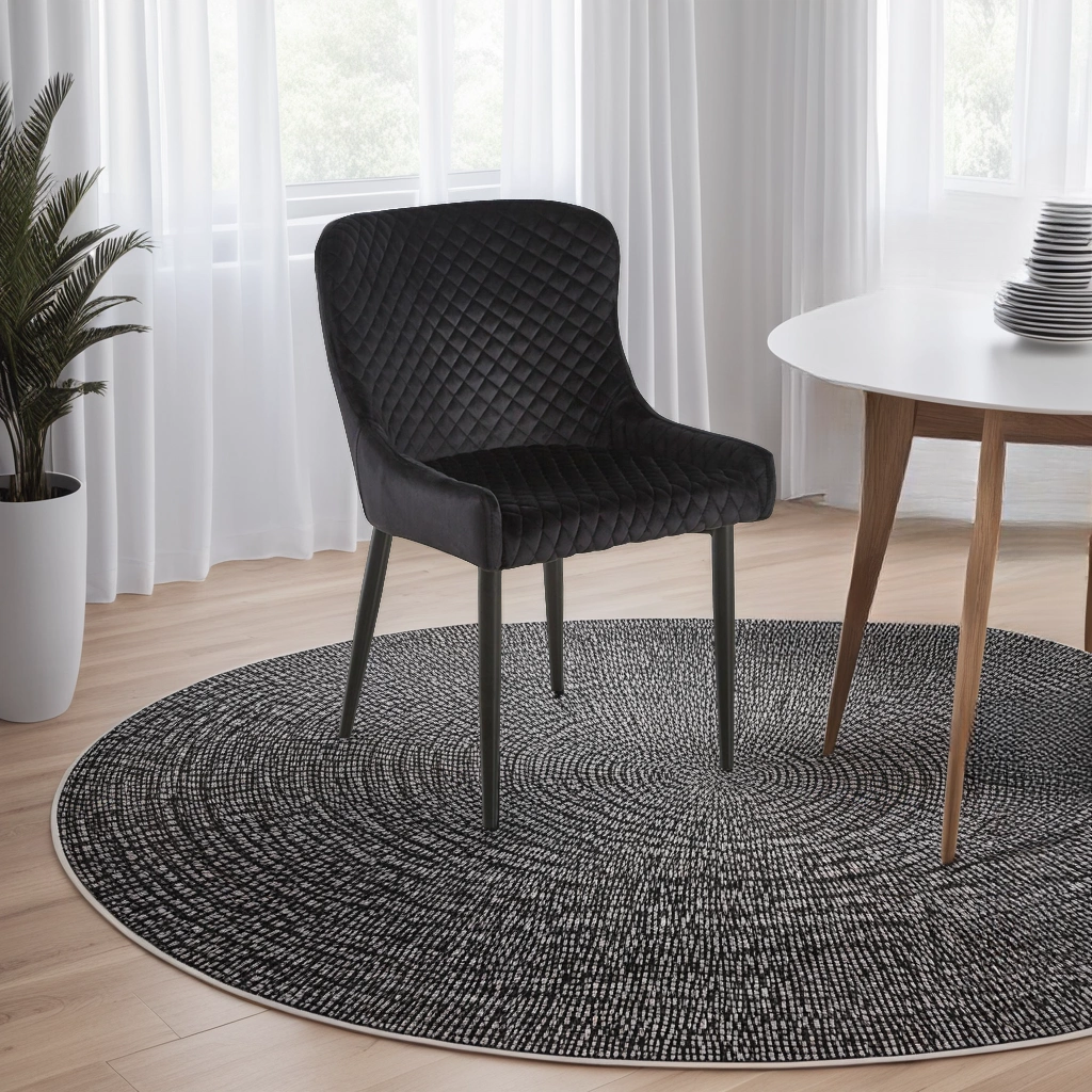 Židle Luna je esencí elegance v moderním stylu. Černé sametové čalounění s hebkou, příjemnou strukturou dodává interiéru luxusní vzhled — nejen že působí reprezentativně, ale zároveň poskytuje mimořádné pohodlí při každodenním stolování nebo posezení s přáteli. Tlumená barva a štíhlé matné kovové nohy tvoří harmonický celek, který se perfektně hodí jak do glamour, tak i minimalistických interiérů. Ideální volba, pokud hledáte moderní jídelní židle nebo židle do kuchyně, které podtrhnou osobitý styl vašeho domova.