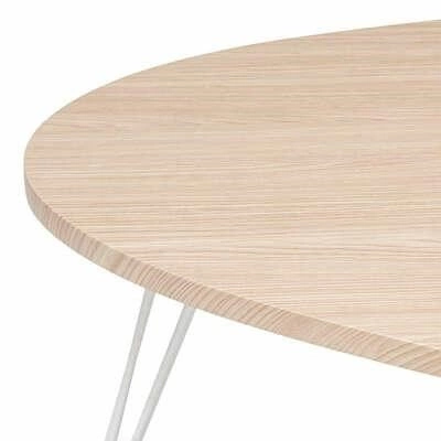 Oválný konferenční stolek Neile skvěle zapadá do trendů moderního a skandinávského designu. Jeho oválný tvar dodává stolku jedinečný charakter a zároveň zvyšuje bezpečnost používání – absence ostrých hran znamená, že je vhodný i do domácností s dětmi. Kombinace přírodního dřevěného povrchu s bílými kovovými nohami dělá z tohoto modelu stolek v loftovém i industriálním stylu – perfektně se hodí do světlých, minimalistických interiérů a také do místností inspirovaných eko stylem.Funkčnost a pohodlí při každodenním používání
