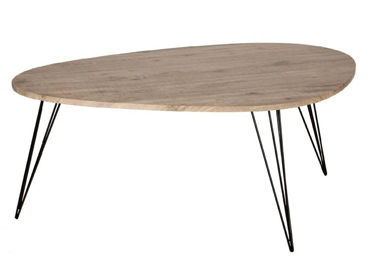 Stolek na kávu Neile oválný dřevěný moderní do obývacího pokoje na třech nohách Atmosphera je designový kus nábytku, který propojuje přírodní akcenty s moderní funkčností. Vyniká oválnou deskou potaženou dýhou v odstínu přírodního dřeva a stabilní kovovou základnou v černé barvě. Díky rozměrům 97×65×50 cm je ideální jako konferenční stolek do obýváku, elegantní lavice do čekárny či praktický odkládací stolek do ložnice.