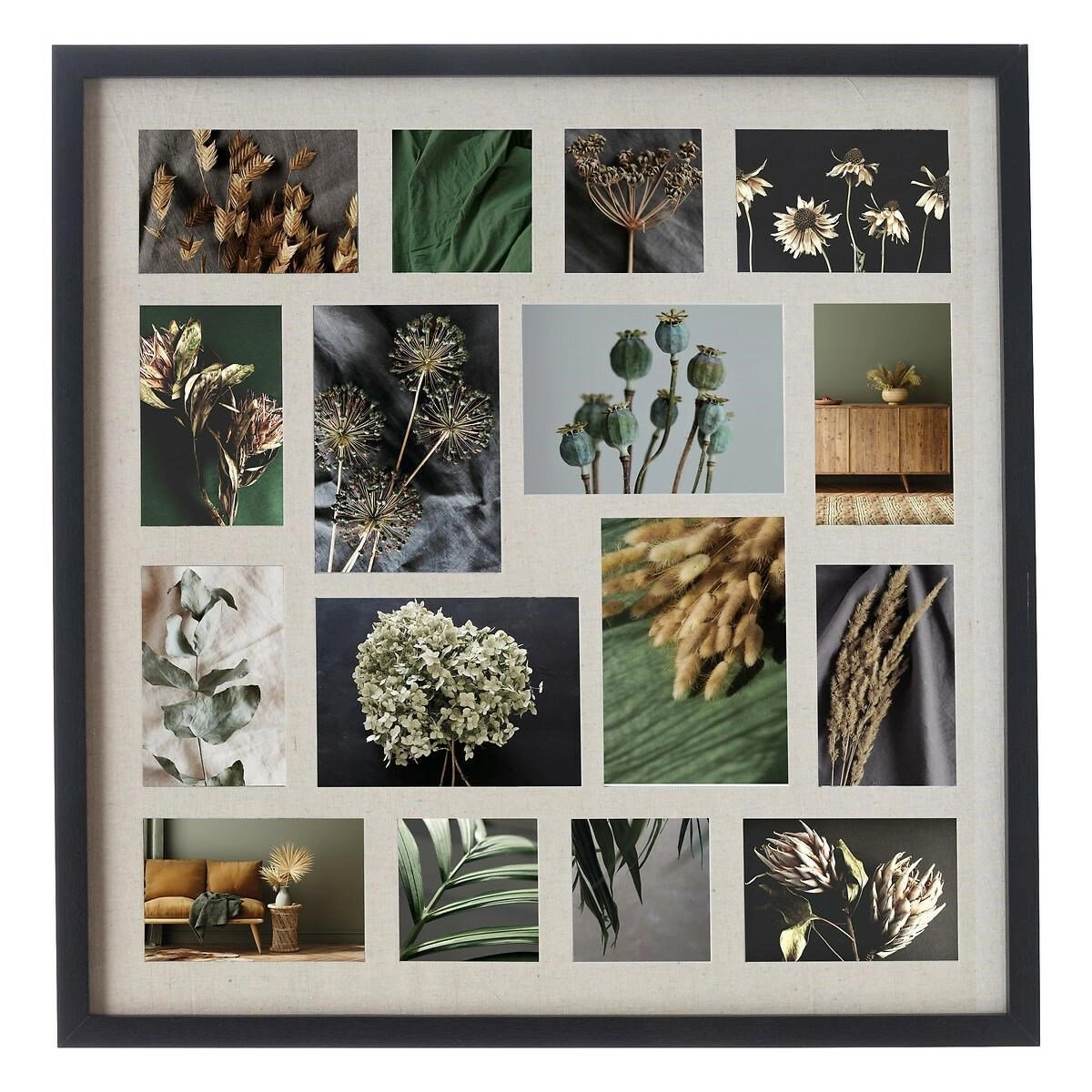 Moderní geometrické uspořádání černého rámu podtrhuje eleganci a stylovost prostor zařízených v minimalistickém nebo skandinávském duchu. Jemné linie a matný povrch zajistí, že rám nepřebíjí ostatní dekorace, ale naopak skvěle ladí s dalšími doplňky. Skleněné výplně chrání fotografie před prachem a poškozením, zároveň zvýrazňují jejich barvy. Čtvercový tvar multirámu usnadňuje umístění na stěnu – může tvořit samostatnou dominantu nebo být součástí větší galerie dekorací.