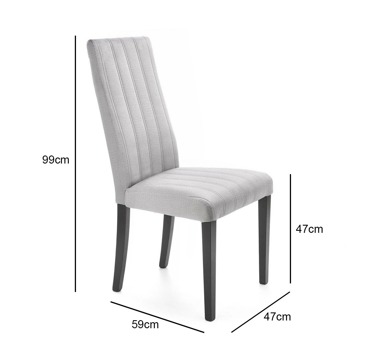 Čalouněná židle Arizona od značky Intesi je kombinací moderního designu a klasické elegance, navržená speciálně do jídelny a obývacího pokoje. Vyniká prošívaným šedým sedákem, pevnou dřevěnou podnoží v černé barvě a vysokým opěradlem, které poskytuje pohodlí i při delším sezení. Díky pečlivě vybraným materiálům a rozměrům (celková výška 99 cm, šířka 47 cm, hloubka 59 cm) se židle skvěle hodí do moderních interiérů.