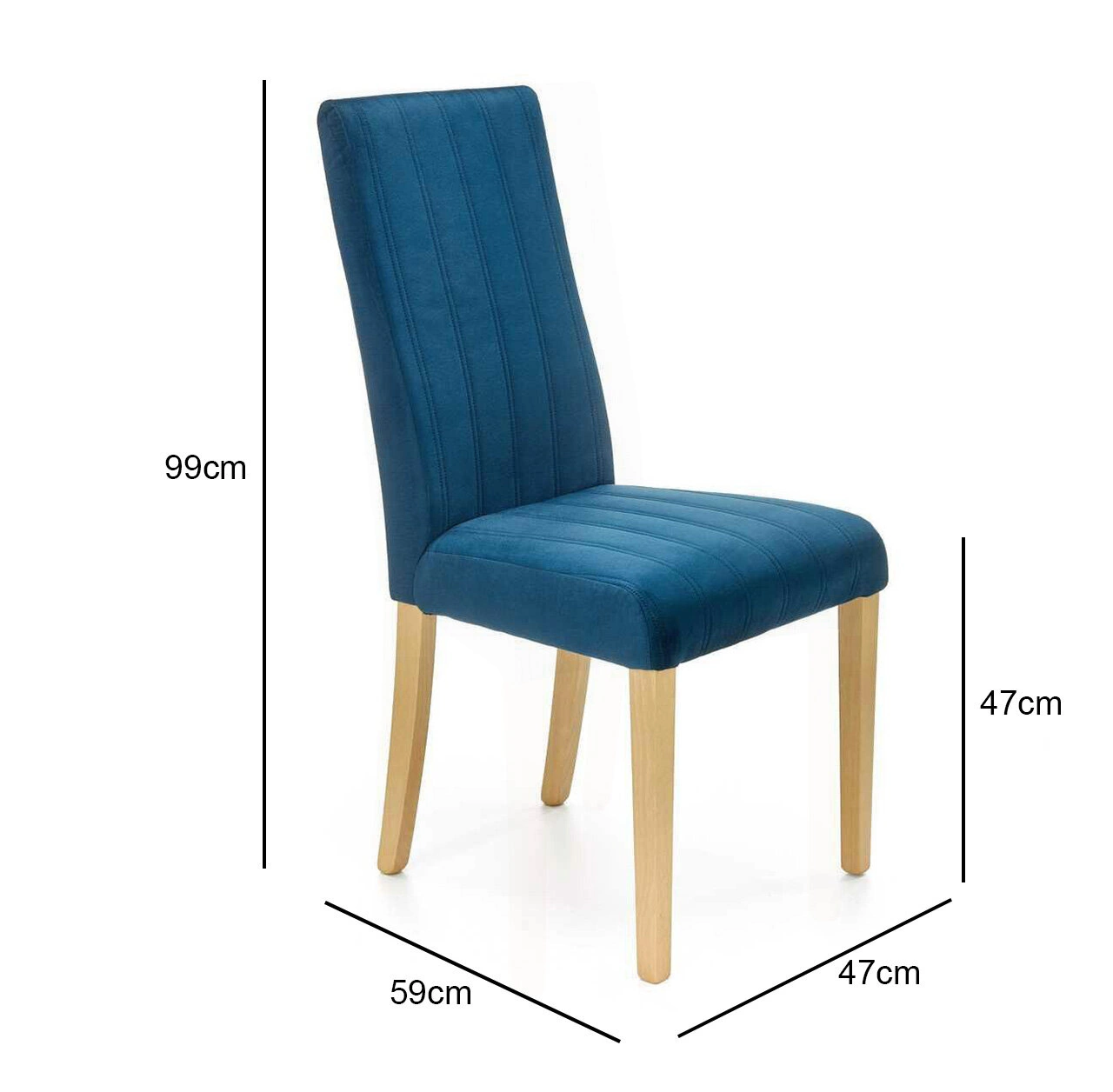 Čalouněná židle Arizona v tmavě modré barvě od značky Intesi je esencí moderní elegance pro vaši jídelnu nebo obývací pokoj. Jedinečné spojení měkké, modré látky s přírodním dubem zajišťuje nejen pohodlí, ale i stylový vzhled. Vysoké, profilované opěradlo s precizním prošíváním poskytuje komfort i při dlouhých posezeních u stolu.