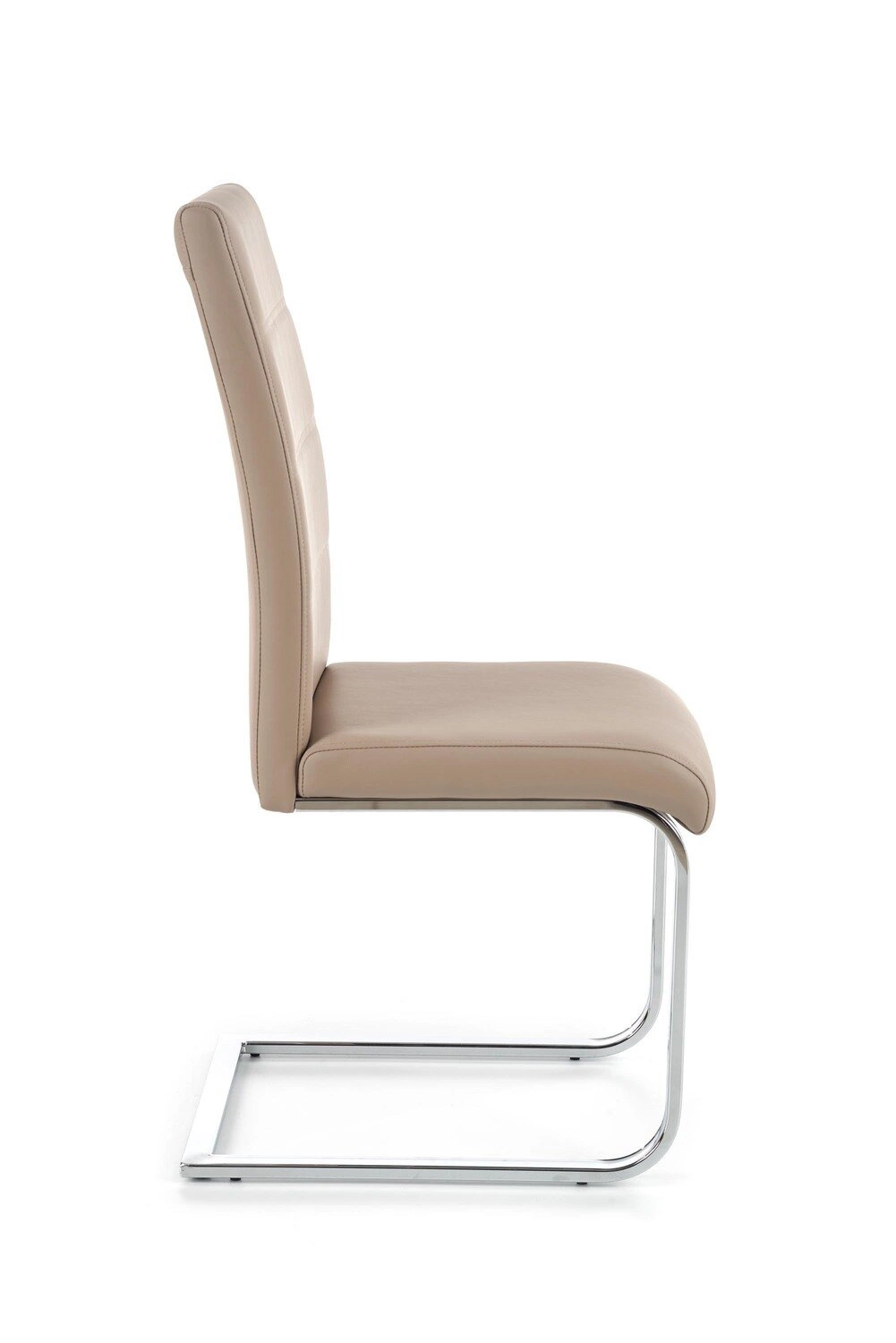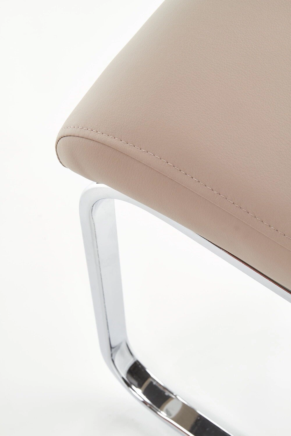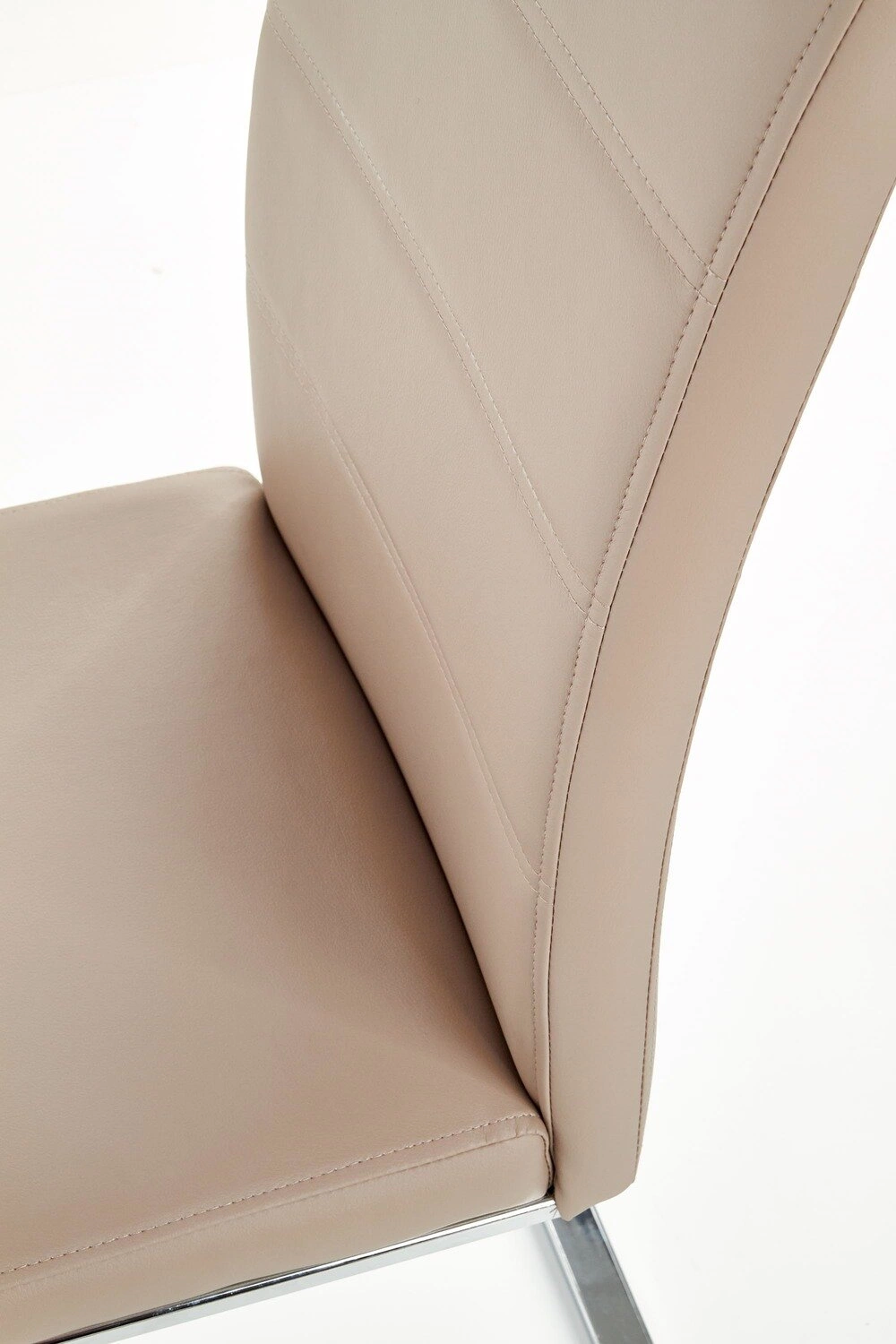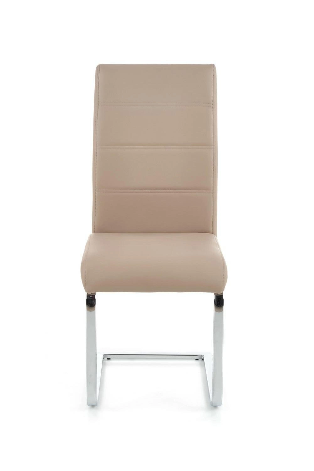 Yvone je čalouněná židle, která podtrhne charakter moderních interiérů. Tmavě béžová ekokůže působí velmi stylově a lesklá chromovaná podnož dodává židli výraz a lehkost. Univerzální, ale zároveň nápaditý vzhled umožňuje použití u jídelního stolu, v moderním obývacím pokoji nebo v kuchyni propojené s obývací částí.