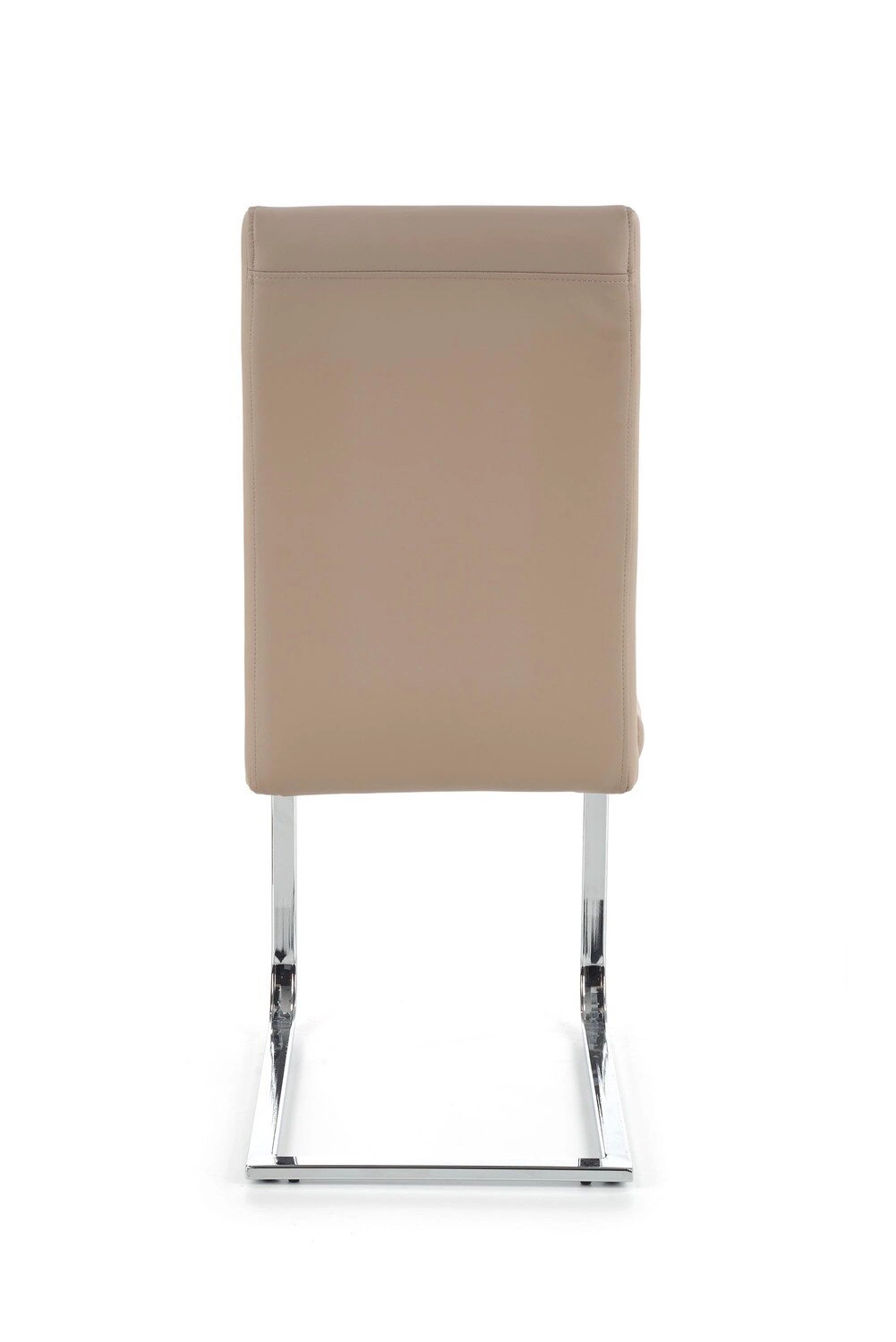 Čalouněná židle Yvone od značky Intesi je skvělou volbou pro ty, kteří ocení moderní design a vysoký komfort. Vyrobena z snadno udržovatelné ekokůže v tmavě béžovém odstínu a postavena na stabilních, chromovaných lyžinách, perfektně zapadne jako jídelní židle, do obývacího pokoje nebo kuchyně. Vysoké, tvarované opěradlo a ergonomicky navržený sedák zaručují pohodlí i při delším sezení.