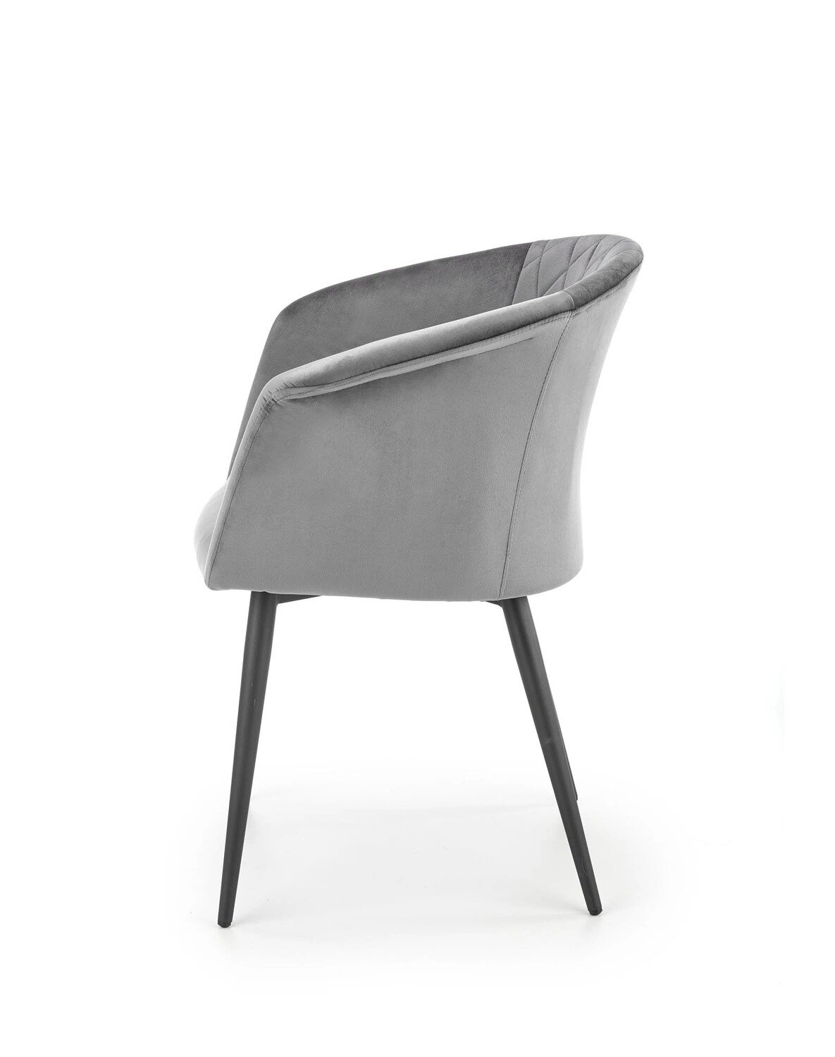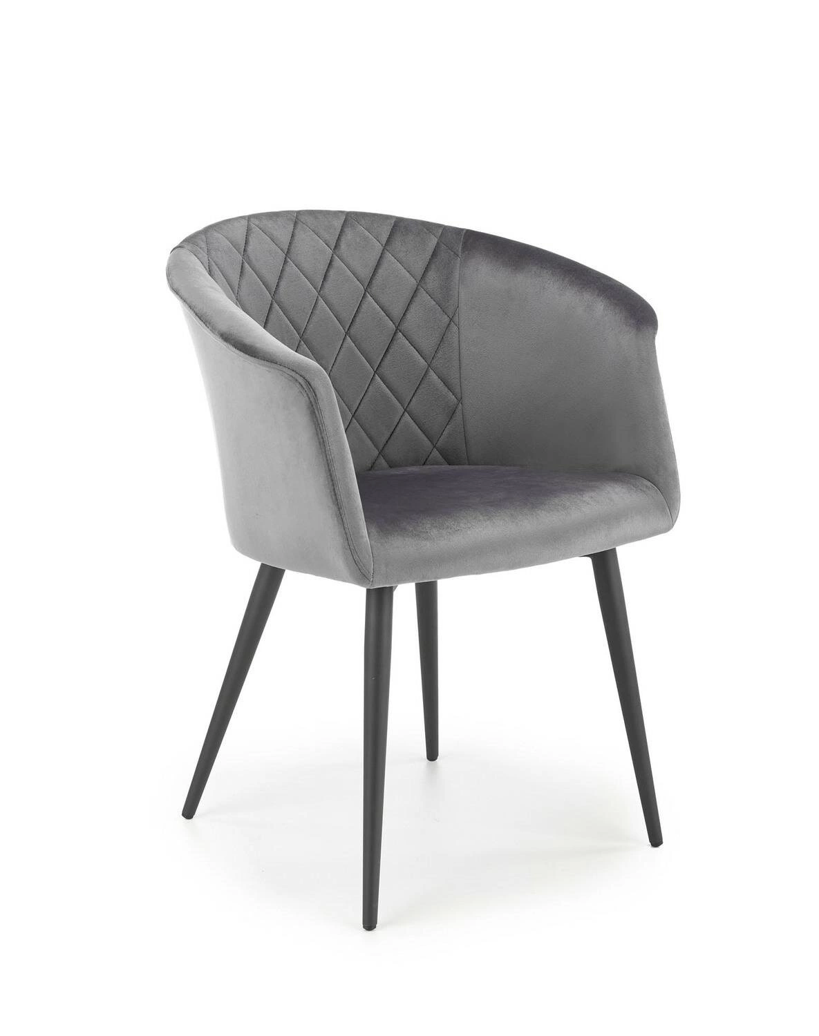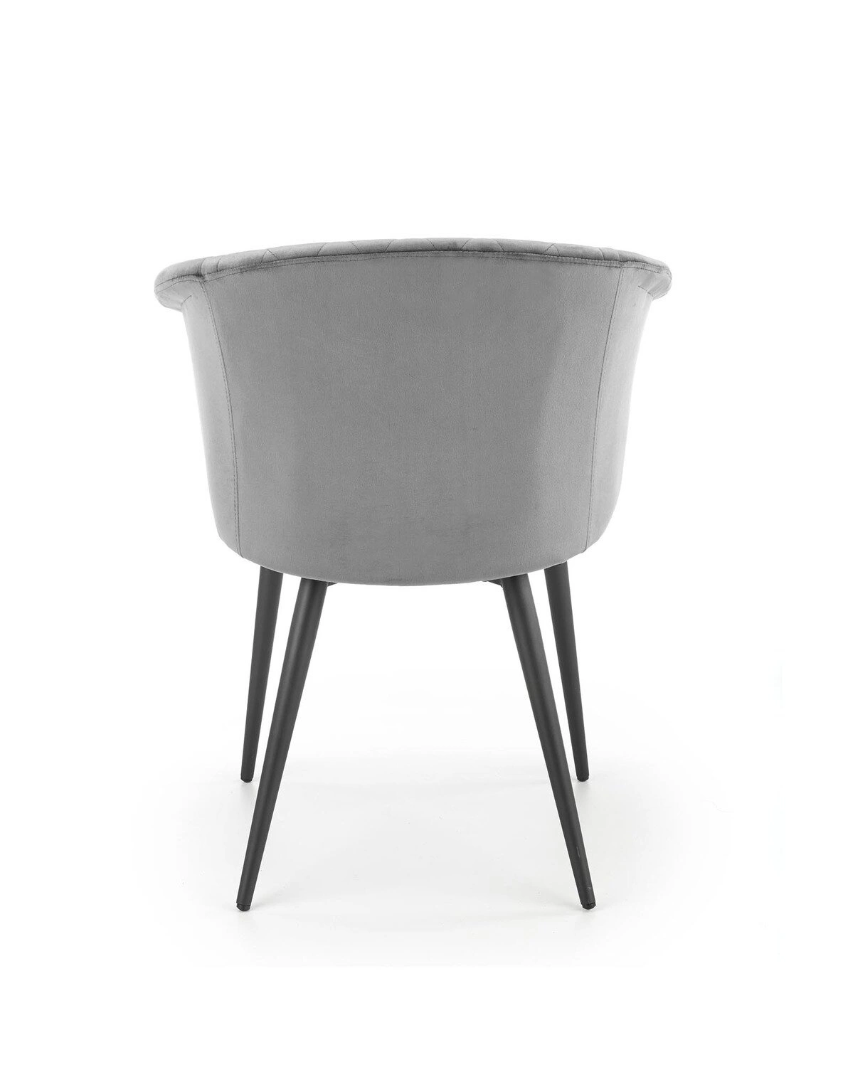 Pokud toužíte po interiéru s nádechem luxusu, šedá čalouněná židle Auger posune vaši domácnost na vyšší úroveň. Jemné prošívání opěradla a sametová látka upoutají pozornost a přinesou do prostoru pocit útulnosti a elegance. Černé, štíhlé nohy s polomatnou úpravou podtrhují moderní vzhled a poskytují výjimečnou stabilitu – a to i při každodenním intenzivním používání v jídelně, obývacím pokoji nebo restauraci.