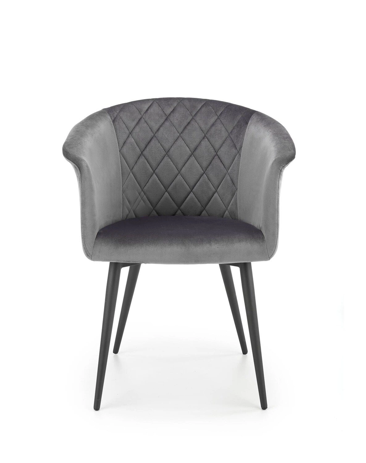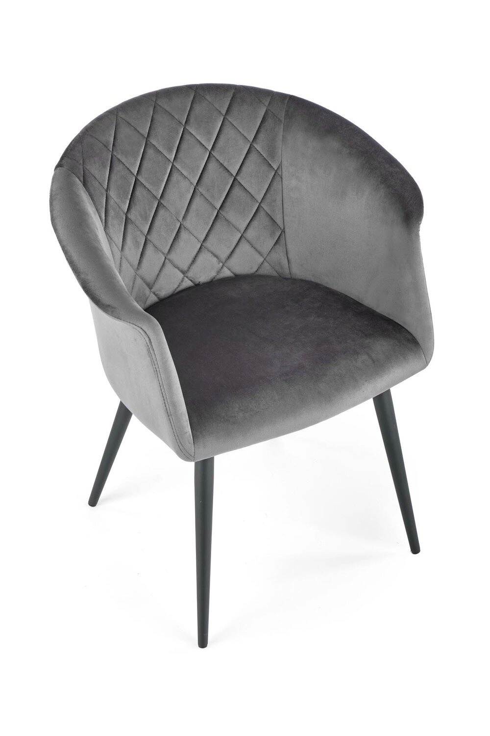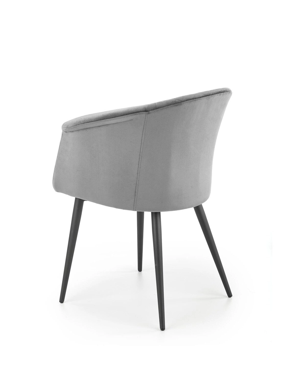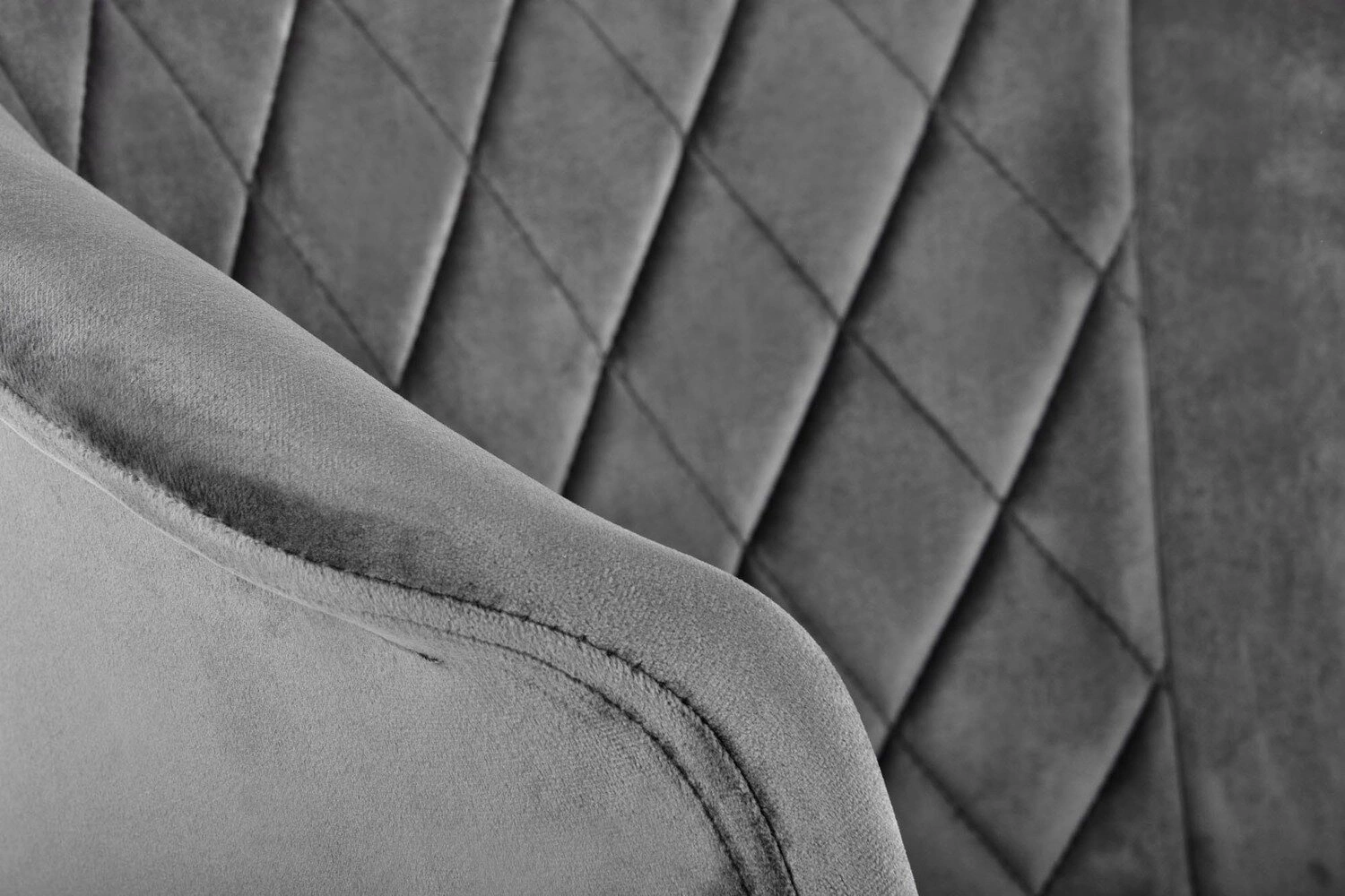Pokud toužíte po interiéru s nádechem luxusu, šedá čalouněná židle Auger posune vaši domácnost na vyšší úroveň. Jemné prošívání opěradla a sametová látka upoutají pozornost a přinesou do prostoru pocit útulnosti a elegance. Černé, štíhlé nohy s polomatnou úpravou podtrhují moderní vzhled a poskytují výjimečnou stabilitu – a to i při každodenním intenzivním používání v jídelně, obývacím pokoji nebo restauraci.