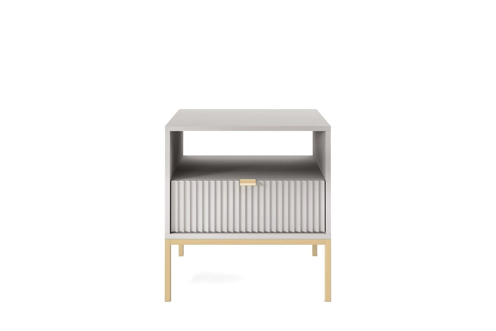 Pokud toužíte po ložnici s nádechem luxusu, šedý noční stolek Delicious z kolekce Intesi splní vaše očekávání. Kombinace rýhovaného čela s elegantními zlatými detaily dělá z tohoto stolku dekorativní ozdobu každého interiéru. Matný povrch podtrhuje moderní charakter, zatímco zlaté nohy a úchyty dodávají prostoru jedinečný lesk. Tento noční stolek ve stylu glamour se skvěle hodí jak ke světlému, tak tmavému zařízení a podtrhne individuální styl vaší ložnice.