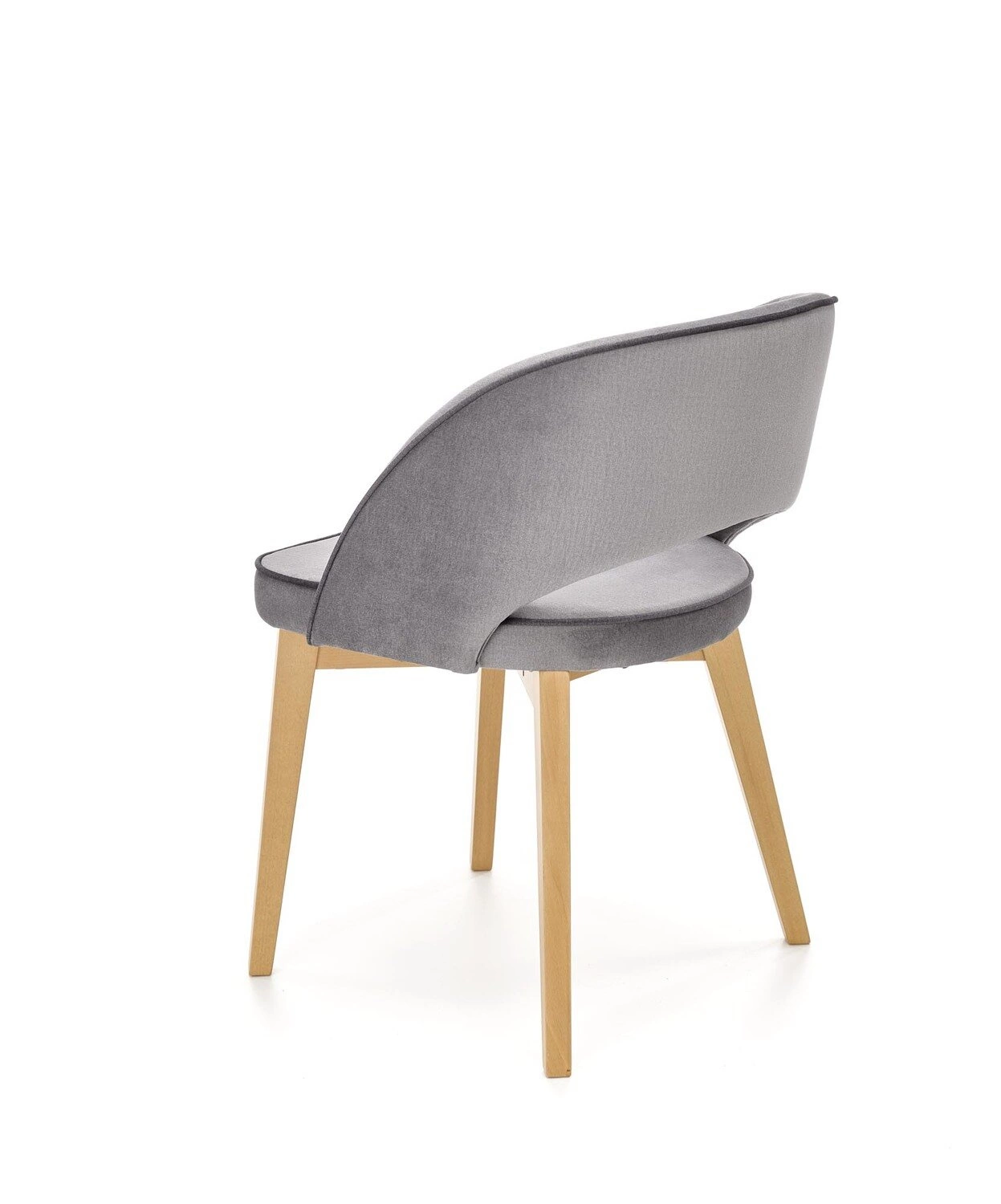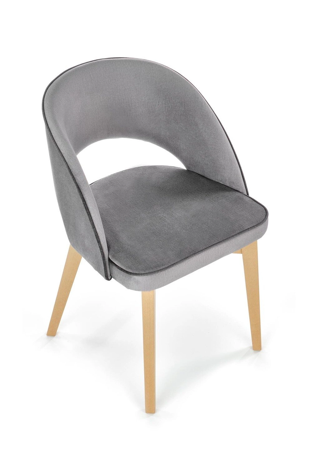 Blanche je čalouněná židle, která upoutá decentní barevností a moderním skandinávským designem. Světle šedý samet jemně odráží světlo a vnáší do místnosti pocit útulnosti a harmonie. Dřevěná podnož v přírodním odstínu medového dubu dodává nábytku lehkost a svěžest, zatímco polomatné provedení nohou podtrhuje jeho sofistikovaný charakter. Toto spojení činí židli Blanche perfektní volbou jak do minimalistických, tak i více dekorativních interiérů.