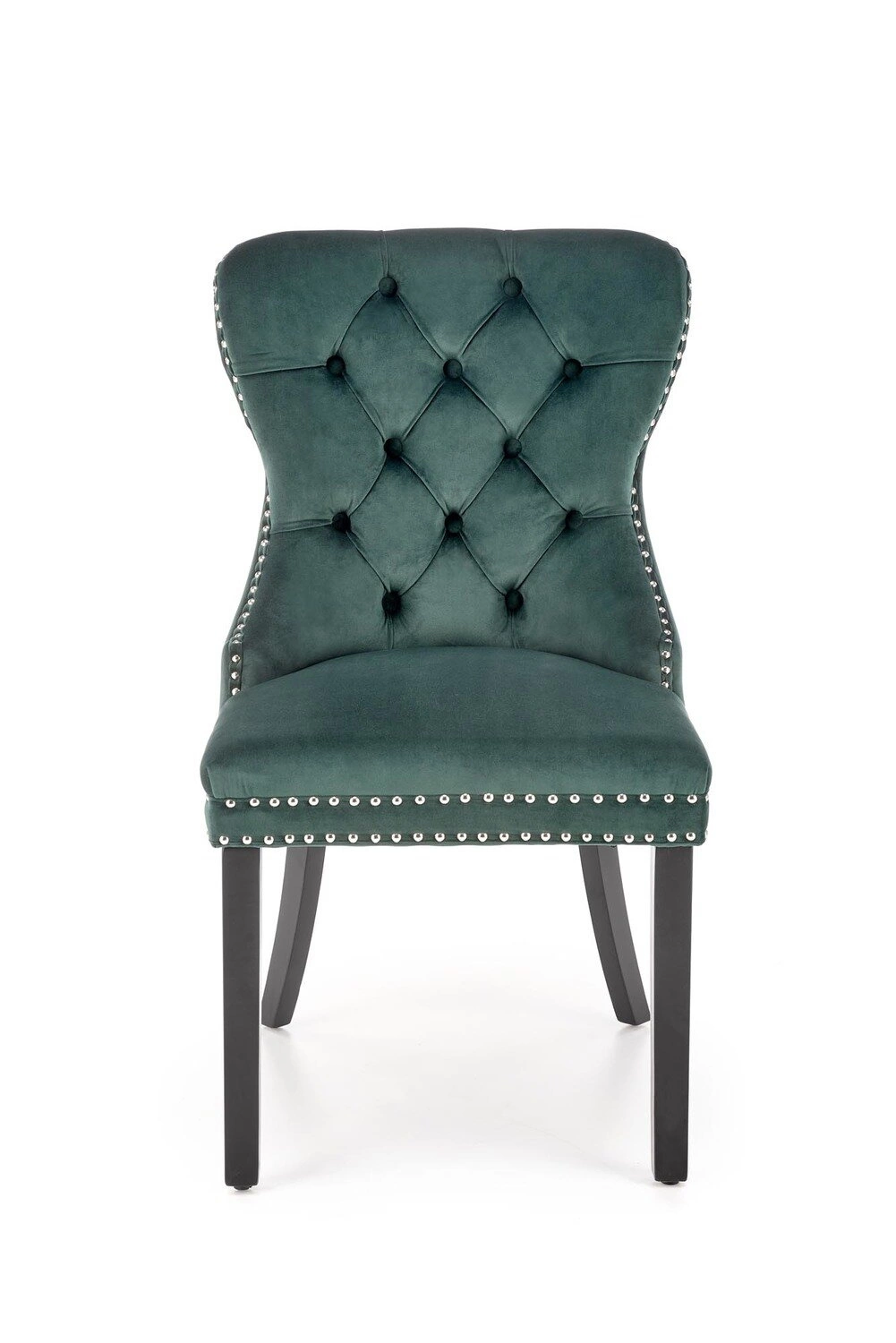 Židle Charlotte kombinuje moderní minimalismus s jemným nádechem glamour, takže skvěle zapadne jak do klasických, tak do odvážnějších interiérů. Hluboký, tmavě zelený samet podtrhuje exkluzivitu a dodává prostoru luxusní atmosféru, zatímco černé dřevěné nohy přinášejí židli lehkost a stabilitu. Tento model nejen zaujme svým vzhledem, ale je i praktickou součástí zařízení – vysoké nohy usnadňují úklid, například i robotickým vysavačem.