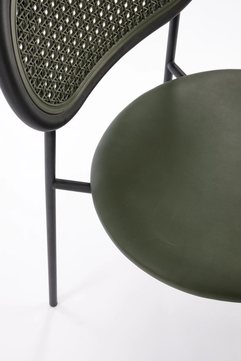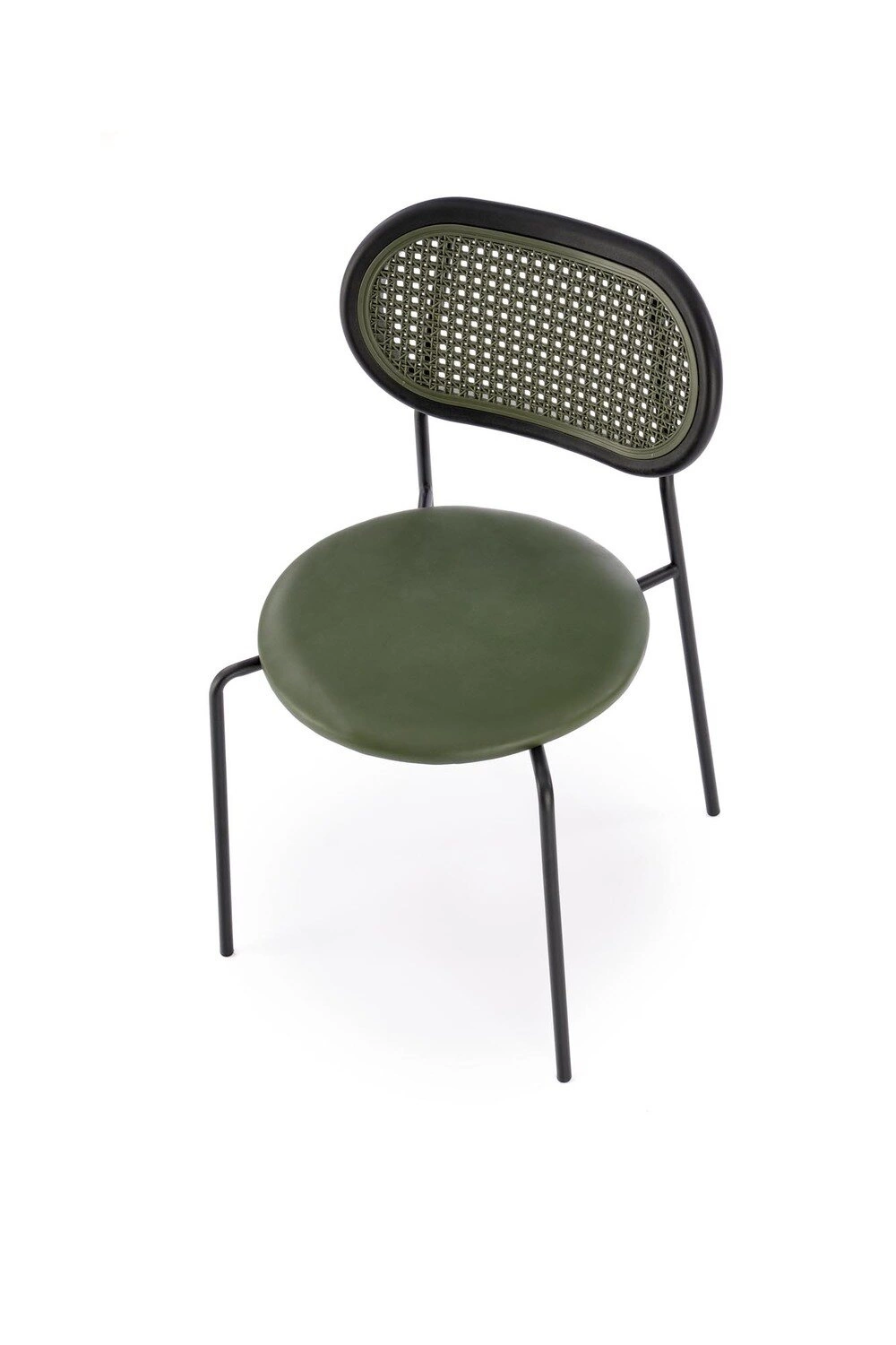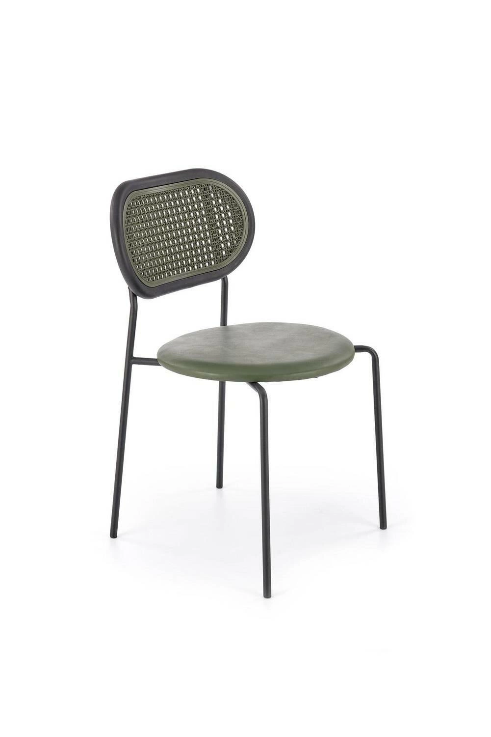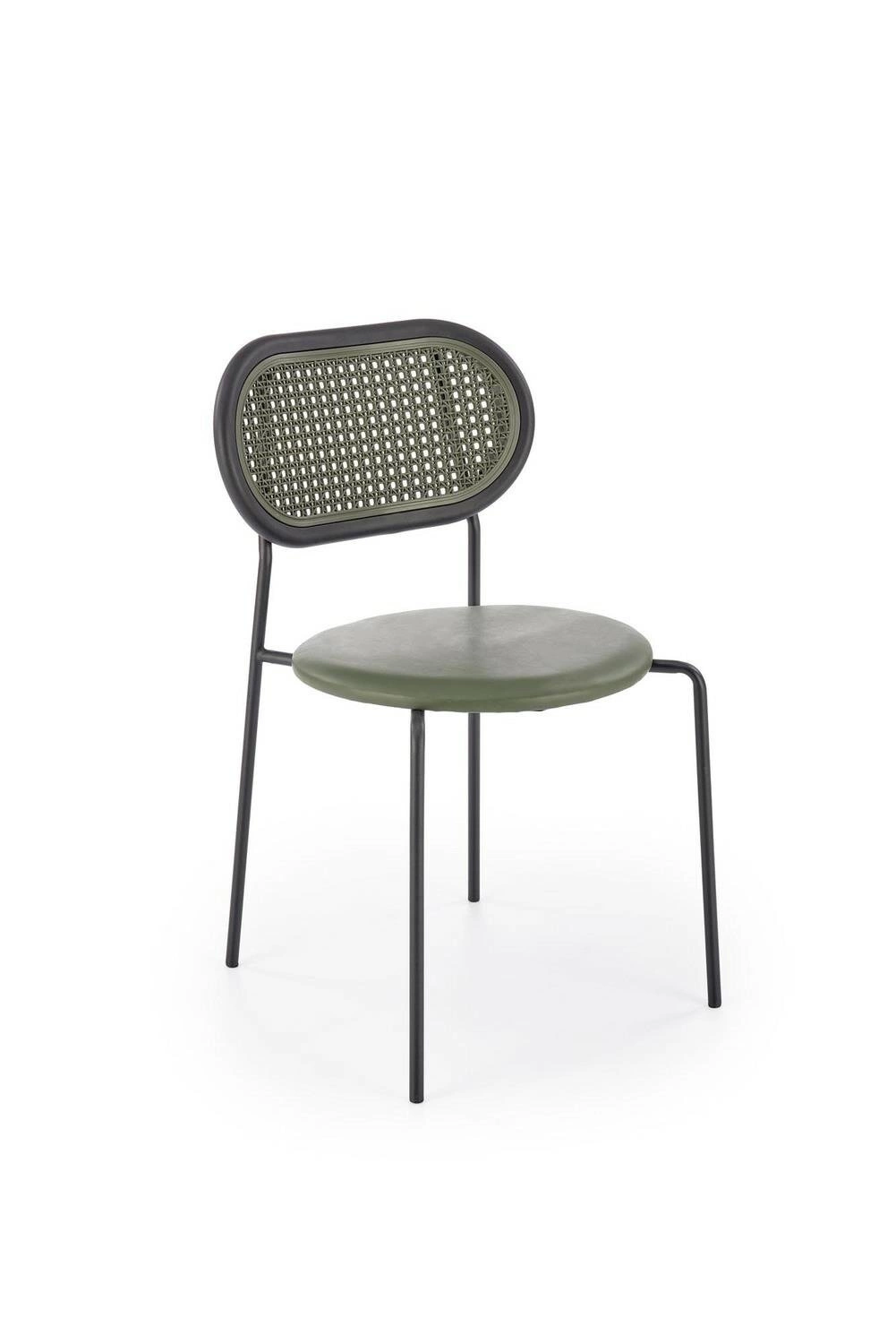 Lander zaujme nejen svým originálním designem, ale také vnáší do prostoru teplo a výrazný barevný akcent. Zelený sedák z ekokůže je zárukou snadného čištění a vysoké odolnosti – ideální volba pro rodiny s dětmi nebo pro ty, kdo ocení pohodlí. Opěradlo z technoratanu podtrhuje charakter židle a nabízí příjemnou oporu zad, takže i dlouhé stolování je skutečným potěšením. Kovové nohy v černém, polomatném provedení zajišťují stabilitu a odolnost při každodenním používání.