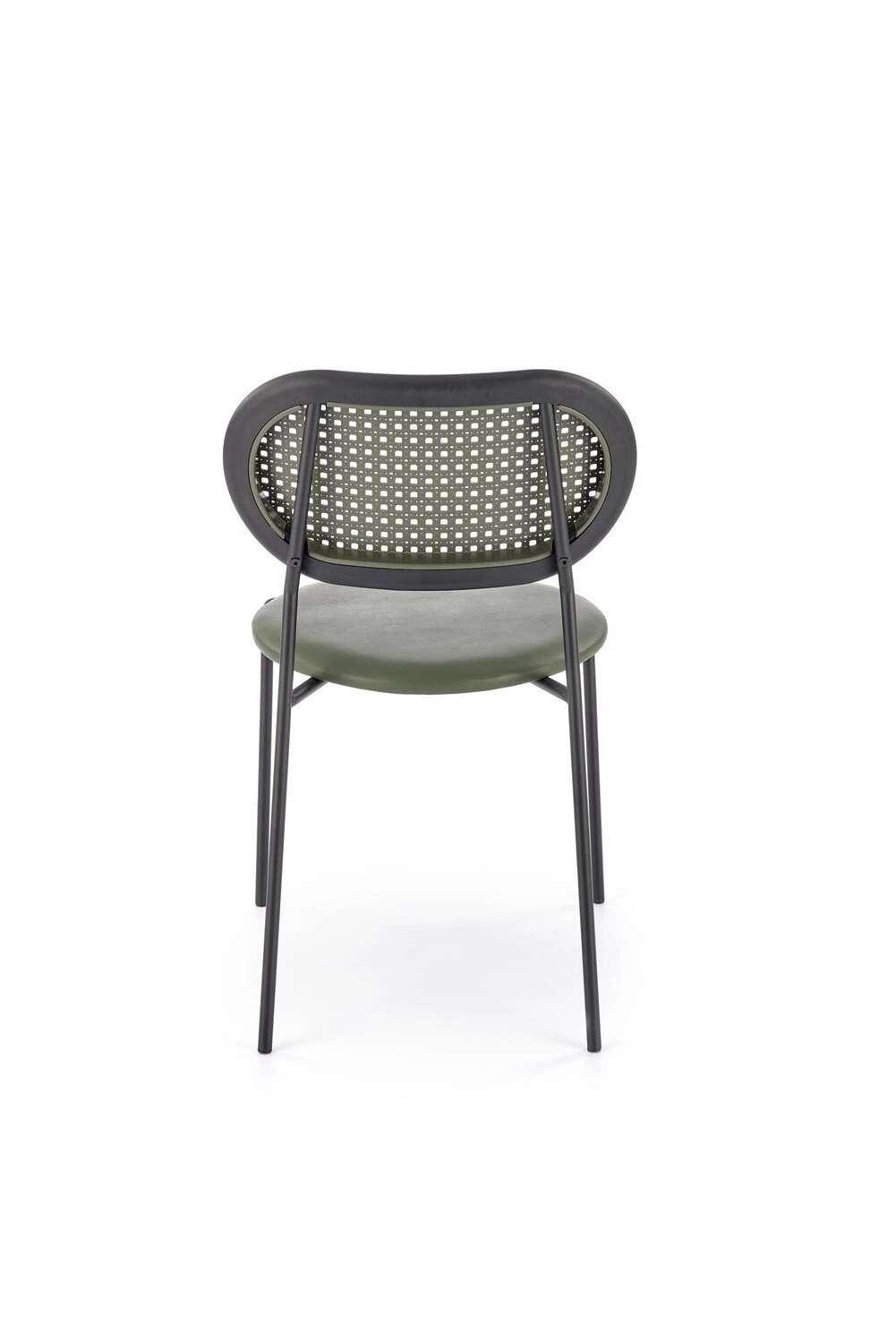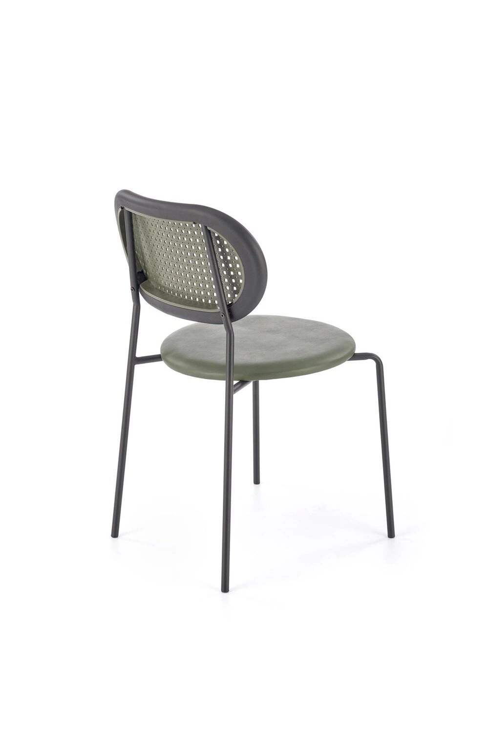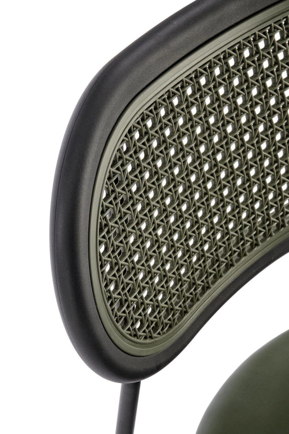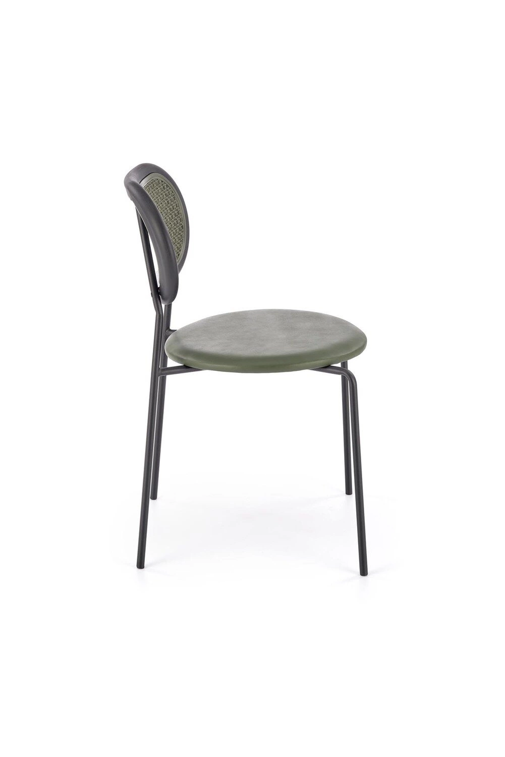 Lander zaujme nejen svým originálním designem, ale také vnáší do prostoru teplo a výrazný barevný akcent. Zelený sedák z ekokůže je zárukou snadného čištění a vysoké odolnosti – ideální volba pro rodiny s dětmi nebo pro ty, kdo ocení pohodlí. Opěradlo z technoratanu podtrhuje charakter židle a nabízí příjemnou oporu zad, takže i dlouhé stolování je skutečným potěšením. Kovové nohy v černém, polomatném provedení zajišťují stabilitu a odolnost při každodenním používání.