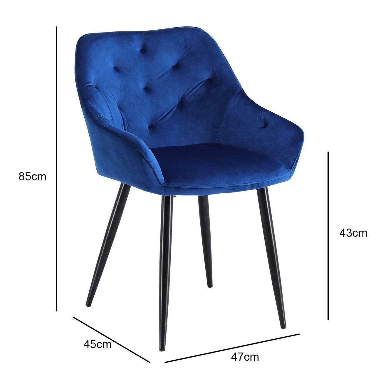 Čalouněná sametová židle Marion značky Intesi je spojením elegance, pohodlí a moderního stylu v jednom kuse nábytku. Vyniká měkkým, tmavě modrým sametem, prošívaným sedákem a černou, stabilní základnou z práškově lakované oceli. Široké područky a ergonomické opěradlo zajišťují, že model Marion perfektně poslouží jako jídelní židle, ale také jako židle do obývacího pokoje nebo stylového koutku u toaletního stolku.