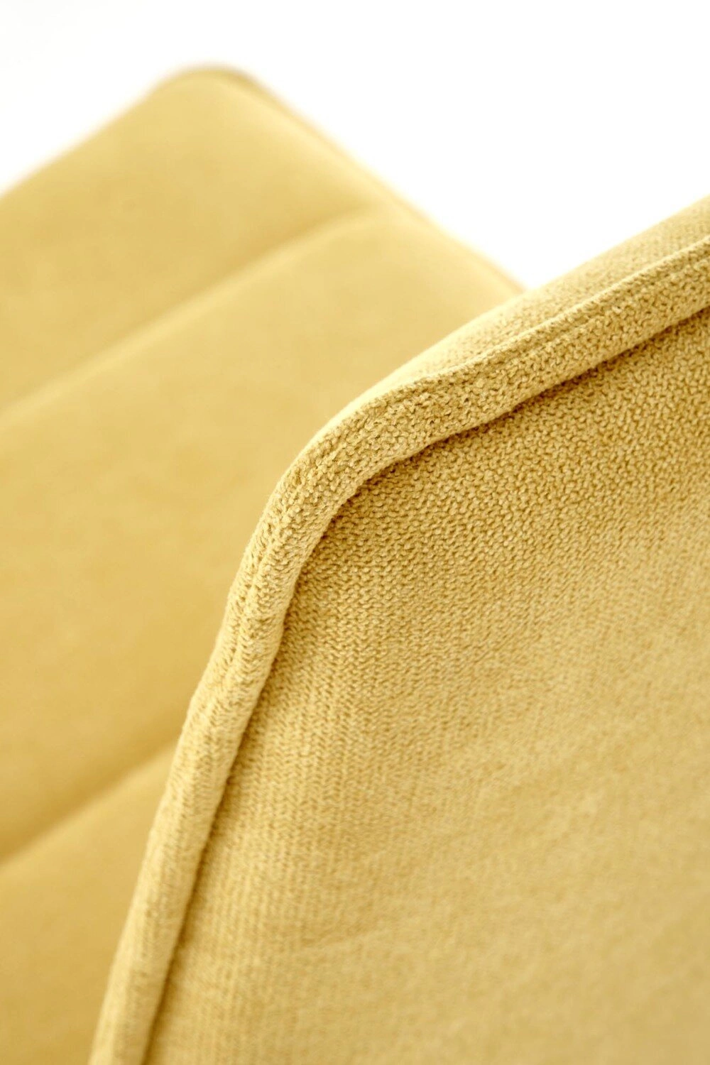 Hořčicová jídelní židle Noelle okamžitě upoutá pozornost a vnese do každého interiéru energii. Žlutý odstín dodává teplo a optimismus, skvěle ladí jak se světlými, tak tmavými stoly. Vysoké černé nohy z práškově lakované oceli podtrhují moderní charakter židle a zároveň zaručují odolnost i při častém používání. Je to perfektní volba, pokud hledáte čalouněnou židli, která jemně oživí minimalistické nebo skandinávské prostory.