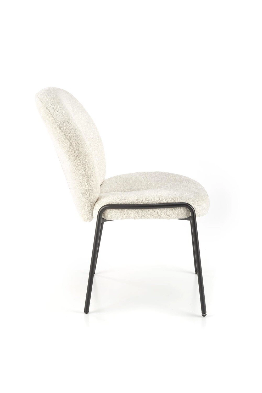 Salome je čalouněná židle, která perfektně odpovídá aktuálním trendům v interiérovém designu. Měkká, krémová látka dodává židli jemnost, zatímco černá konstrukce z práškově lakované oceli je nejen moderním detailem, ale také zárukou stability. Jednoduchý, ale výrazný tvar zajišťuje, že židle skvěle zapadne jak do světlých, minimalistických prostor, tak do glamour či klasických interiérů. Je to ideální volba pro ty, kteří hledají univerzální, stylovou židli do kuchyně, jídelny nebo obýváku.