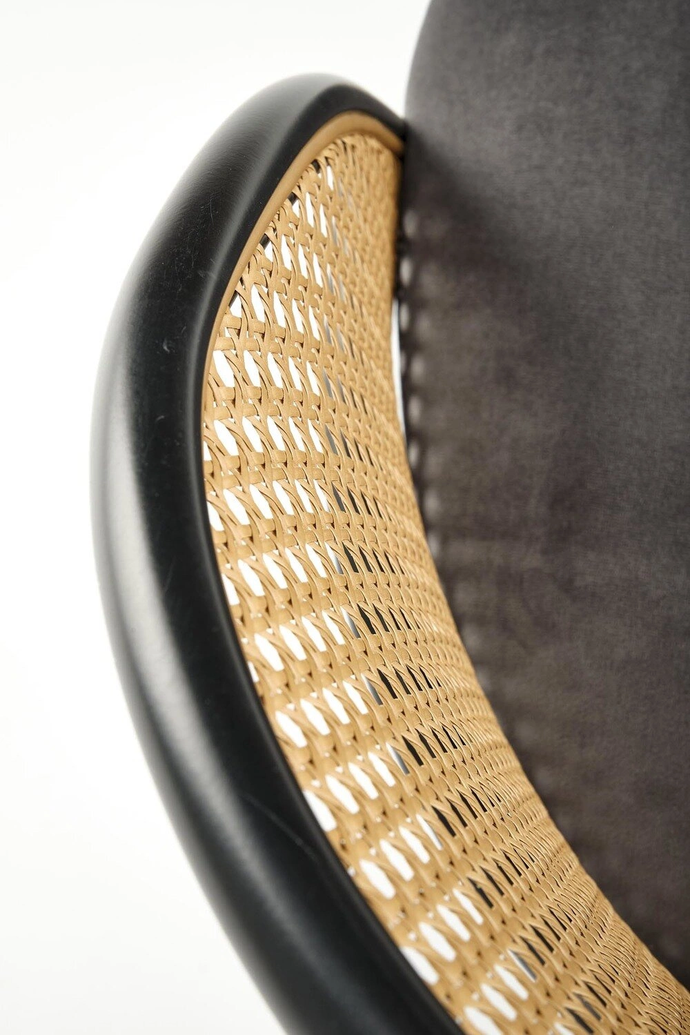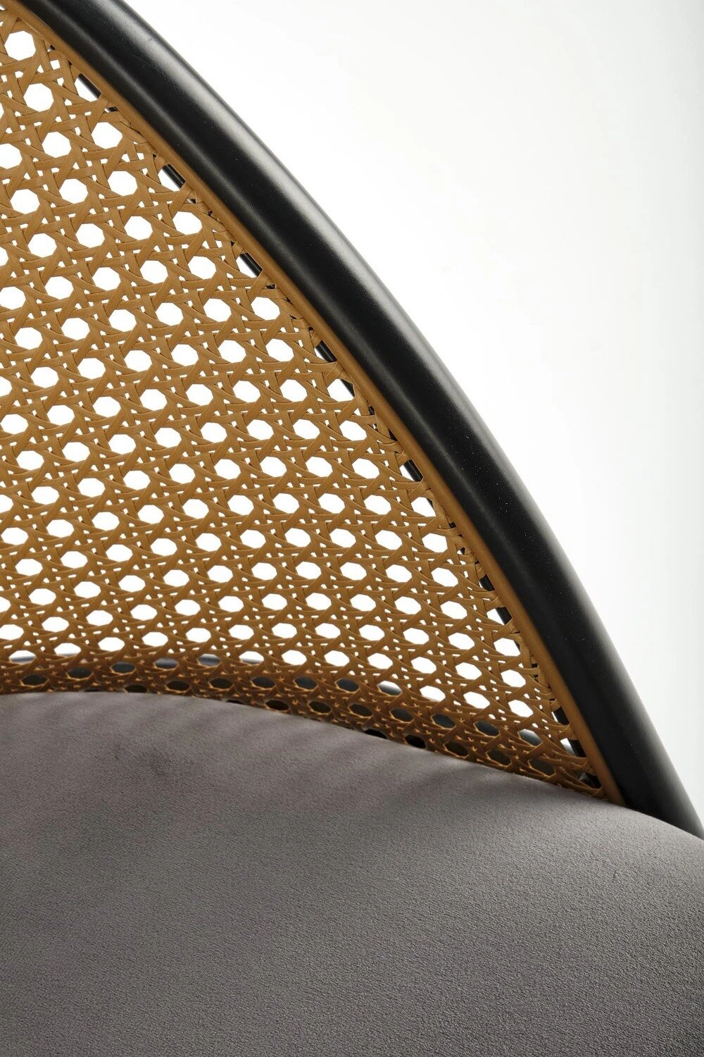 Měkkost sametového čalounění nabízí příjemný, luxusní pocit při každém posezení. Šedý sedák o šířce 50 cm a výšce 48 cm je pečlivě tvarován pro dlouhá posezení u stolu nebo večerní relaxaci s knihou. Opěradlo z technoratanu v přírodním odstínu nejen zdobí, ale i jemně podpírá záda a zajišťuje ergonomii. Tato kombinace materiálů činí židli Seraphine středobodem moderních i retro interiérů.