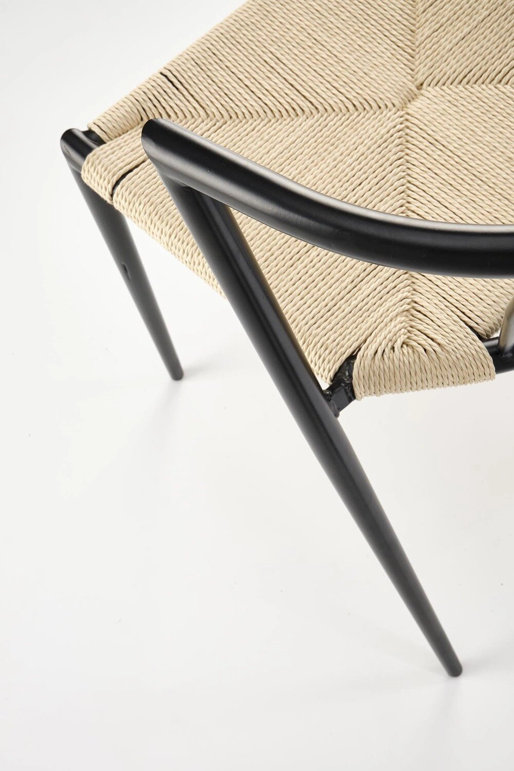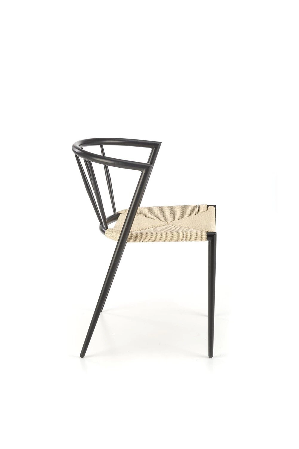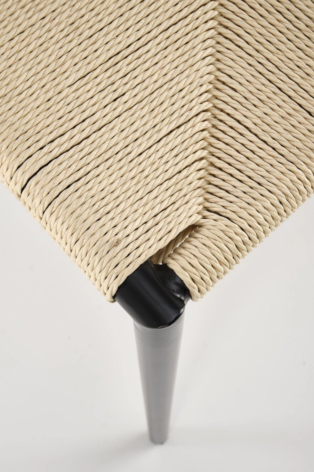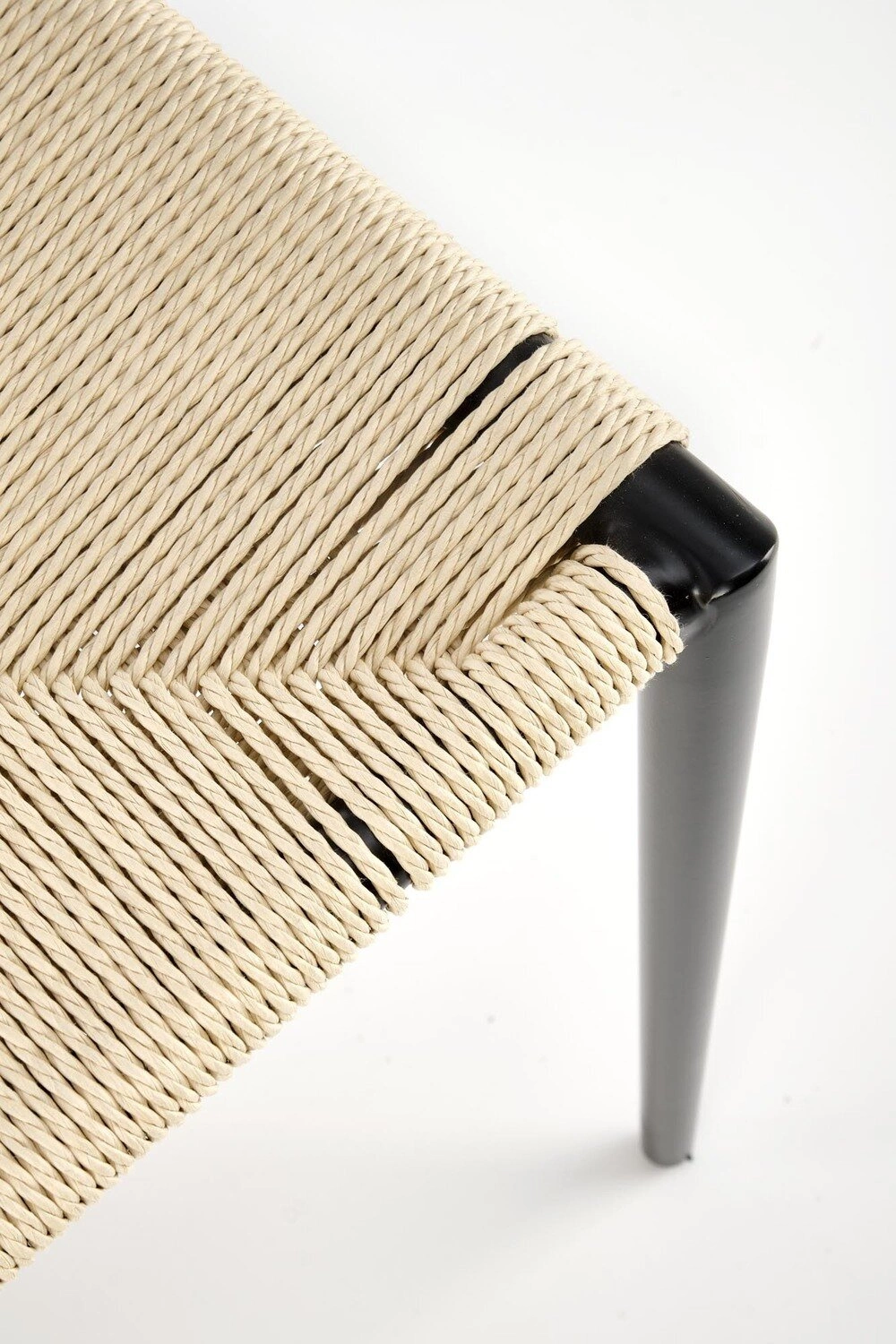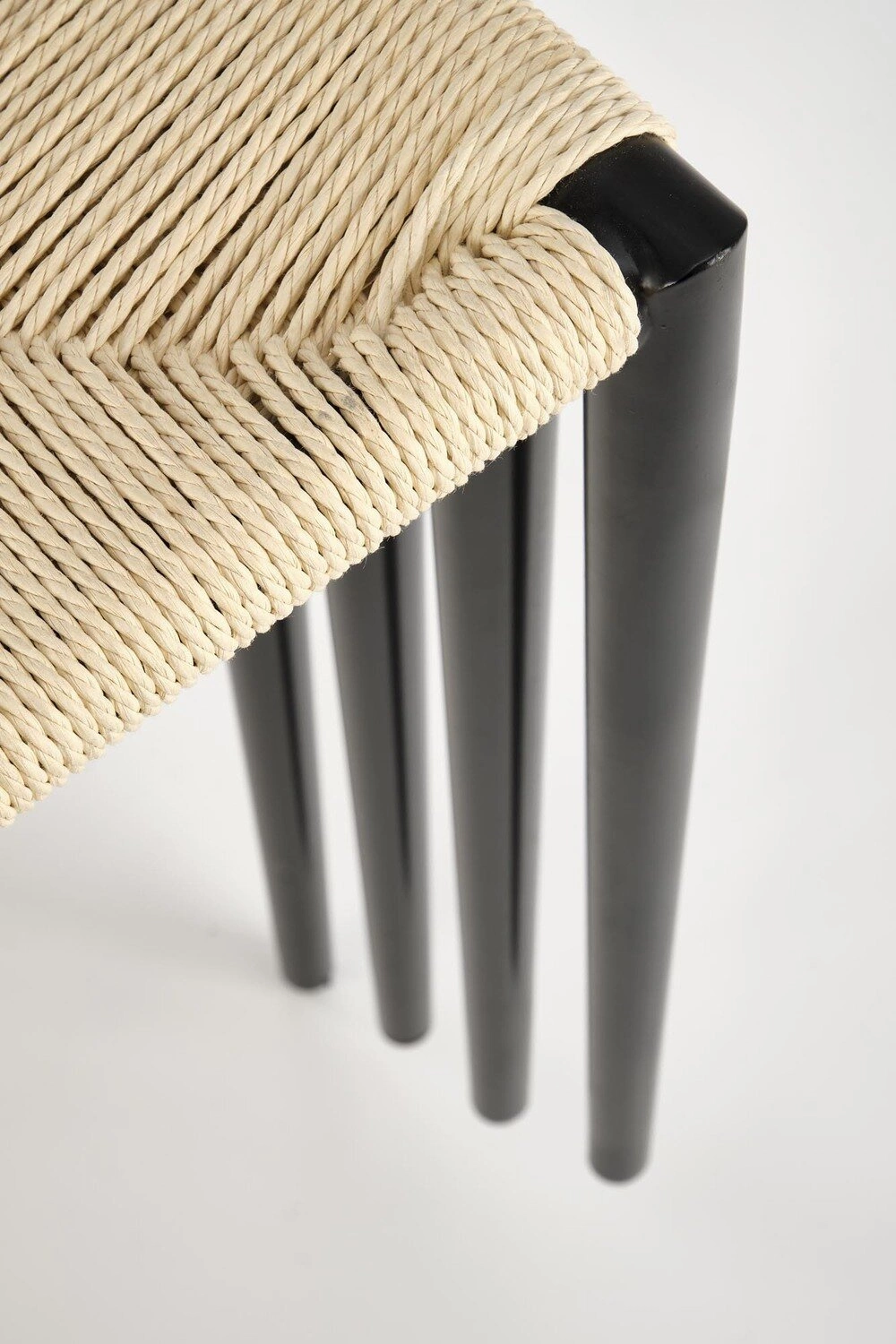 Inspirace loftovým a industriálním stylem je patrná v každém detailu židle Tamara. Černé, vysoké nohy z práškově lakované oceli zaručují nejen odolnost, ale i stabilitu při používání, přičemž jejich štíhlý tvar dodává celé konstrukci lehkost. Pletený přírodní provaz na sedáku je prvek, který tuto židli odlišuje od klasických kovových modelů a zároveň působí jako zajímavý dekorační detail. Díky tomu se židle skvěle hodí do moderních, loftových i industriálních interiérů.