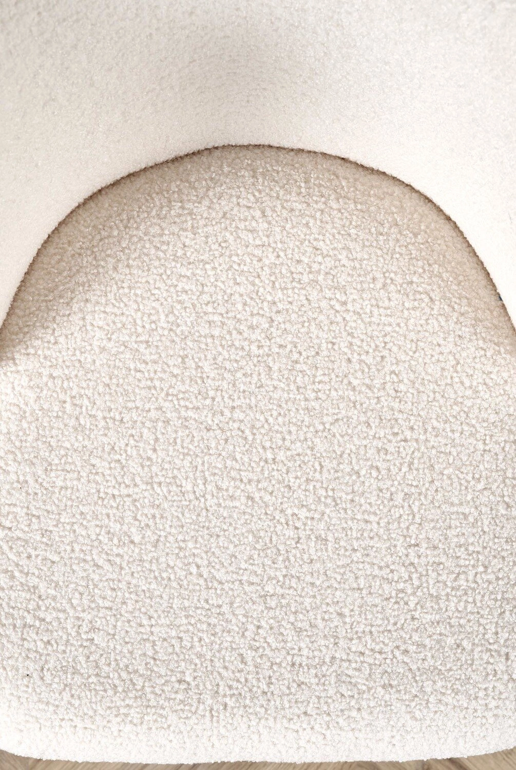 Židle Vanda zaujme jemnými tvary a dokonale se hodí k aktuálním trendům skandinávského designu. Světlé, krémové čalounění bouclé vytváří útulnou atmosféru a zároveň podtrhuje minimalistický vzhled interiéru. Je to ideální jídelní židle nebo židle do obývacího pokoje, která skvěle poslouží také u toaletního stolku nebo v ložnici jako stylový doplněk.