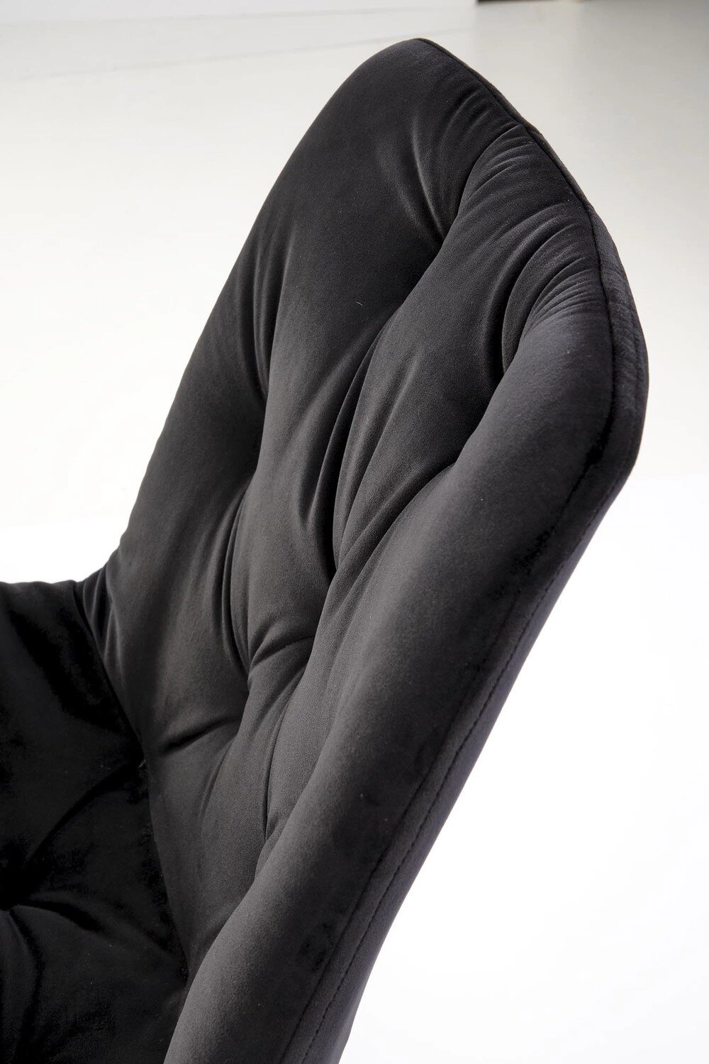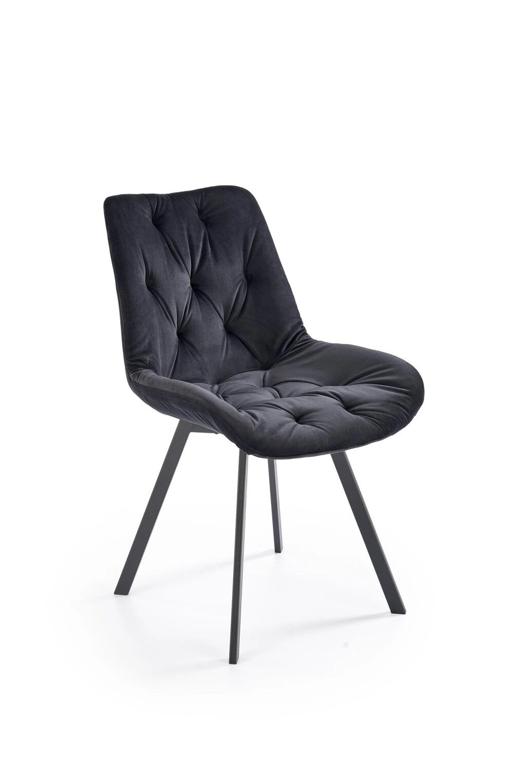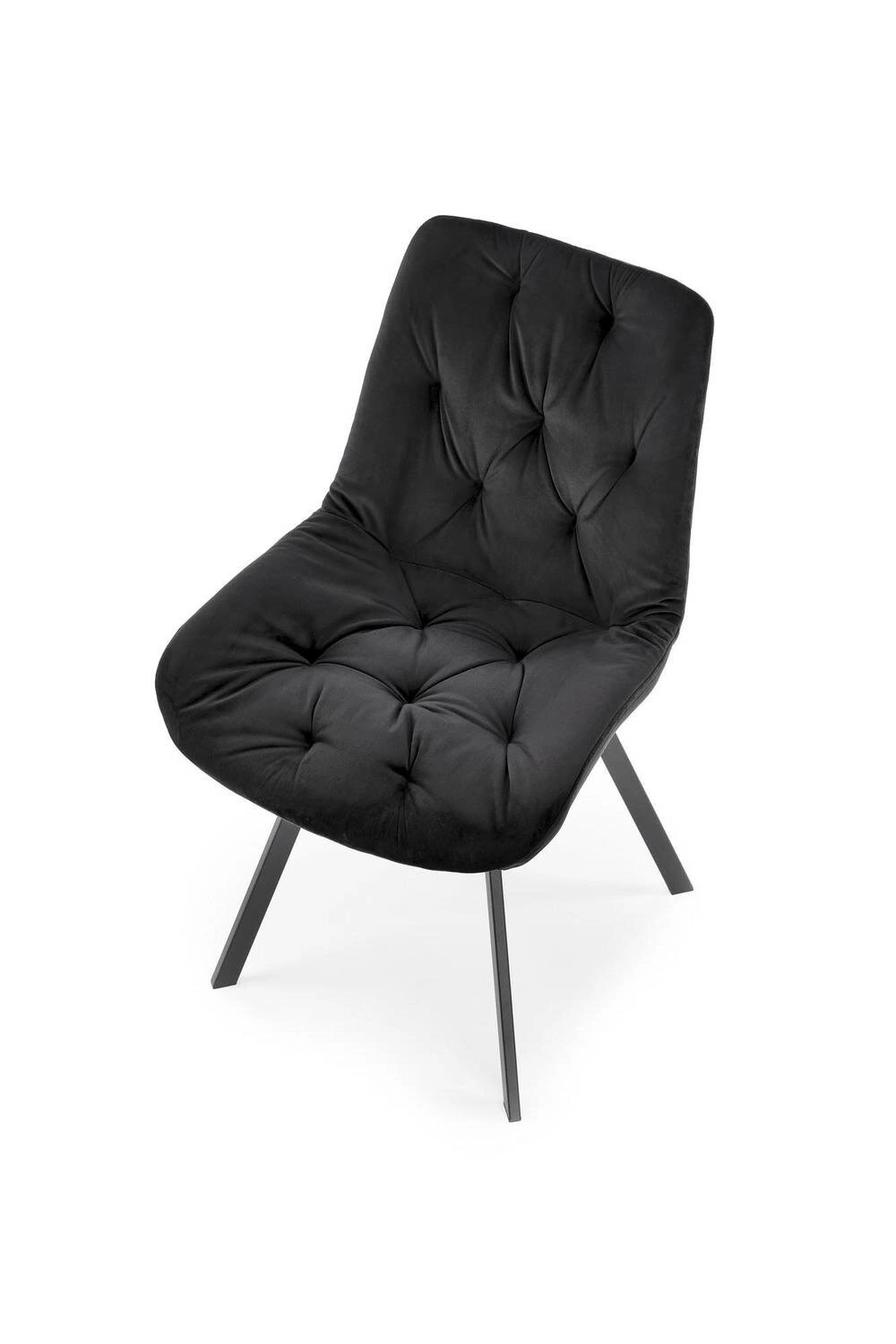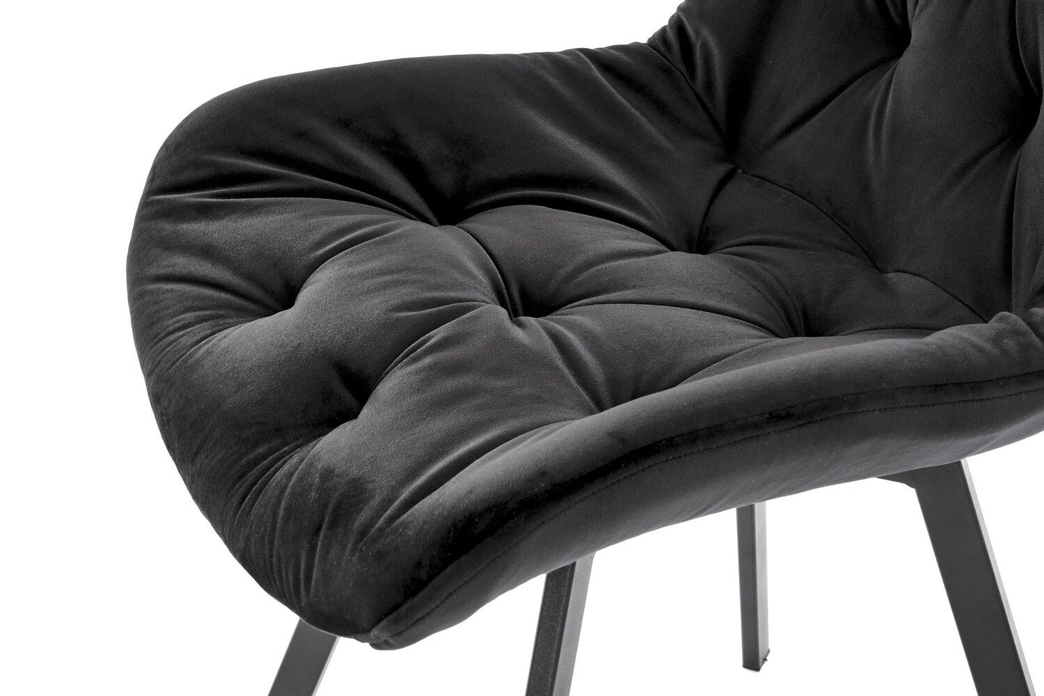 Sametové čalounění příjemně obepíná sedák a zajišťuje komfort při každém posazení. Sedák vyplněný čalounickou pěnou poskytuje správnou oporu i při dlouhodobém používání. Černá, práškově lakovaná základna na čtyřech nohách nabízí nejen stabilitu, ale i odolnost v běžném provozu. Absence područek umožňuje snadné zasunutí židle pod stůl či pracovní desku a šetří tak místo v místnosti.