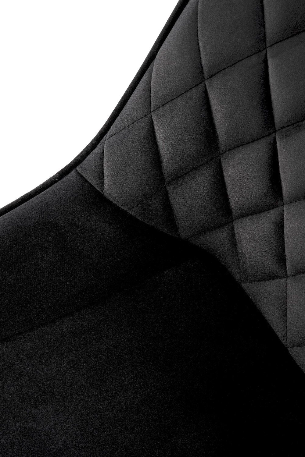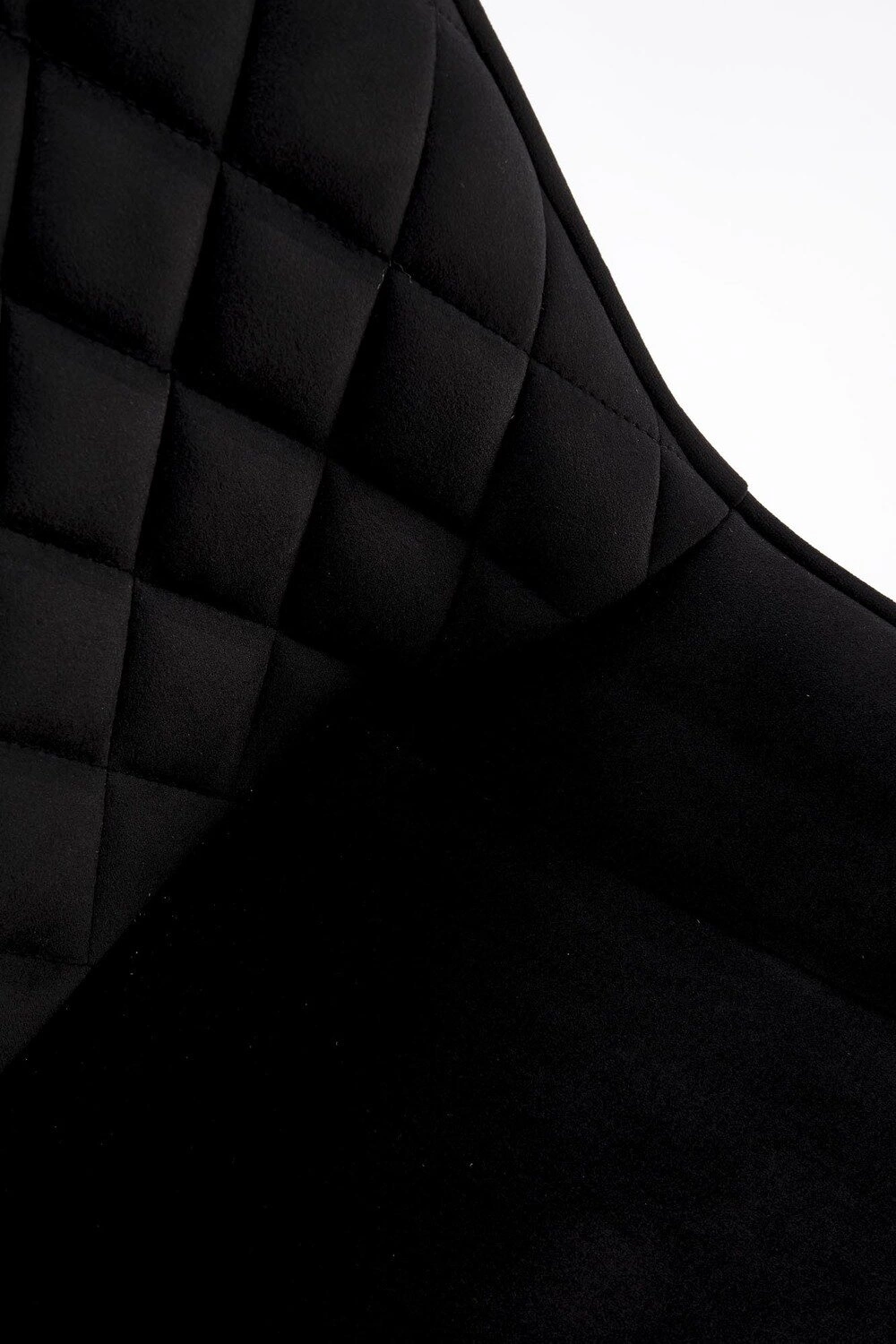 Model Veroniq je moderní židle, která díky černé barvě a jemnému lesku sametu vnáší do interiéru eleganci a nadčasový šmrnc. Práškově lakovaná základna v černém polomatu nejen skvěle vypadá, ale také se výborně hodí k trendovým aranžmá obývacího pokoje, jídelny či ložnice. Je to ideální volba pro ty, kteří hledají jídelní židli nebo židli do obýváku, která doplní glamour styl nebo minimalistické prostory.