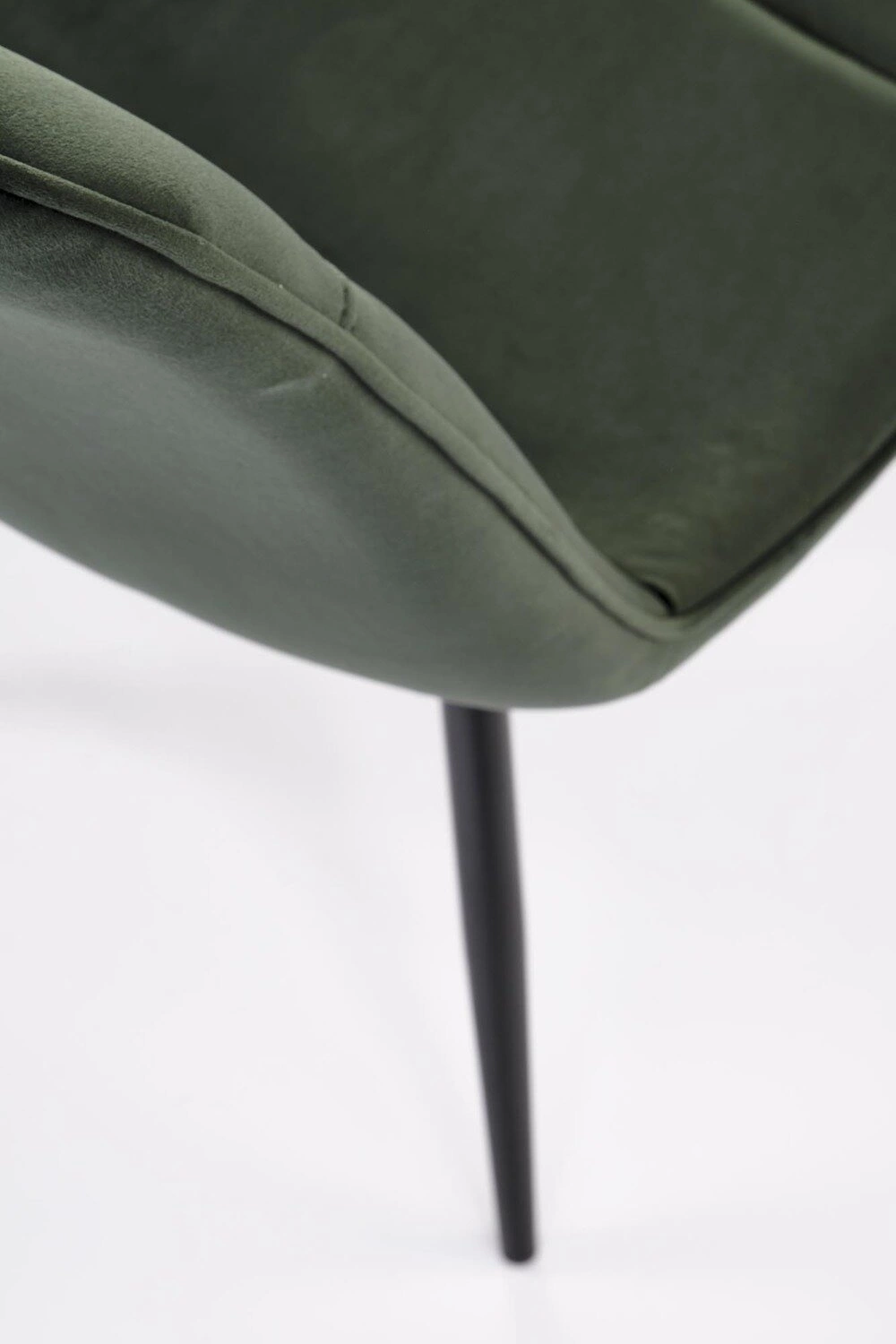 Čalouněná židle Vivia zaujme jemným spojením elegance a funkčnosti. Tmavě zelený samet působivě odráží světlo a vytváří luxusní glamour efekt, který oživí i klasické interiéry. Jednoduché a přitom výrazné linie designu umožňují židli skvěle zapadnout do moderního zařízení, kde podtrhne vkus majitelů. Kovová černá základna dodává nábytku lehkost a stabilitu, zároveň však umožňuje snadné sladění se stoly různých stylů.