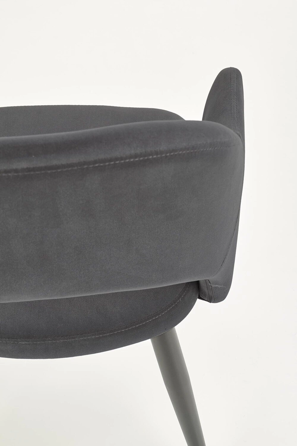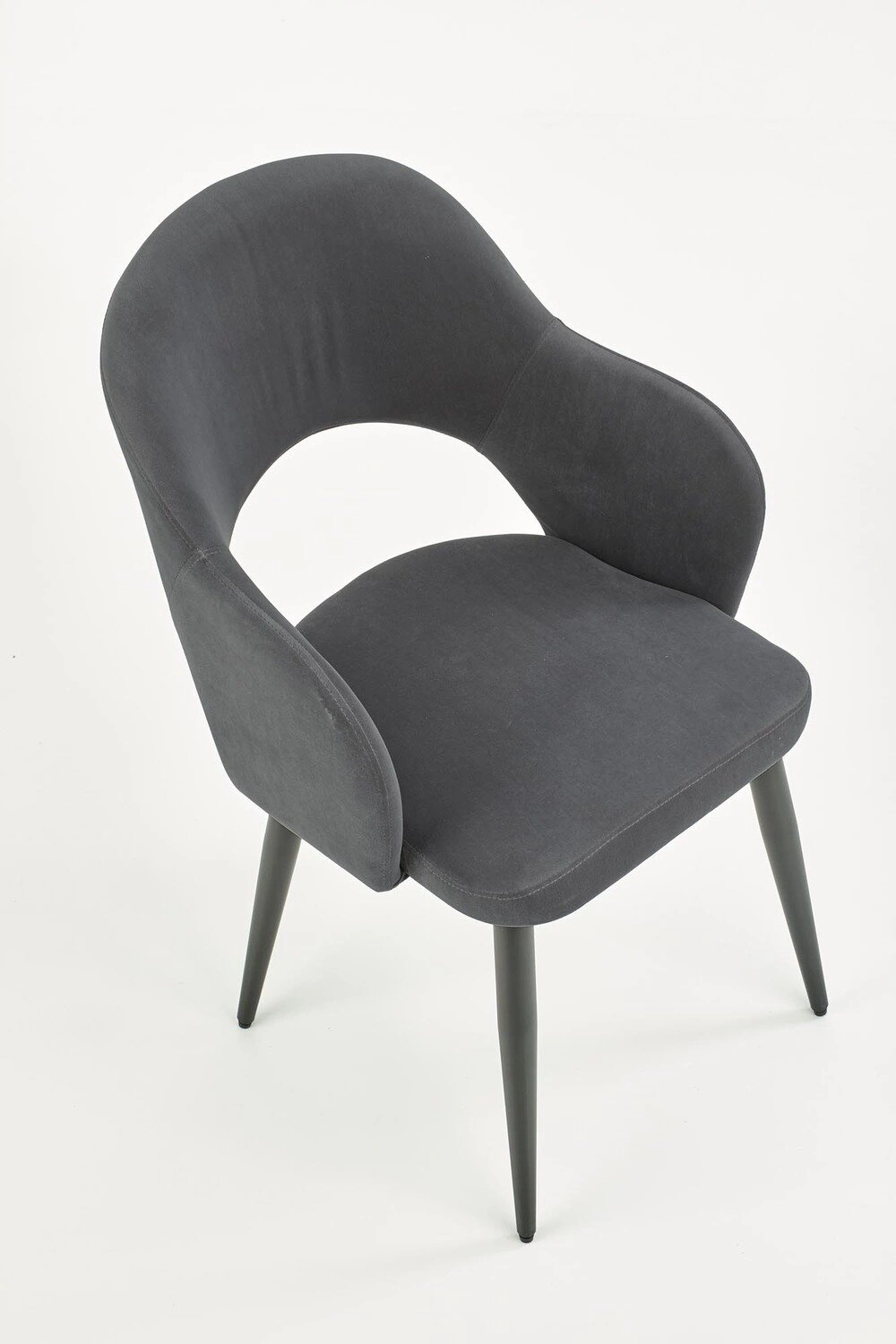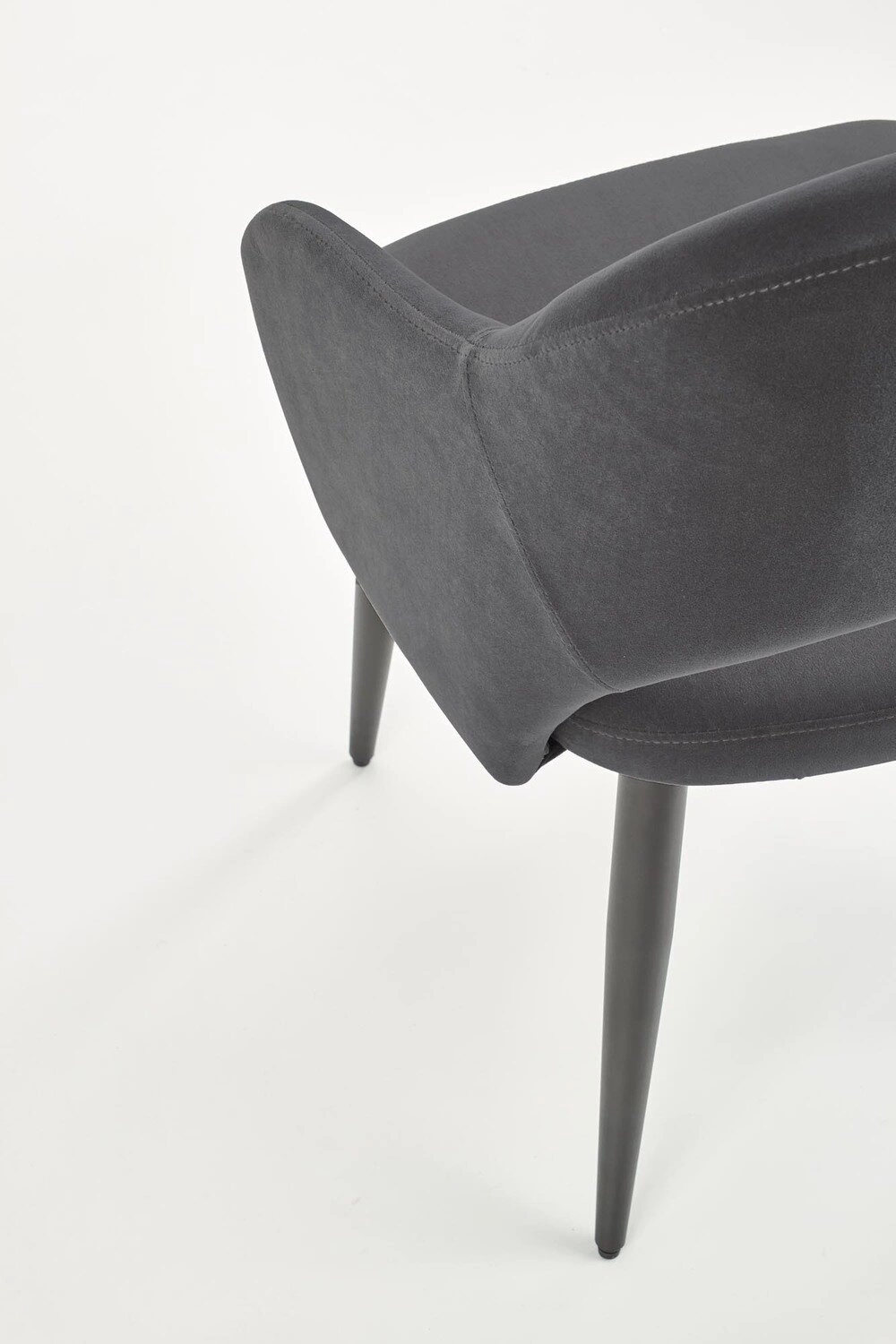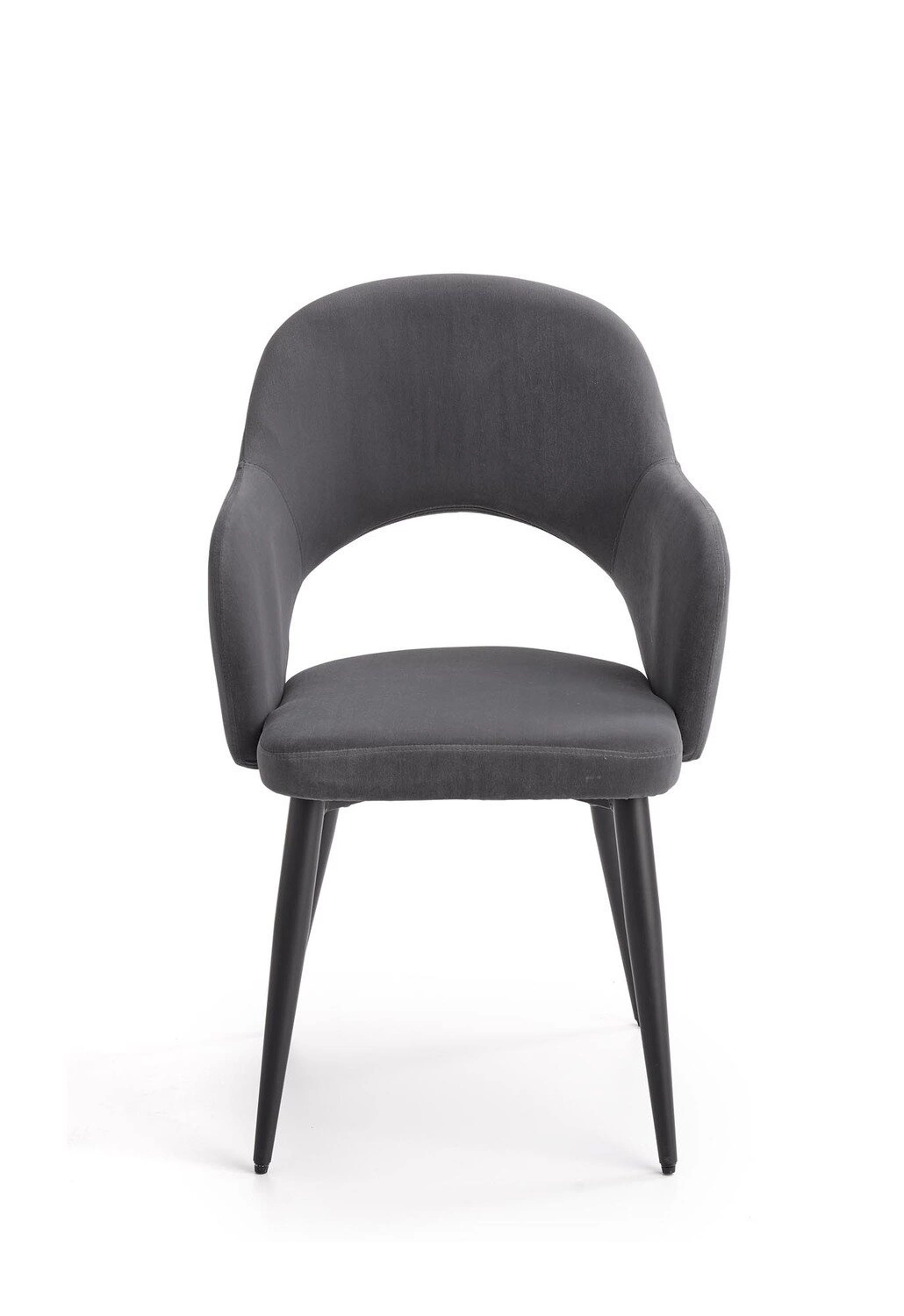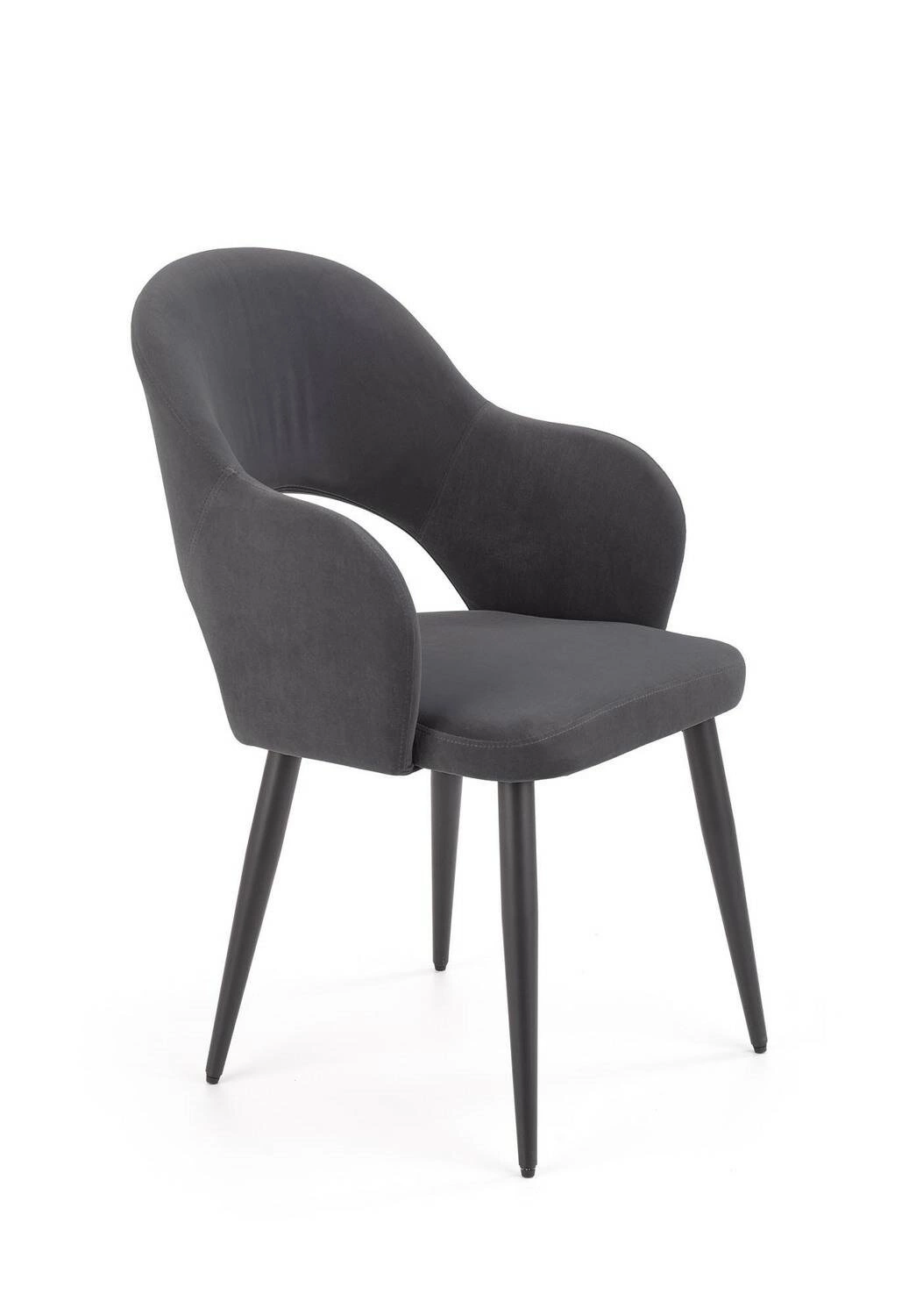 Židle Vilson je ideální volbou pro ty, kteří si cení současného designu a jemné estetiky. Minimalistický tvar, mírně zaoblené područky a matné černé nohy zdůrazňují moderní styl interiéru, aniž by dominovaly prostoru. Tmavě šedé čalounění dodává eleganci a skvěle ladí se dřevem, sklem i kovem – ať už u jídelního stolu, nebo v relaxační zóně obývacího pokoje.