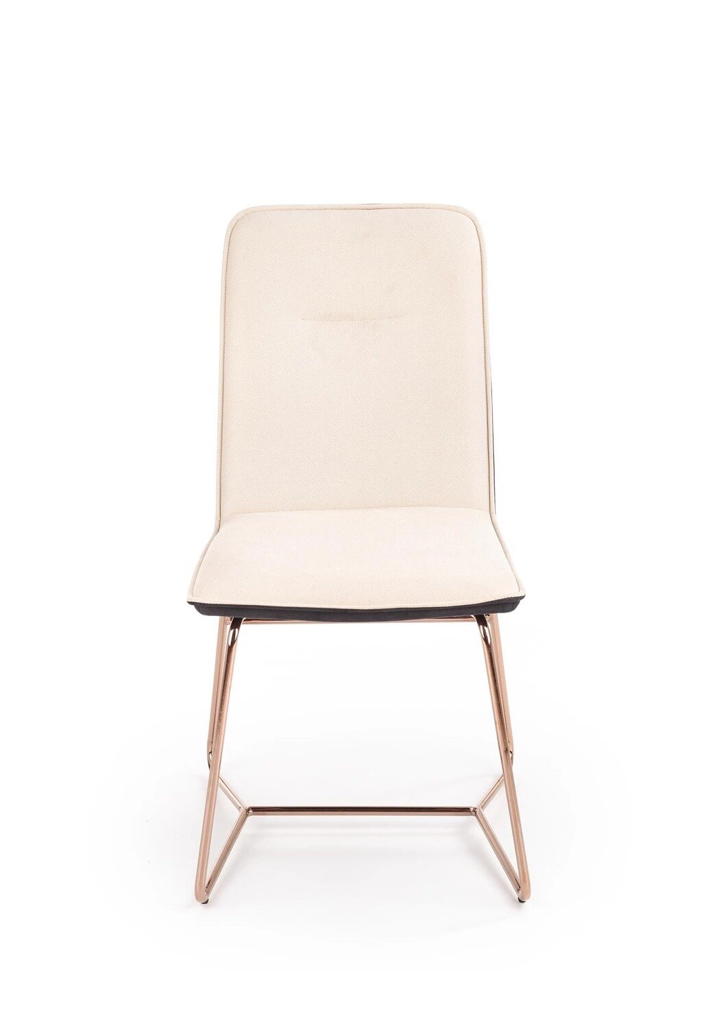 Židle Lirena zaujme kombinací módního krémového čalounění s elegantními zlatými nohami. Tento výrazný kontrast zajistí, že se nábytek perfektně hodí do moderních i glamour interiérů a dodá jim jemný lesk a lehkost. Štíhlá silueta a lesklé provedení podtrhují precizní zpracování, zatímco ergonomické opěradlo poskytuje pohodlí i při delším posezení u stolu.