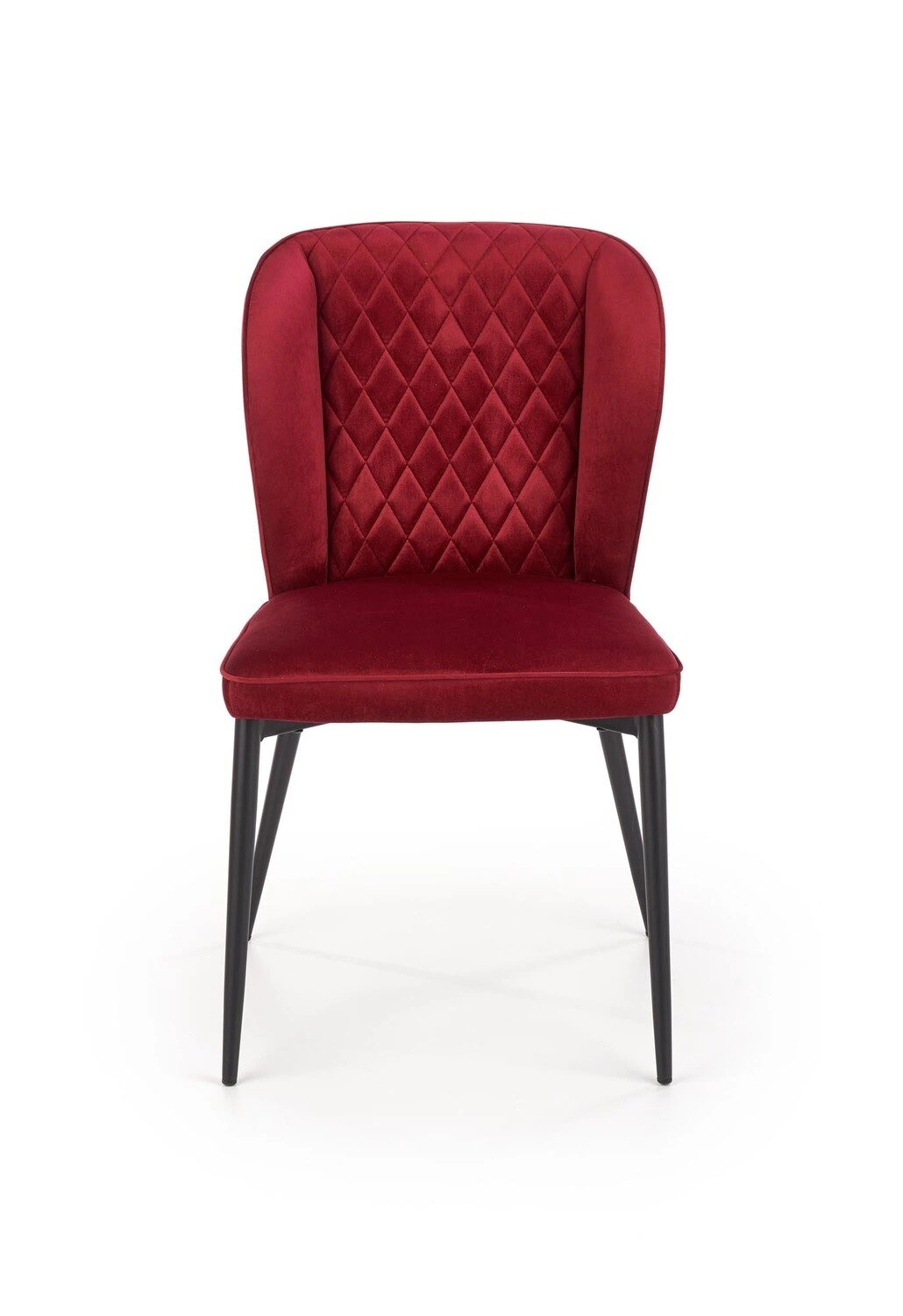 Jídelní židle Emmy od značky Intesi je dokonalou kombinací moderní elegance, pohodlí a praktičnosti. Je čalouněná měkkým sametem v hlubokém bordó odstínu, s prošíváním na opěradle a stojí na čtyřech vysokých, černých nohách z práškově lakované oceli. Skvěle se hodí jako židle do jídelny, kuchyně nebo obývacího pokoje, kde zajistí pohodlí i stylový akcent do každého interiéru.