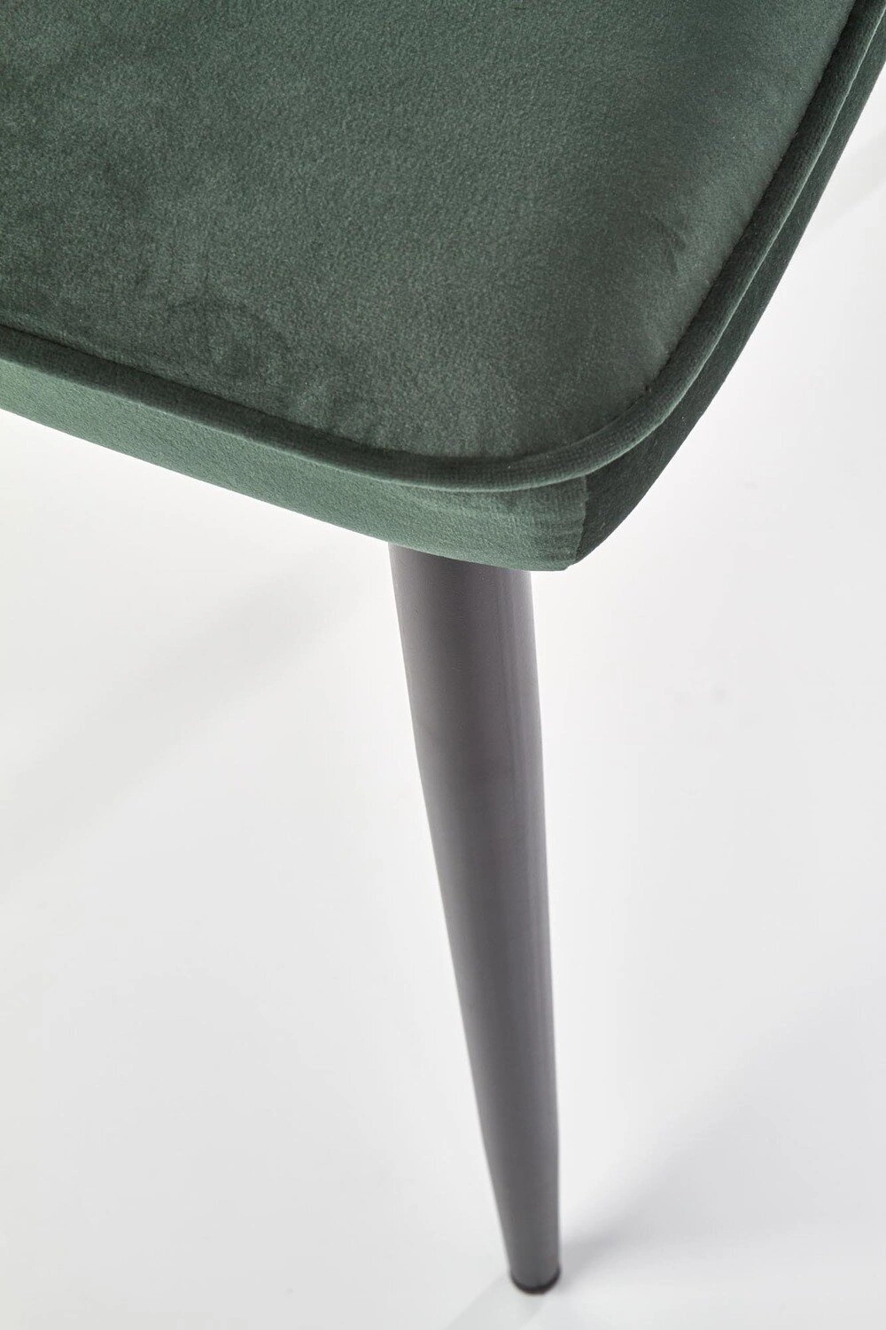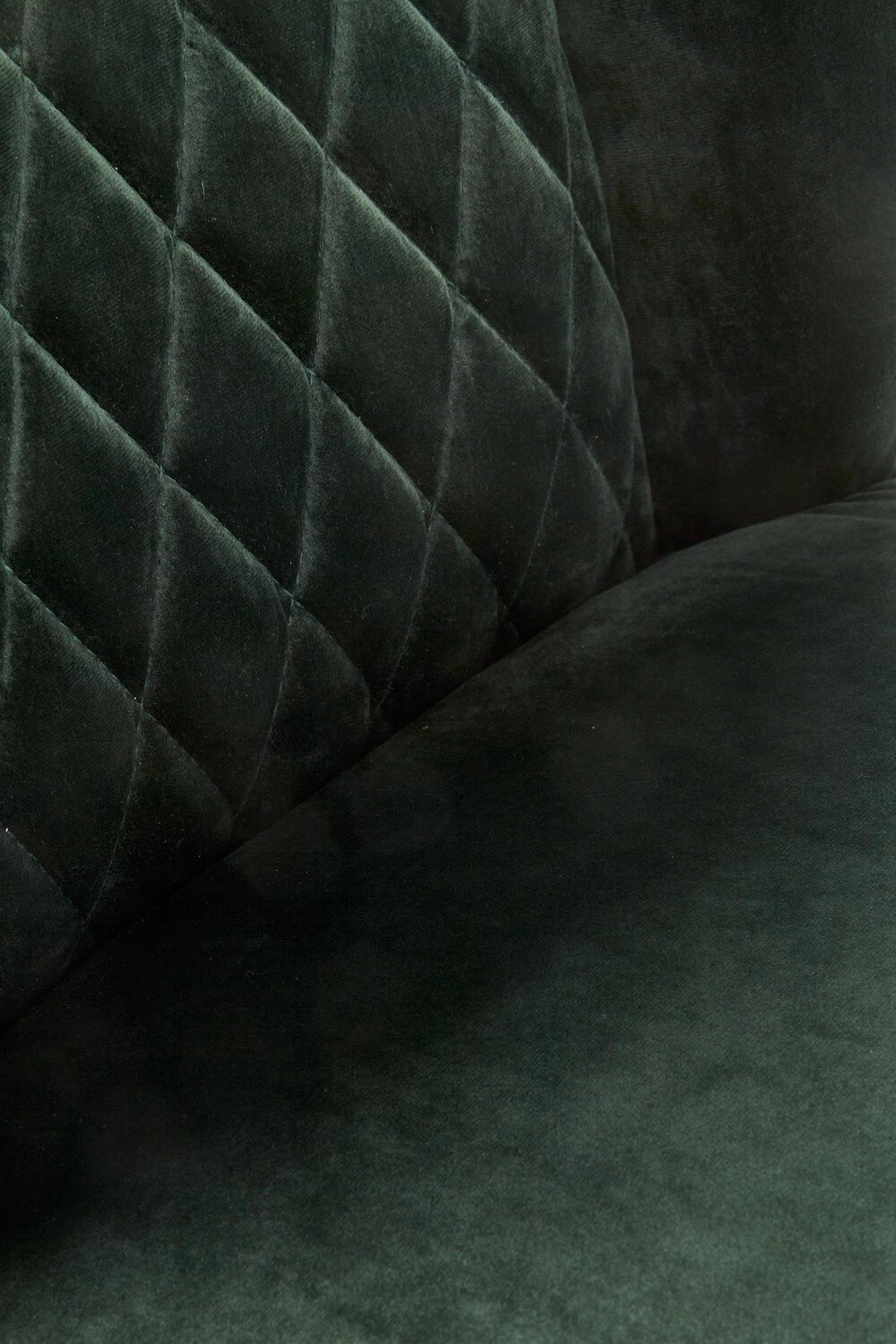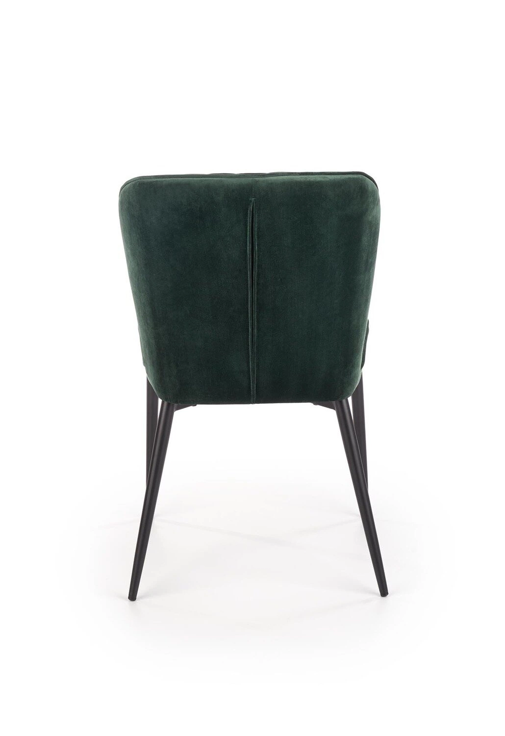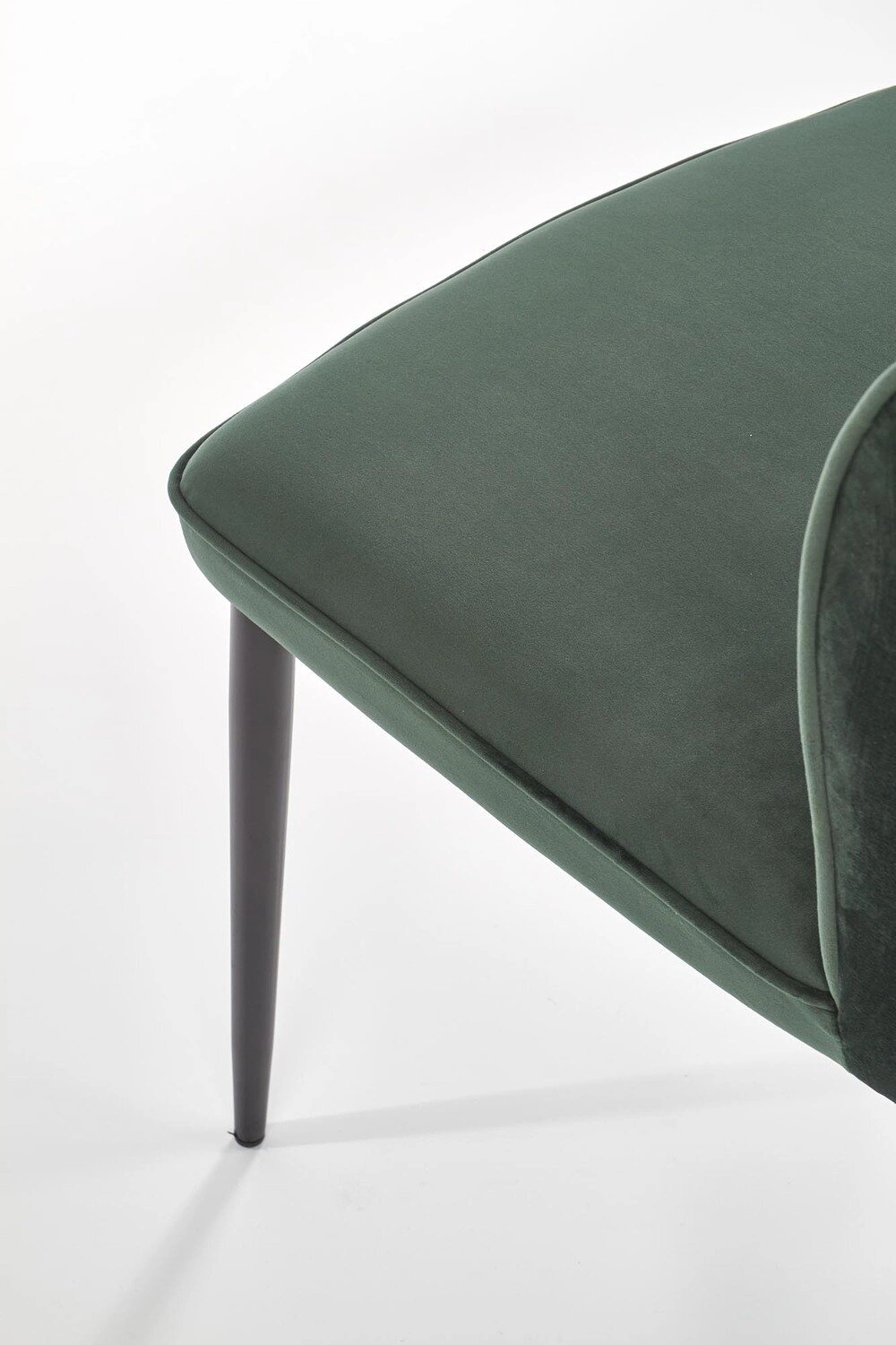 Židle Emmy je ideální volbou pro ty, kteří ocení spojení praktičnosti s originálním designem. Oblíbený samet v tmavě zeleném odstínu krásně ladí s matnými černými nohami a dodává interiéru luxusní a zároveň útulnou atmosféru. Je to perfektní jídelní židle nebo židle do kuchyně, která podtrhne charakter moderního a elegantního zařízení. Tento model vynikne také jako stylová židle do obývacího pokoje nebo ložnice, díky čemuž snadno vytvoříte jednotný a vkusný domov.