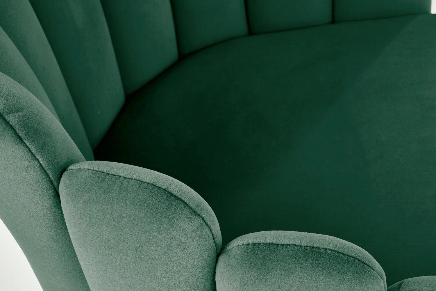 - Čalouněná sametem v sytě zelené barvě – elegantní vzhled a příjemný povrch na dotek