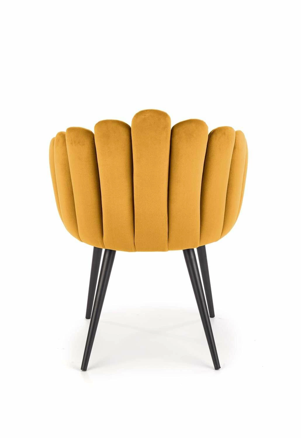 Hořčičná barva sedáku Finger vnáší do prostoru energii a svěžest a zároveň se perfektně kombinuje s moderními i glamour doplňky. Černé, štíhlé nohy z práškově lakované oceli jsou zárukou stability a zároveň nadčasovým prvkem, který podtrhuje elegantní charakter židle. Díky vyšším nohám je úklid pod nábytkem snadný – ideální, pokud používáte robotický vysavač.