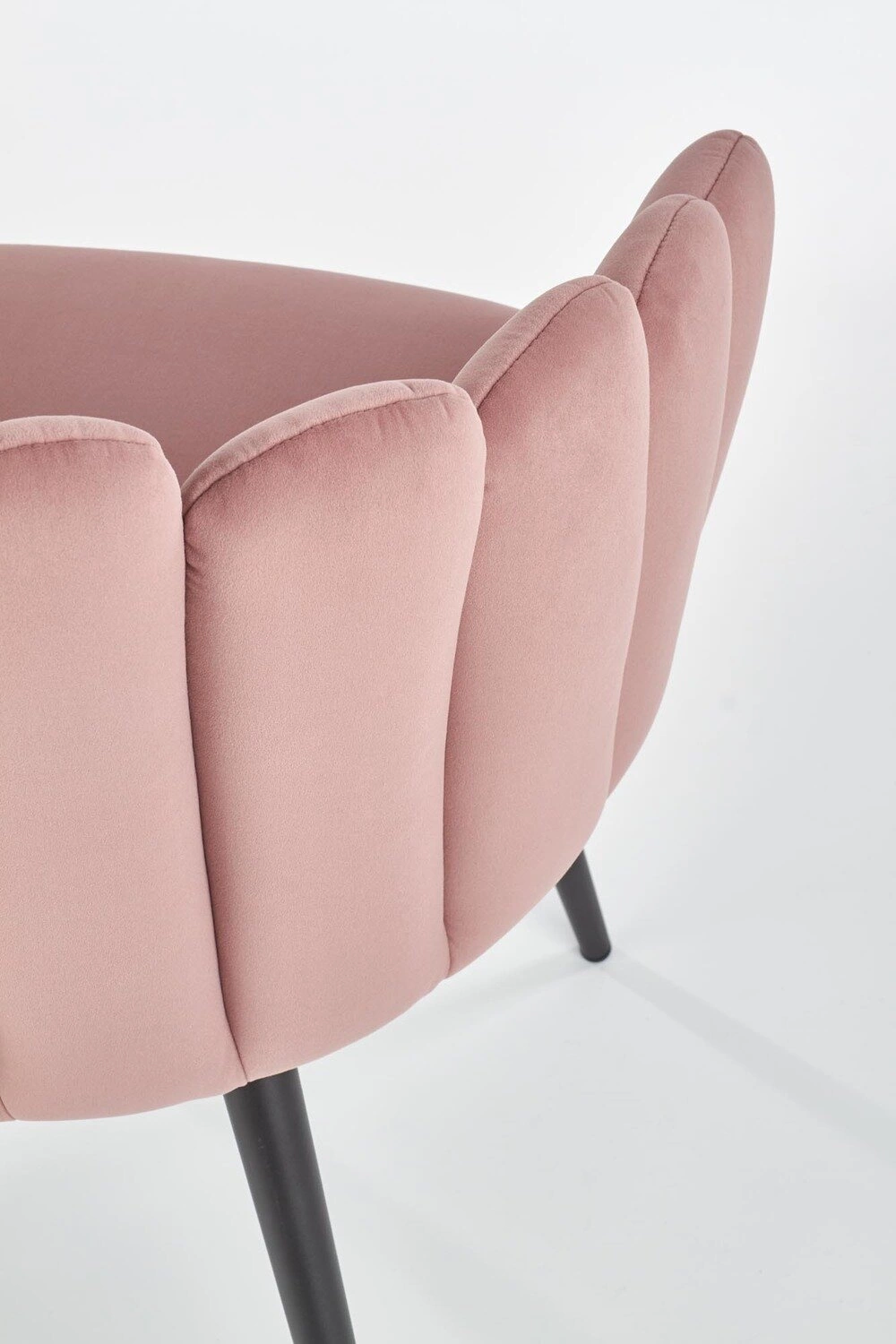 Model Finger Intesi se skvěle hodí do glamour aranžmá, ale také do moderních prostorů, kde je důležitý originální vzhled. Jemný růžový odstín čalounění ladí s černými štíhlými nohami a dodává celé židli lehkost i sofistikovaný charakter. Kovová podnož v polomatném provedení zaručuje dlouhou životnost a snadnou údržbu – stačí jednoduše otřít a židle opět vypadá perfektně. Navíc vysoké nohy umožňují snadné vysávání nebo úklid robotickým vysavačem.