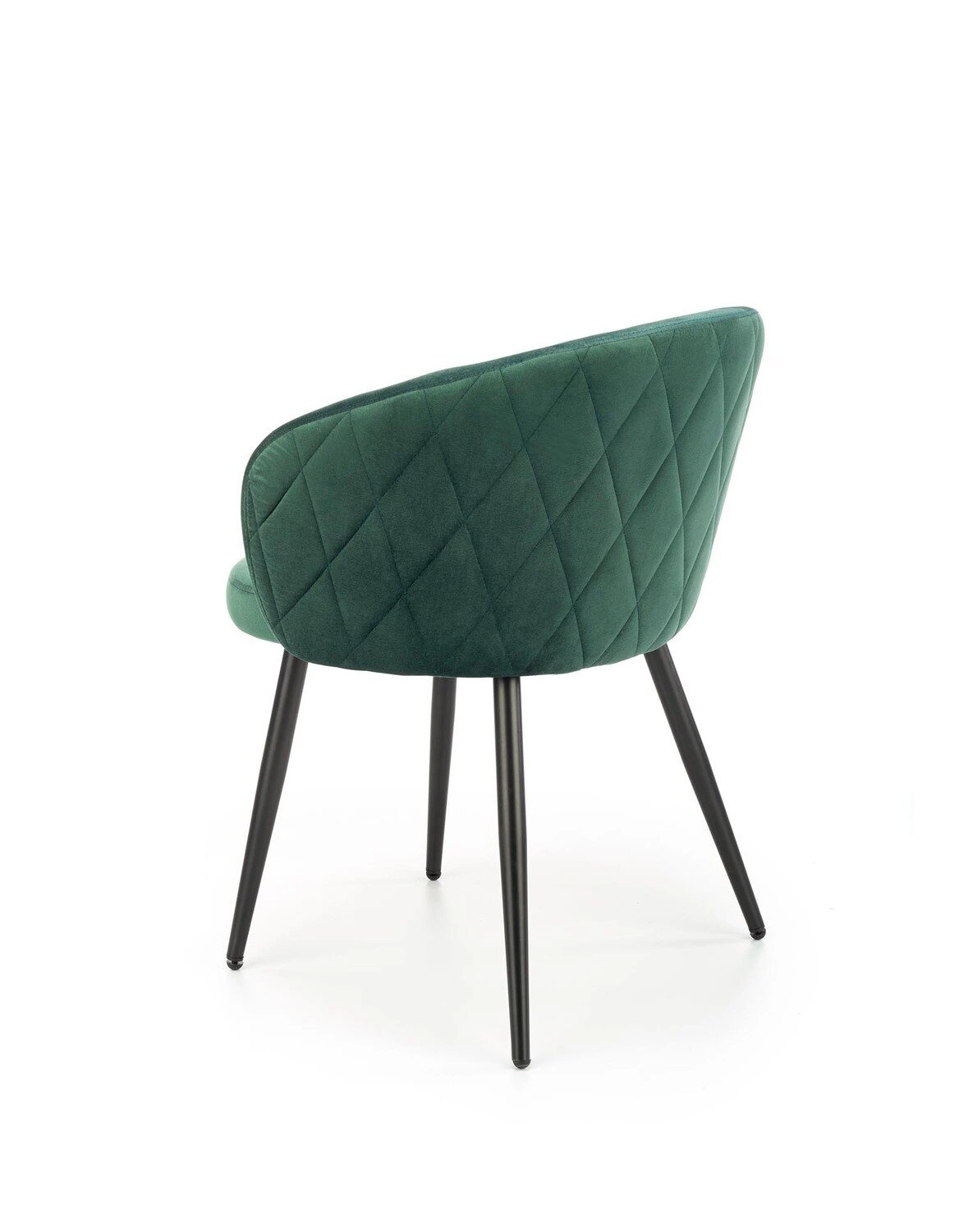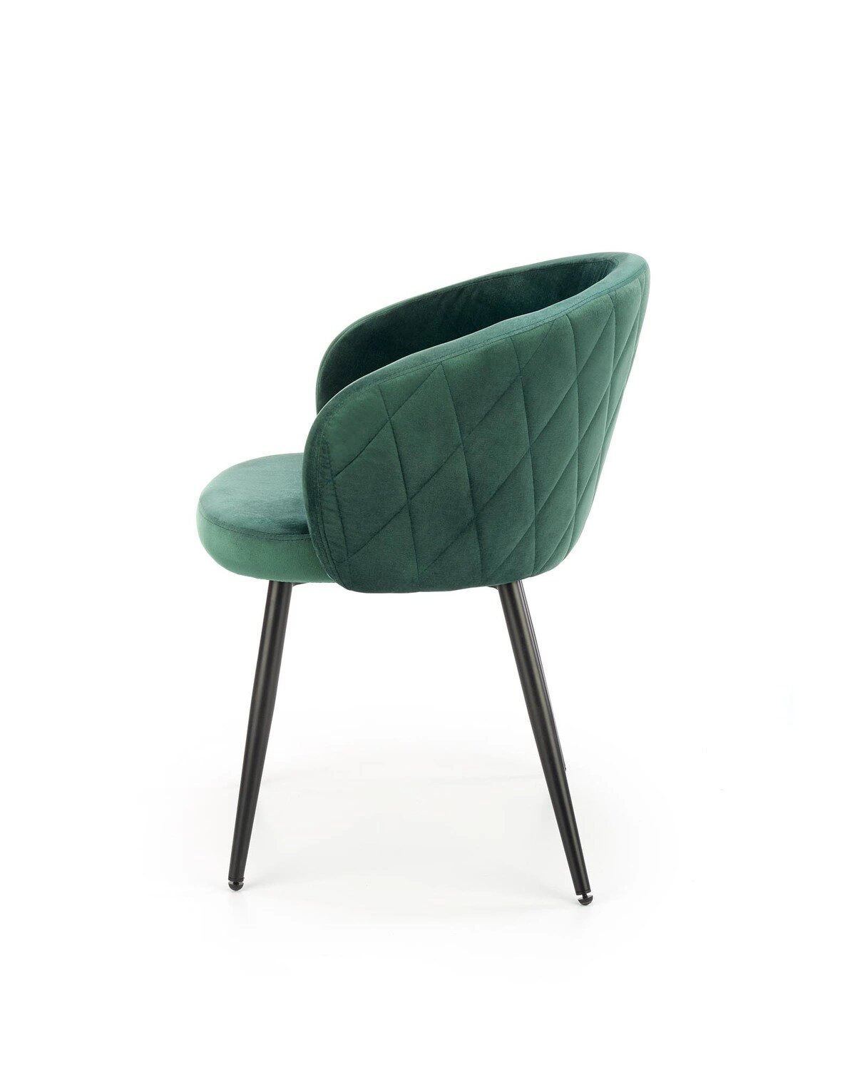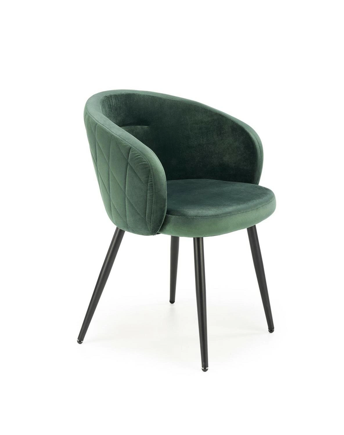 Židle Claude od značky Intesi je moderní čalouněná židle navržená s důrazem na každodenní pohodlí a jedinečný styl interiéru. Čalounění z měkkého veluru v hluboké zelené barvě harmonicky ladí s černou, štíhlou podnoží z práškově lakované oceli. Díky šířce 61 cm, područkám a ergonomicky tvarované opěrce je tento model ideální jako jídelní židle, do obývacího pokoje, kuchyně nebo i kanceláře a nabízí pohodlné místo pro delší sezení.