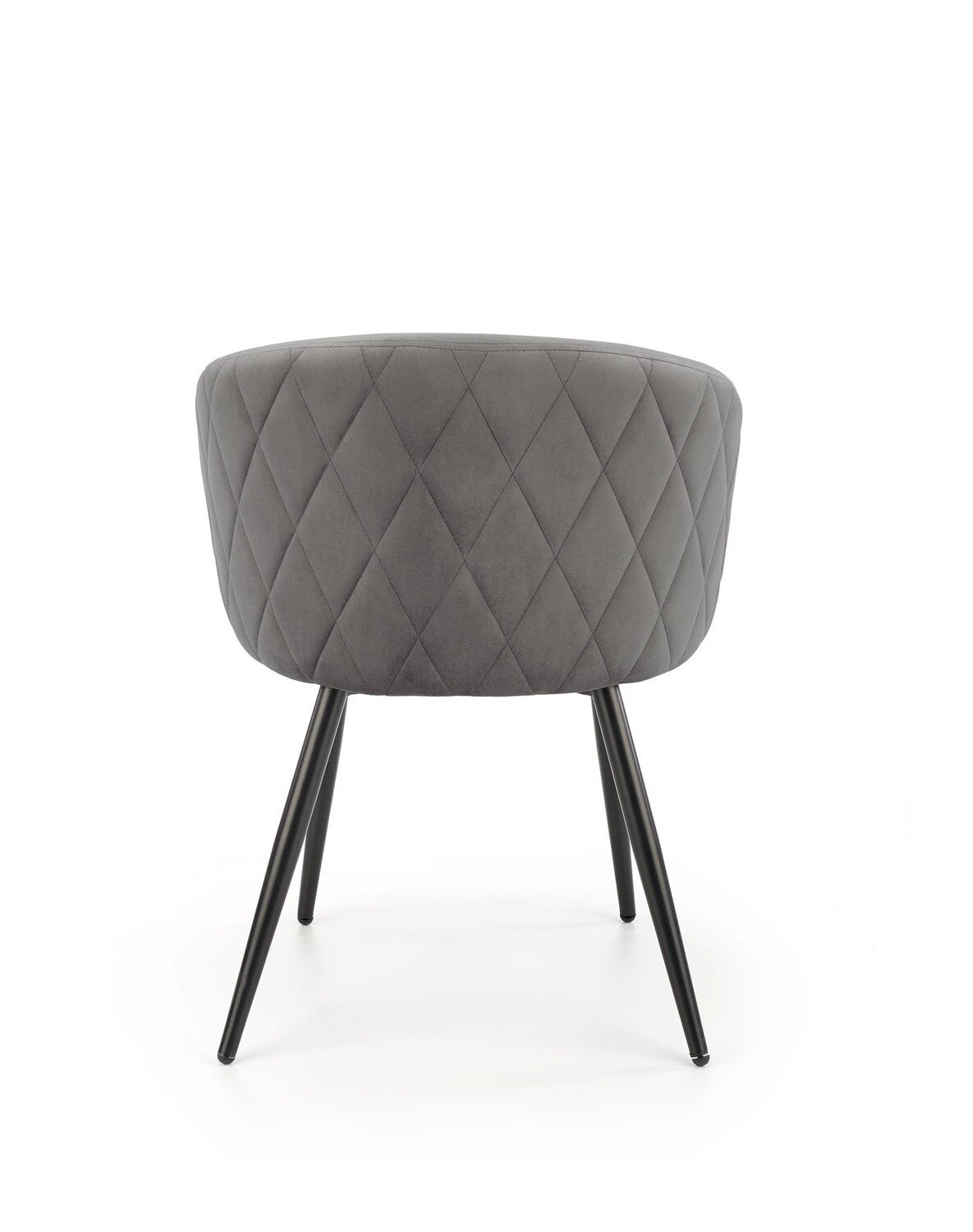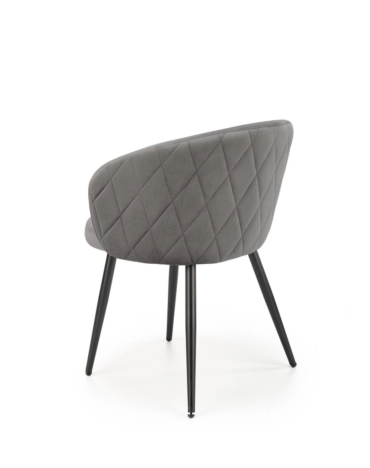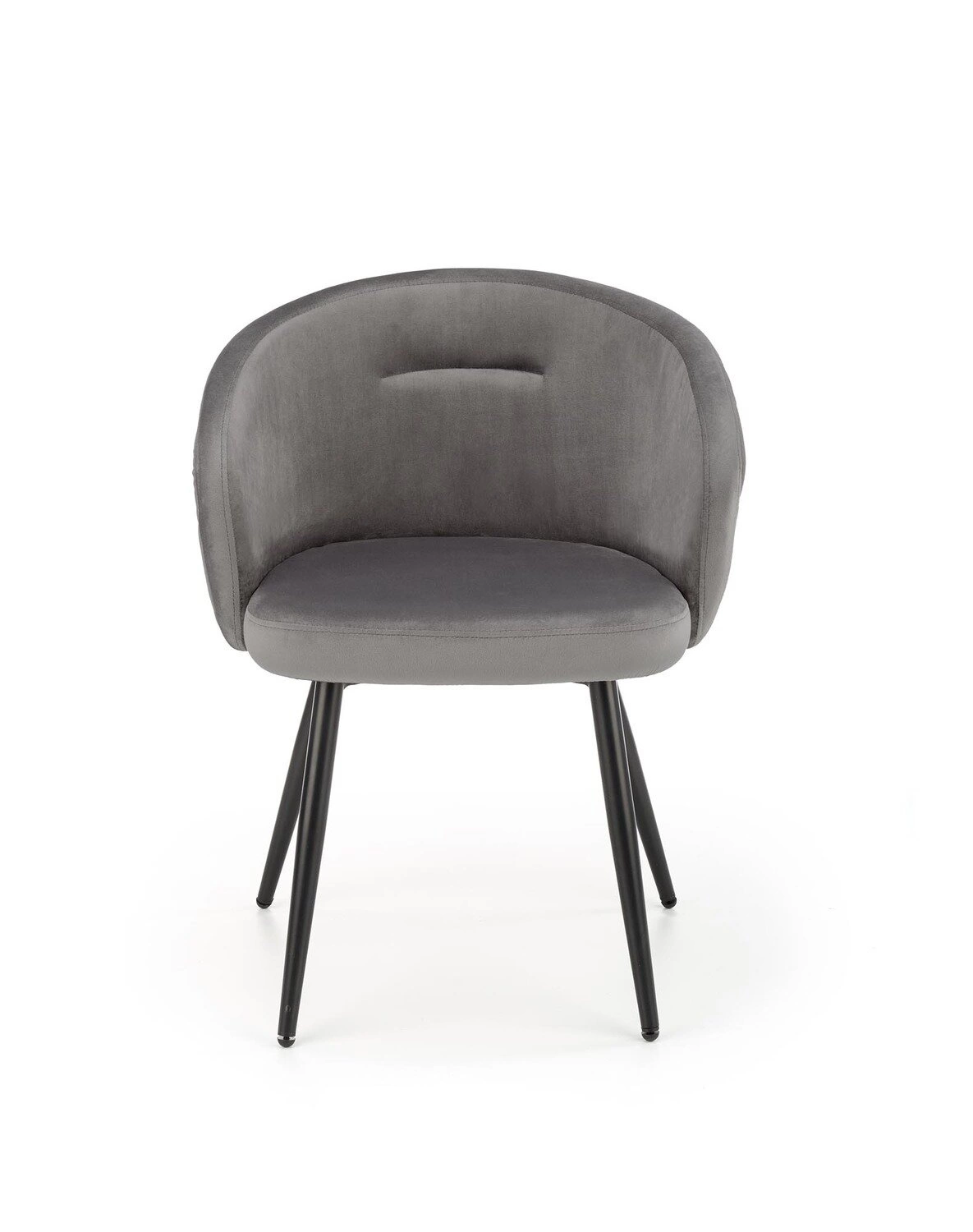 Claude je sametové čalouněné křeslo navržené pro milovníky vytříbeného stylu a aktuálních trendů v zařizování domácností. Jemný šedý odstín a sametový povrch látky vnášejí do prostoru pocit luxusu a útulnosti. Minimalistický tvar a čtyři štíhlé černé nohy s polomatnou úpravou podtrhují moderní charakter tohoto kousku. Tento model vynikne jak v jídelně, tak jako křeslo do obývacího pokoje nebo elegantní židle do kuchyně.