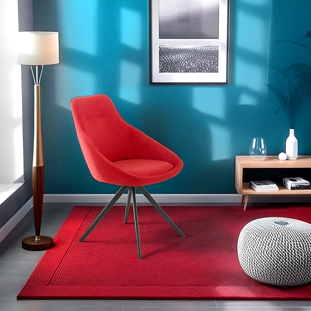 Židle Lea je určena těm, kdo si potrpí na originální styl a chtějí do svého interiéru vnést barevný akcent. Intenzivně červené čalouněné sedadlo upoutá pozornost a dodá místnosti moderní a energický charakter. Látka je příjemná na dotek a snadno se udržuje, takže židle si zachová svůj atraktivní vzhled po dlouhou dobu. Černá matná podnož z práškově lakované oceli zajišťuje stabilitu a skvěle ladí s moderními interiéry.