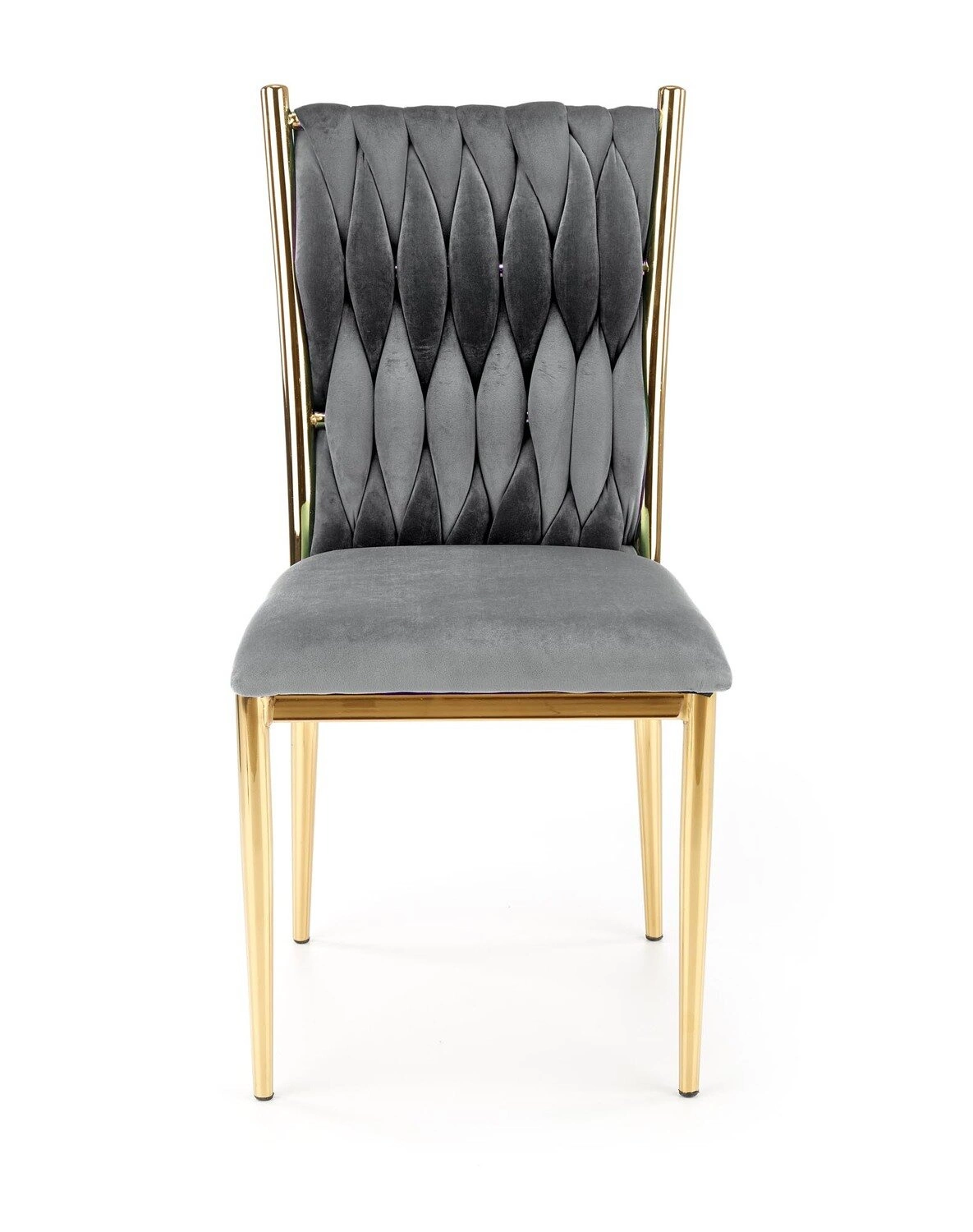 Čalouněná sametová židle Lina Intesi šedá se zlatými nohami moderní do jídelny