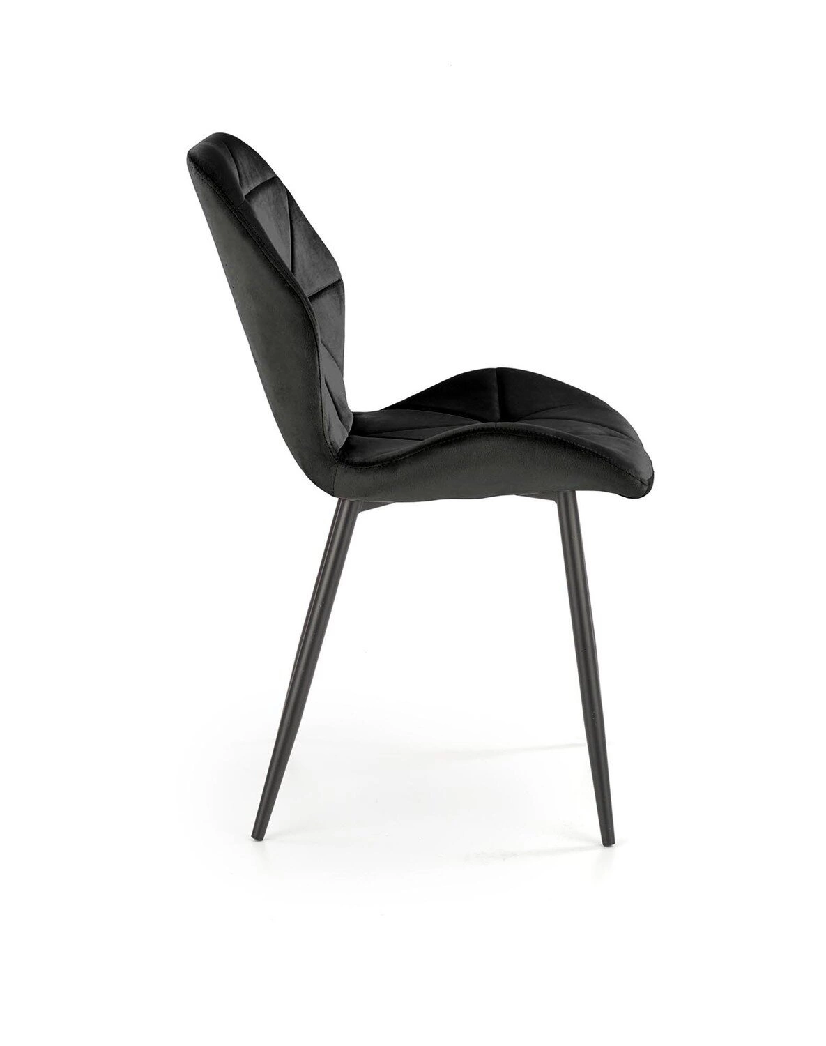 Čalouněná židle z černého sametu Eve od značky Intesi spojuje moderní design s maximálním pohodlím při používání. Je vyrobena z měkké, na dotek příjemné sametové látky a stojí na štíhlých, černých ocelových nohách, díky czemu je ideální volbou jako jídelní židle, do obývacího pokoje nebo kuchyně. Optimální výška sedáku 50 cm a hluboké opěradlo zaručují pohodlí při každodenním stolování i při dlouhých setkáních u stolu.