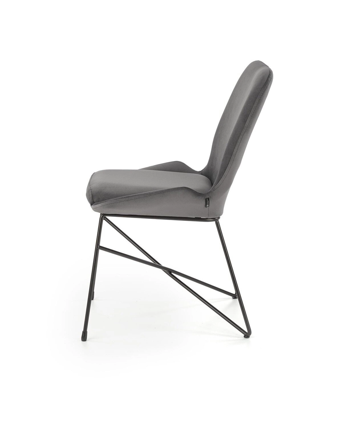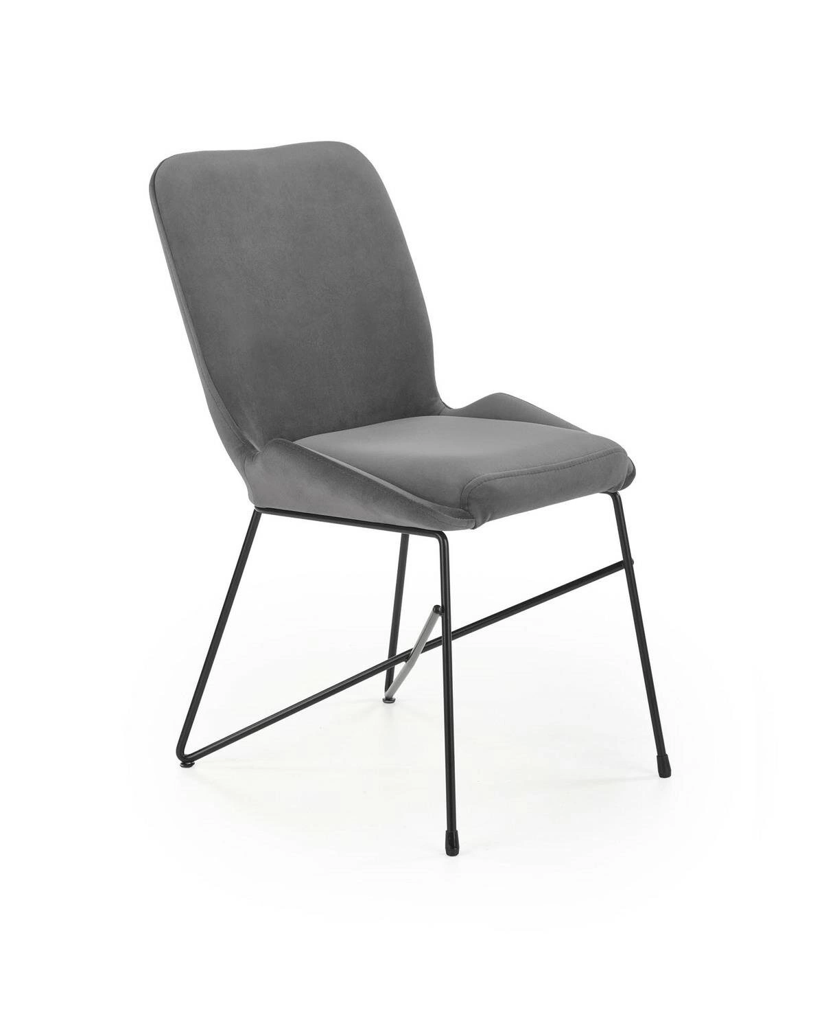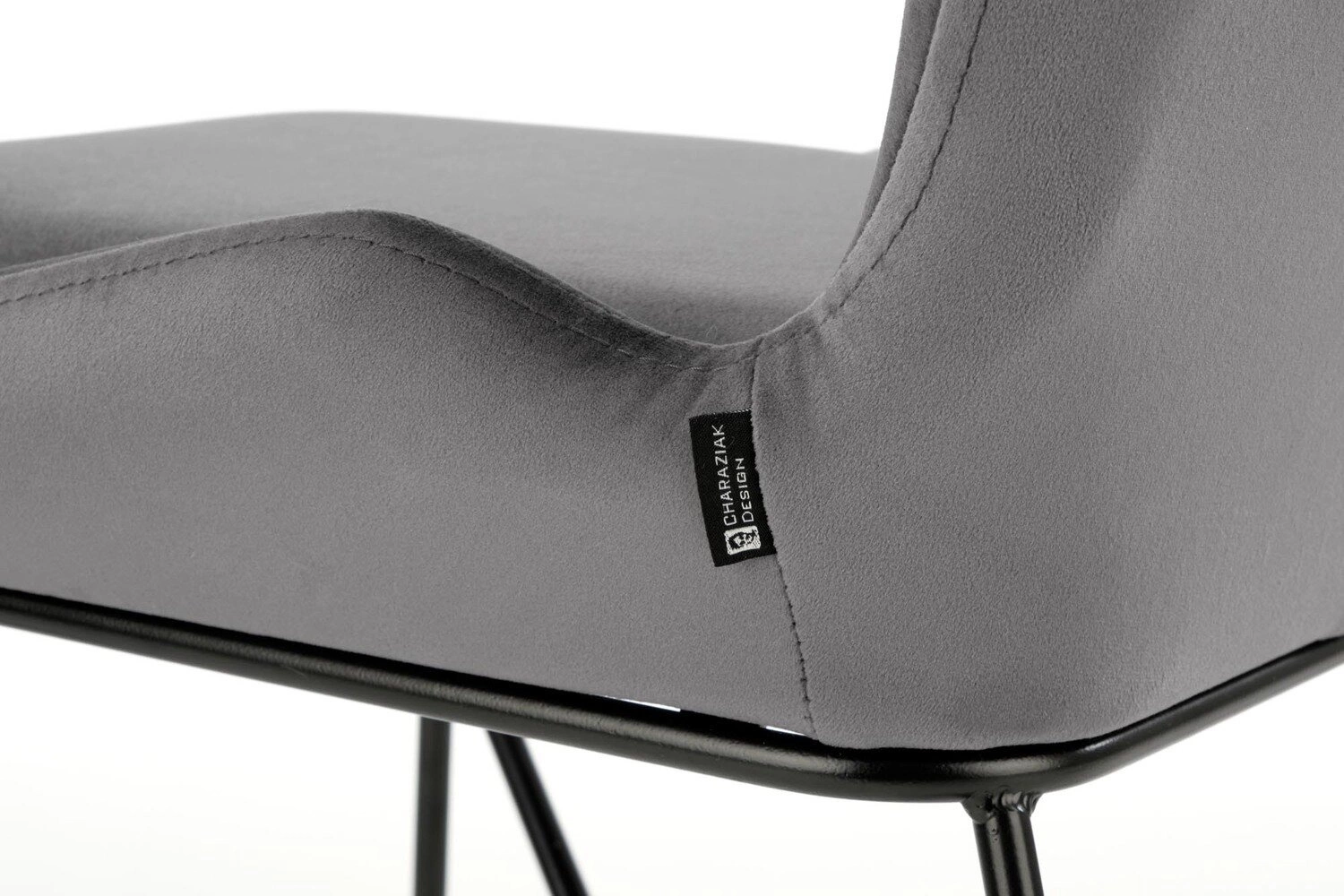 Estelle je čalouněná židle, která skvěle vynikne v moderních i loftových interiérech. Tmavě šedý samet jemně odráží světlo, čímž dodává prostoru hloubku a útulnost, zatímco minimalistický tvar s výrazným opěradlem podtrhuje současný styl nábytku. Polomatný povrch a černé kovové nohy zajišťují, že židle snadno zapadne jak do prostorné jídelny, tak i do útulného snídaňového koutu v kuchyni.