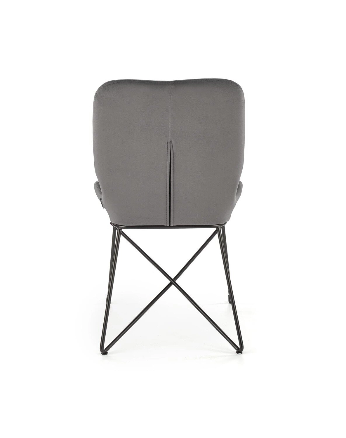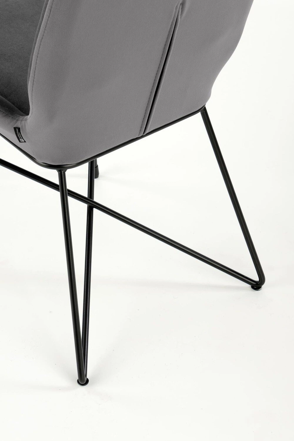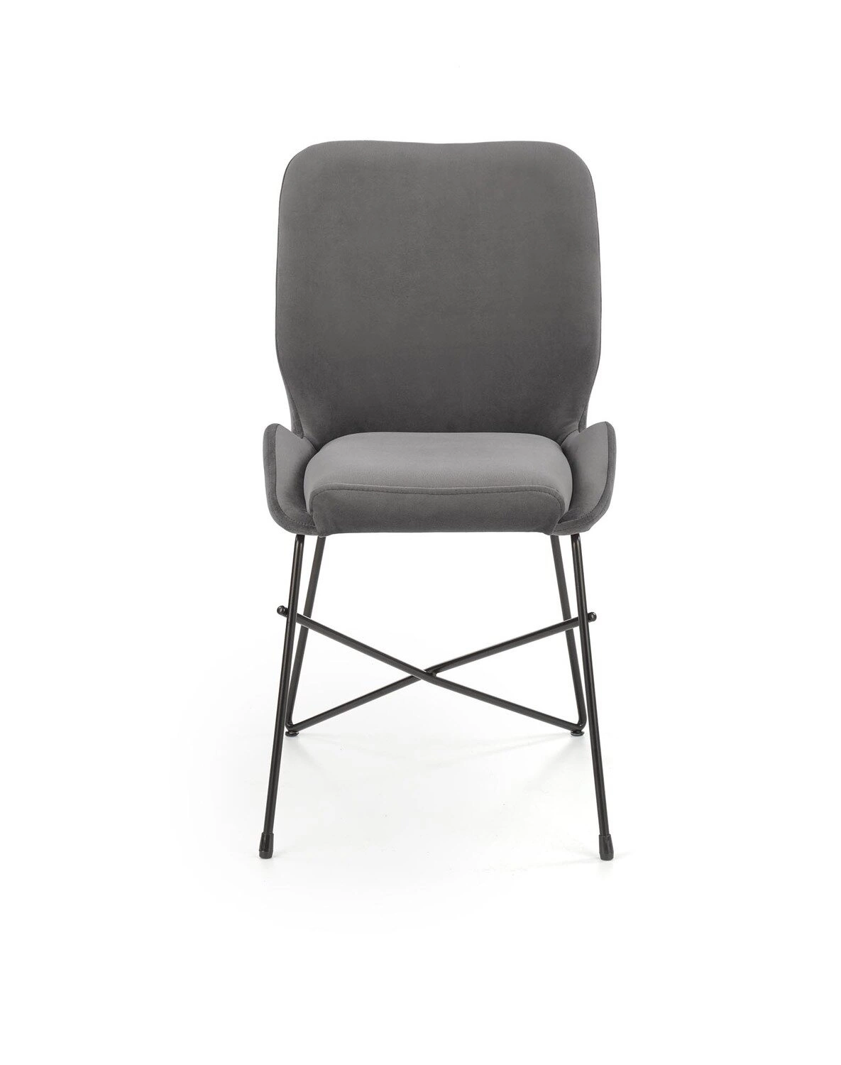 Estelle je čalouněná židle, která skvěle vynikne v moderních i loftových interiérech. Tmavě šedý samet jemně odráží světlo, čímž dodává prostoru hloubku a útulnost, zatímco minimalistický tvar s výrazným opěradlem podtrhuje současný styl nábytku. Polomatný povrch a černé kovové nohy zajišťují, že židle snadno zapadne jak do prostorné jídelny, tak i do útulného snídaňového koutu v kuchyni.