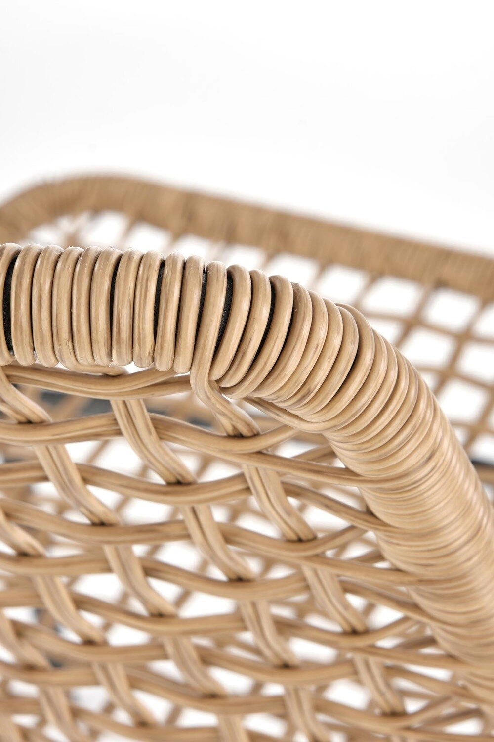 Ratanová židle Gordi od značky Intesi je ideální volbou pro ty, kteří oceňují přírodní boho styl a pohodlí každý den. Vyrobená z odolného syntetického ratanu v odstínu přírodní béžové a postavená na stabilních kovových nohách v černé barvě, zaujme lehkostí designu i funkčností. Široké sedátko (49 cm) a ergonomické područky zajišťují komfort jak u rodinného jídelního stolu, tak při odpočinku v obýváku nebo na terase.