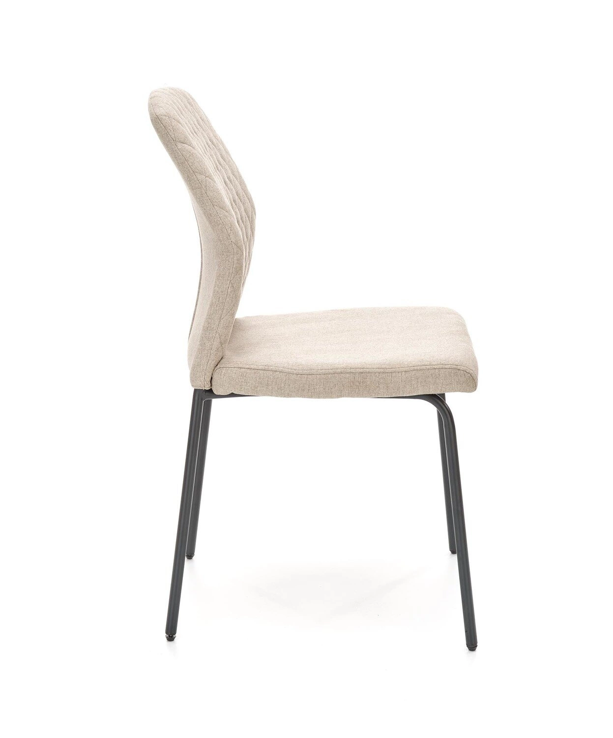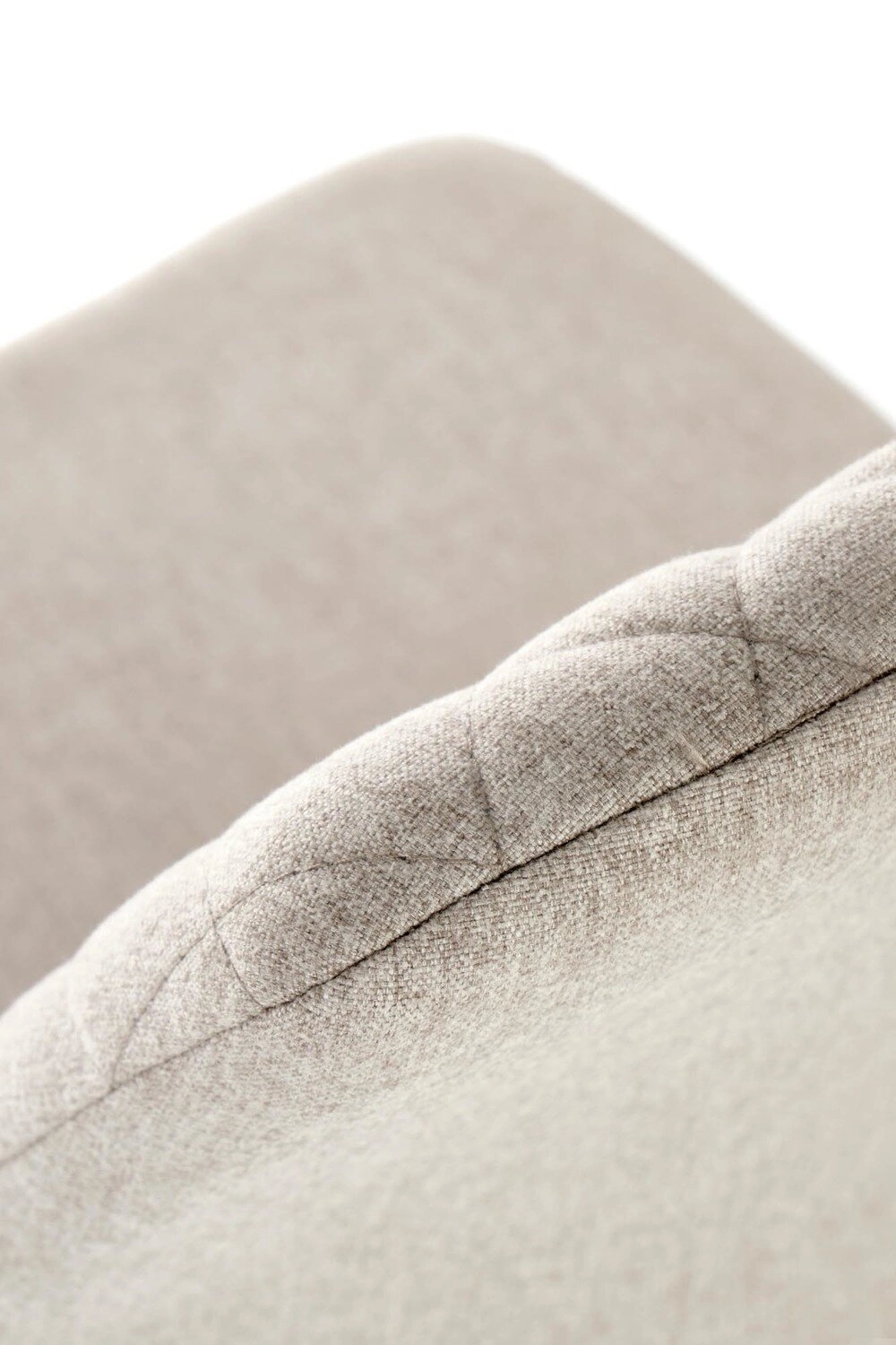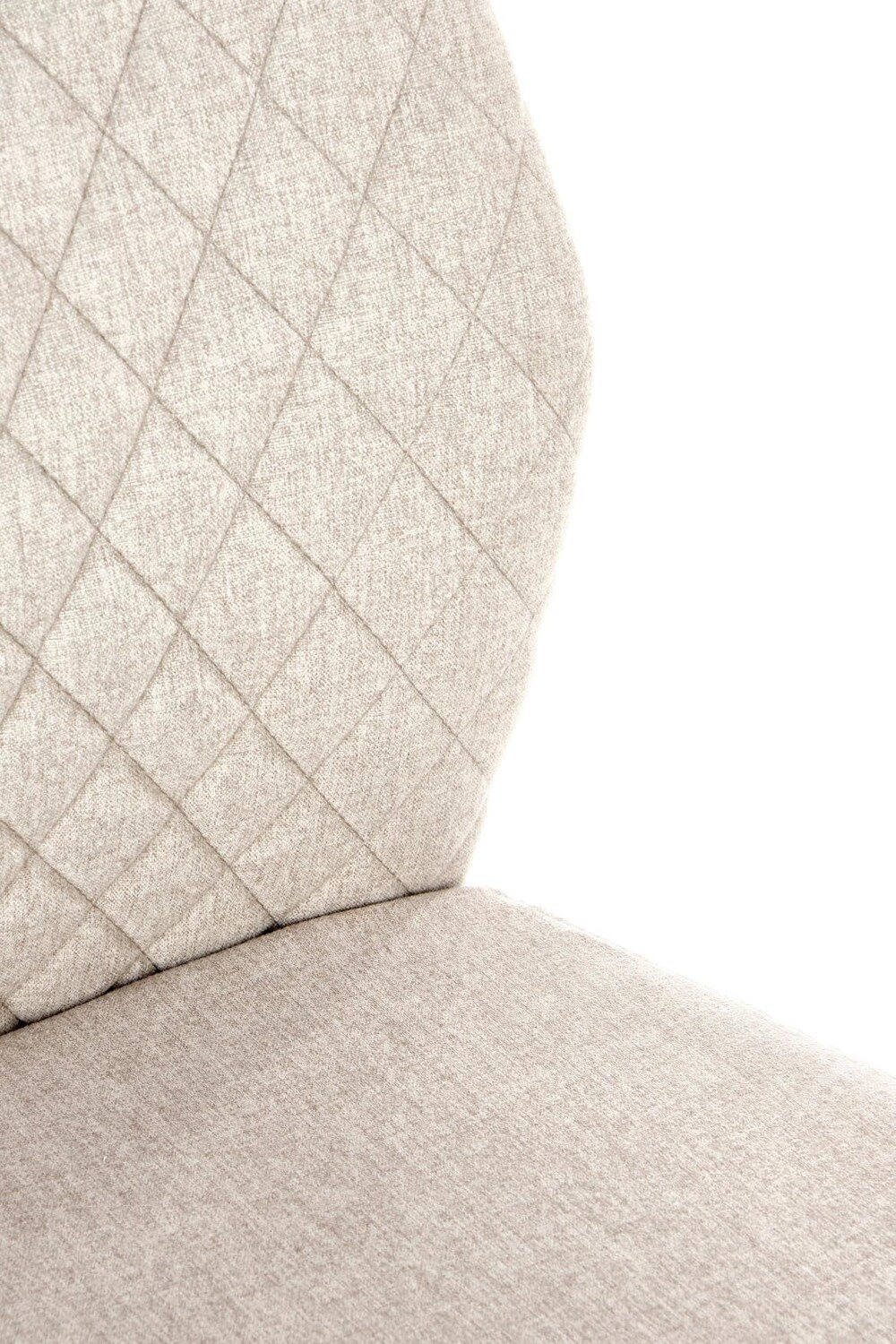 Měkké čalounění z příjemné látky zaručuje, že každá chvíle na židli Honorine je skutečným potěšením. Ergonomické opěradlo široké 40 cm podpírá záda, zatímco hluboký sedák (45 cm) poskytuje pohodlí i při dlouhých rozhovorech nebo rodinných večeřích. Absence područek umožňuje snadné zasunutí židle pod stůl a šetří místo, což ocení zejména majitelé menších prostor.