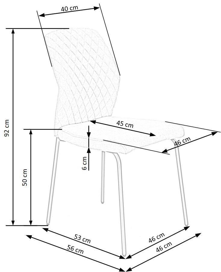- Rozměry: šířka 46 cm, hloubka 56 cm, výška 92 cm – perfektně ladí k většině stolů