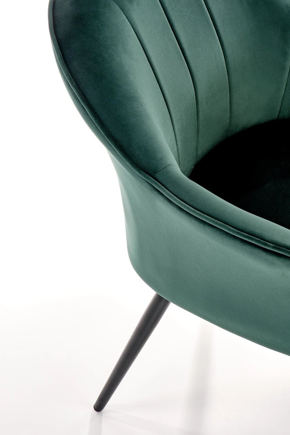 Židle Karine byla navržena pro každodenní relax u stolu i dlouhé rozhovory s blízkými. Měkký samet v tmavě zeleném odstínu je na dotek velmi příjemný a zpříjemní každé posezení u stolu. Vysoké ergonomické opěradlo a praktické područky umožňují pohodlně opřít záda i ruce, což výrazně zvyšuje komfort při rodinných večeřích, práci u stolu nebo relaxaci s knihou.